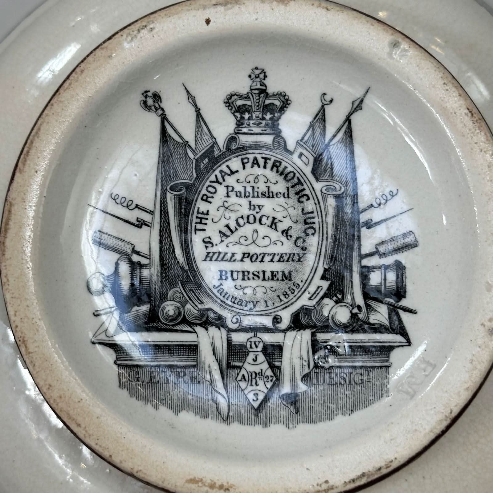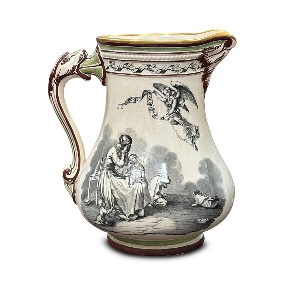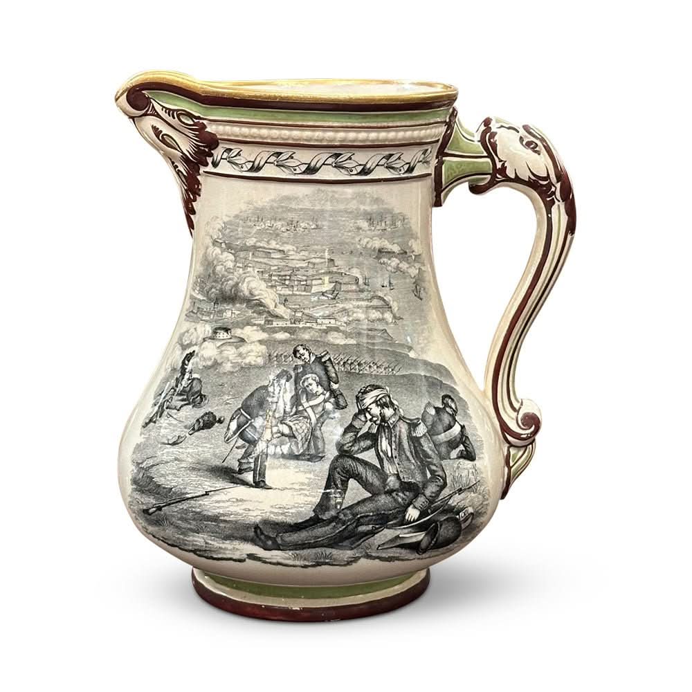 Royal patriotic jug by S. Alcock and C. G. Hill pottery, Burslem 1854.