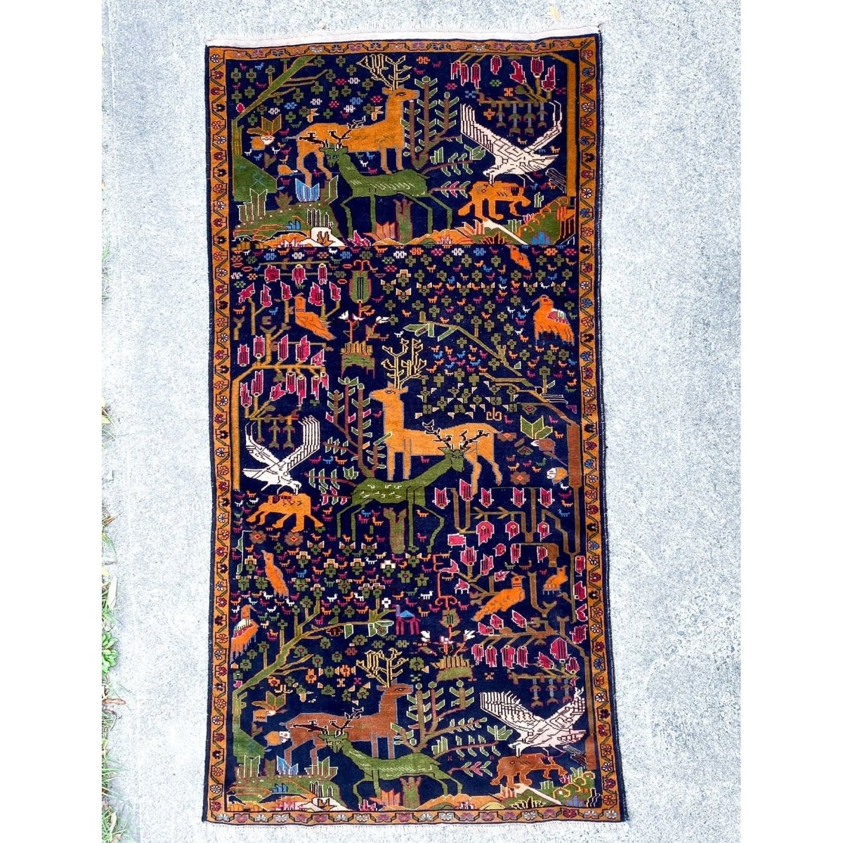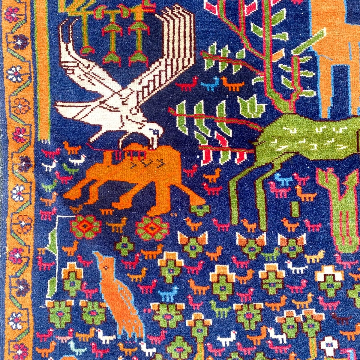 Beautiful hand knotted Persian pictorial wool rug featuring a vibrant and elaborate design depicting animal and tree of life motifs.