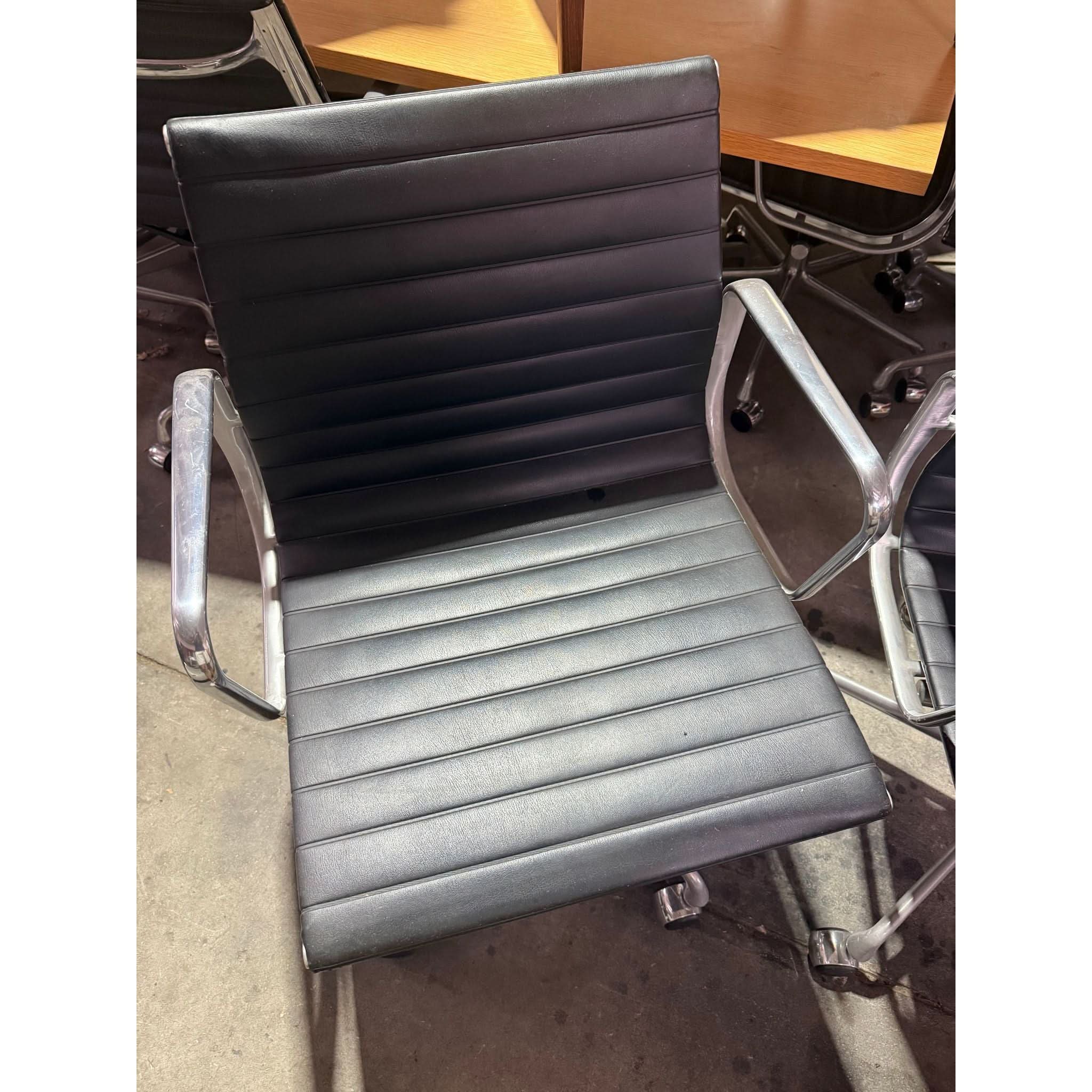 The Eames EA 335 Chair, part of the iconic Aluminium Group series by Charles and Ray Eames for Herman Miller, is a statement in luxury and ergonomic design. This version features premium black leather upholstery, a low-back profile, and a 5-star castor base for mobility. The polished aluminium frame adds both strength and elegance, making this chair a perfect fit for executive offices, home workspaces, or stylish meeting rooms. A timeless classic that blends comfort, craftsmanship, and style.