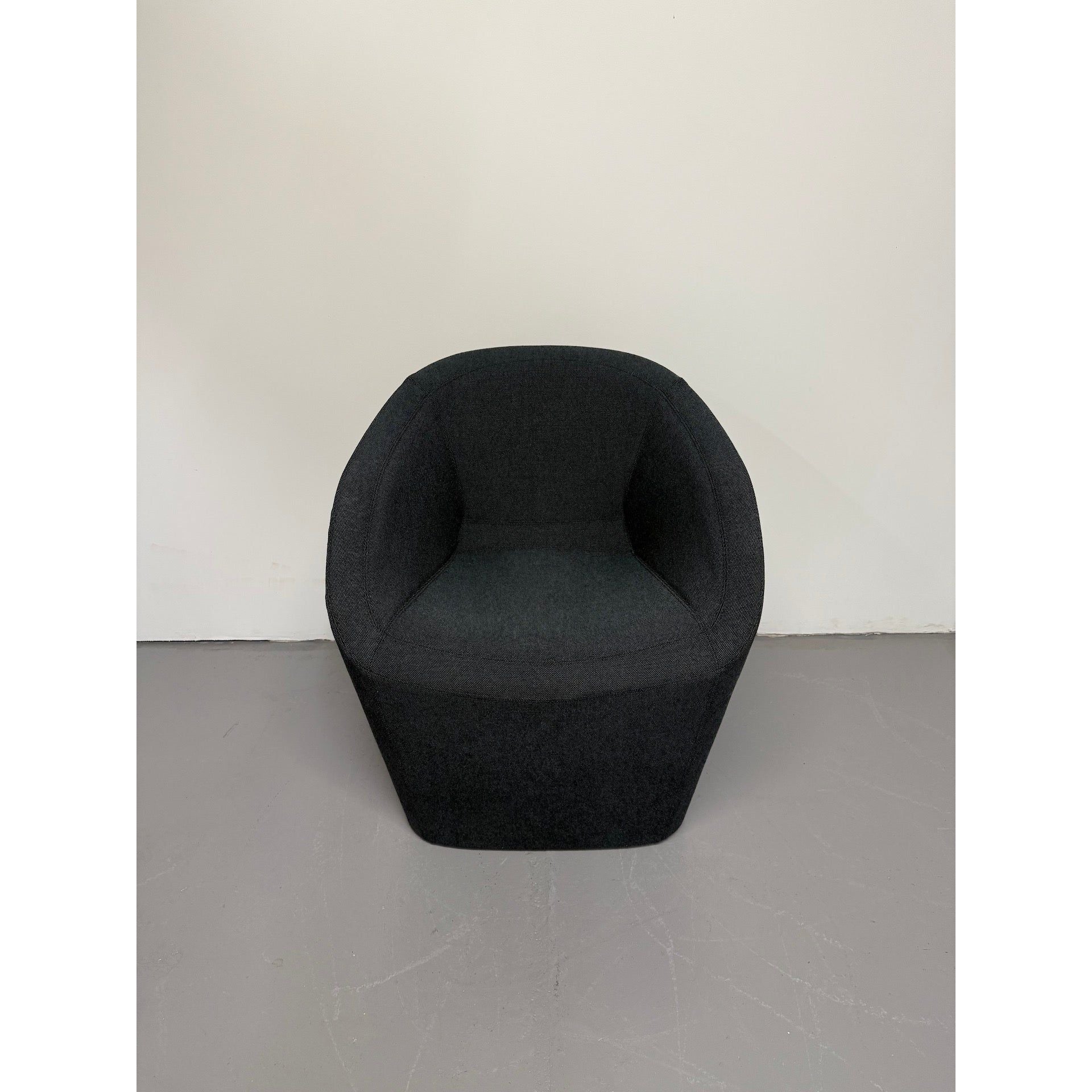 This version is upholstered in a sleek black wool blend fabric, offering a versatile and timeless option that suits a wide range of interiors.