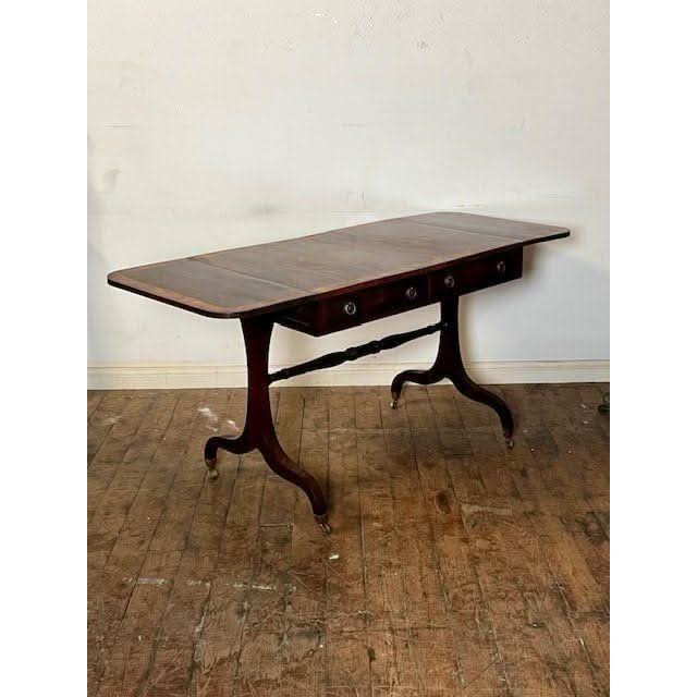 This is a very good example of a genuine antique English Georgian Regency period medium sized Sofa Table. which is frequently used as a general purpose Side Table.
