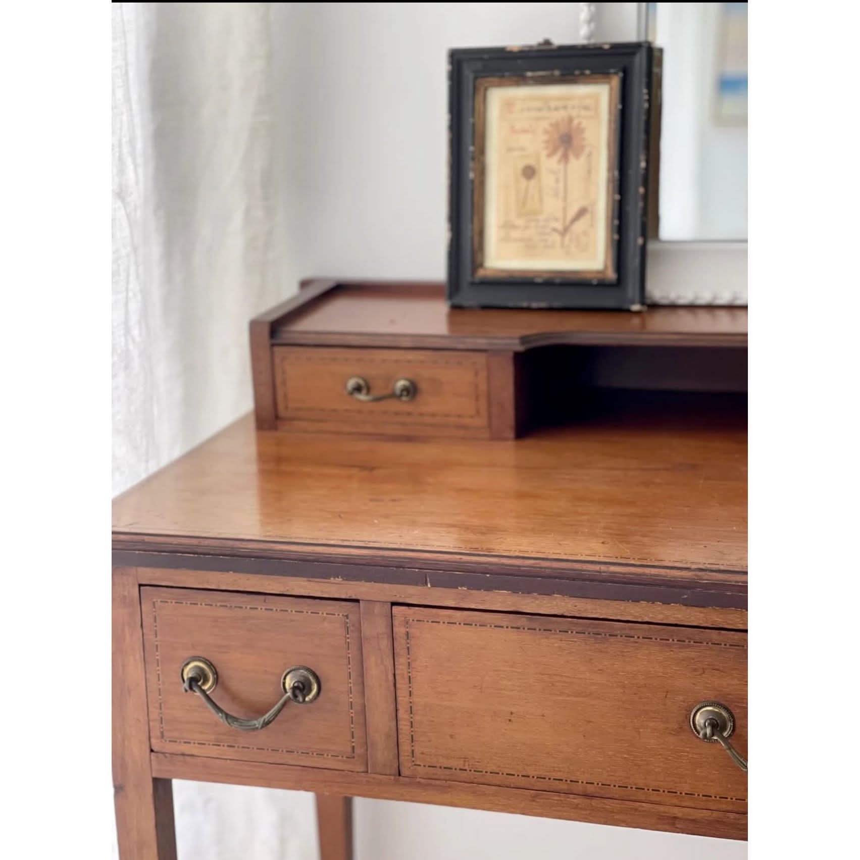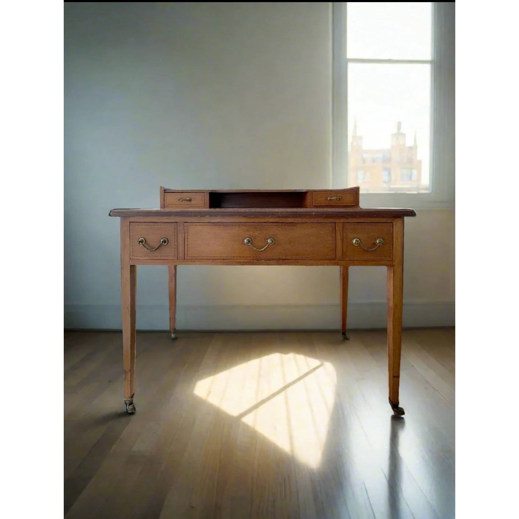 Beautifully crafted Georgian-era writing desk, perfect for an entryway, hallway, bedroom, or as a dressing table. A timeless piece with fine craftsmanship and rich character.