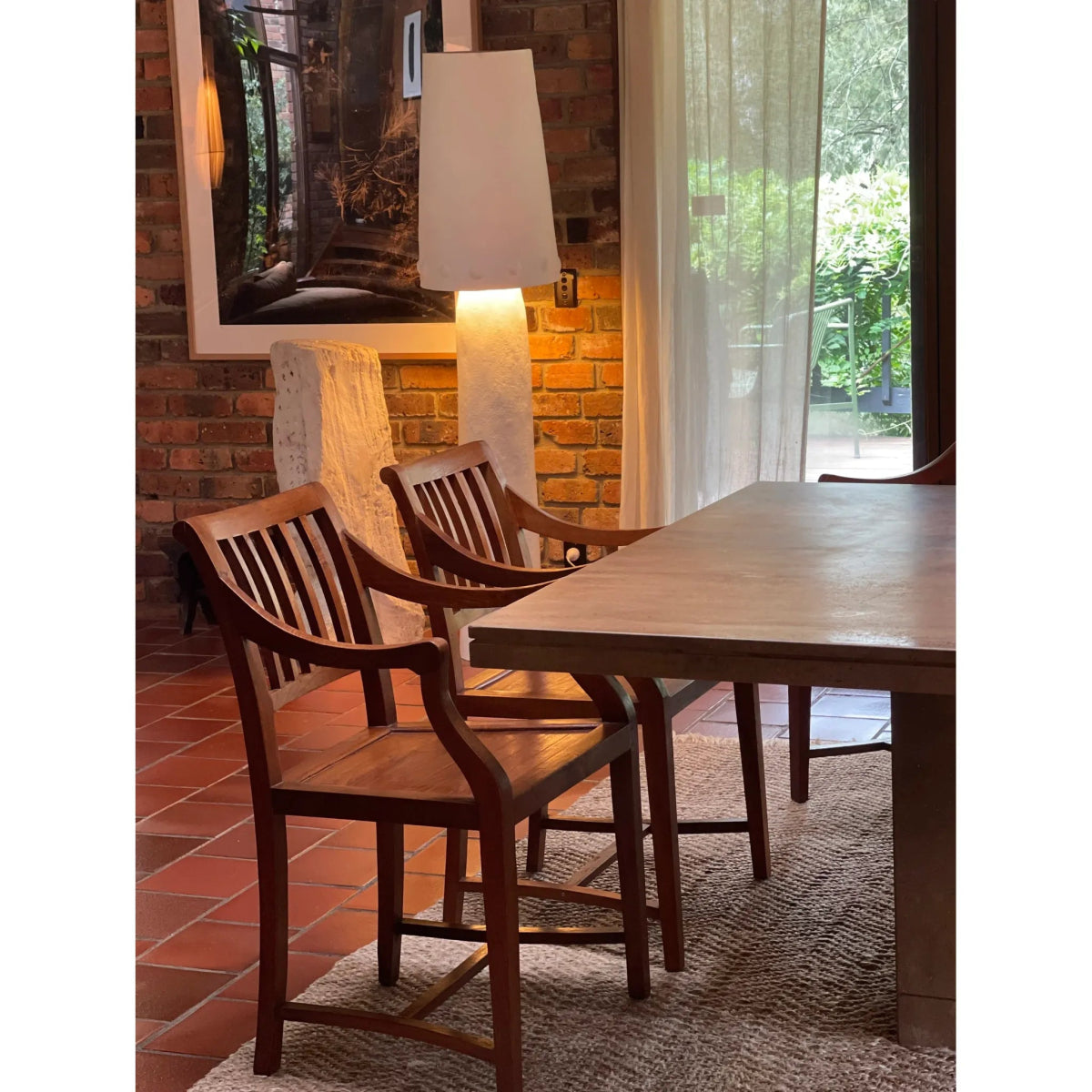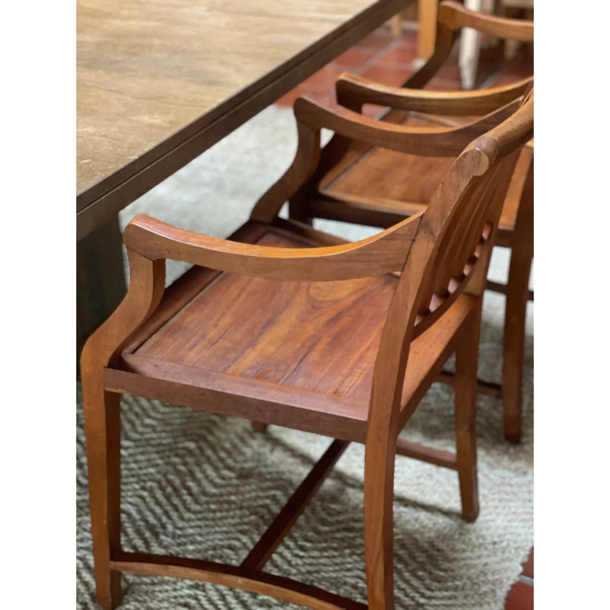 Vintage solid timber dining arm chairs with slatted back and beautiful curved arm details. the attention to detail in the crafting of these chairs is so special. the arm curve at just the right spot to sit around your dining table. love!