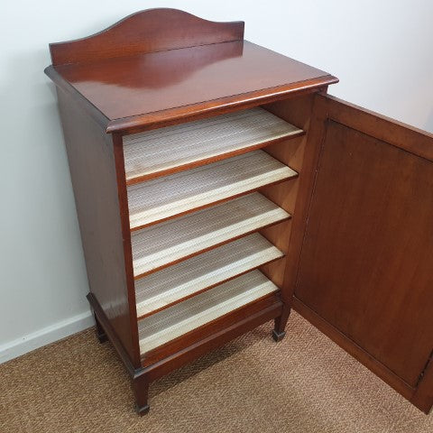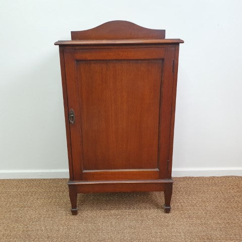 This antique maple single door cabinet features a warm timber tone and a clean, understated silhouette. Inside, multiple shelves offer well-organised storage, making it a versatile decorative piece for living spaces, bedrooms, or hallways. A simple, timeless addition that pairs beautifully with both vintage and traditional interiors.