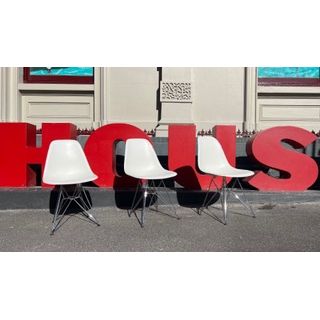 The Eames Plastic Chairs, originally designed by Charles & Ray Eames in the 1950’s. The Eames Eiffel Chair is a moulded plastic with an Eiffel Tower base. An intricate and graceful design made of steel wire that inimitably combines light, elegant forms with structural strength.