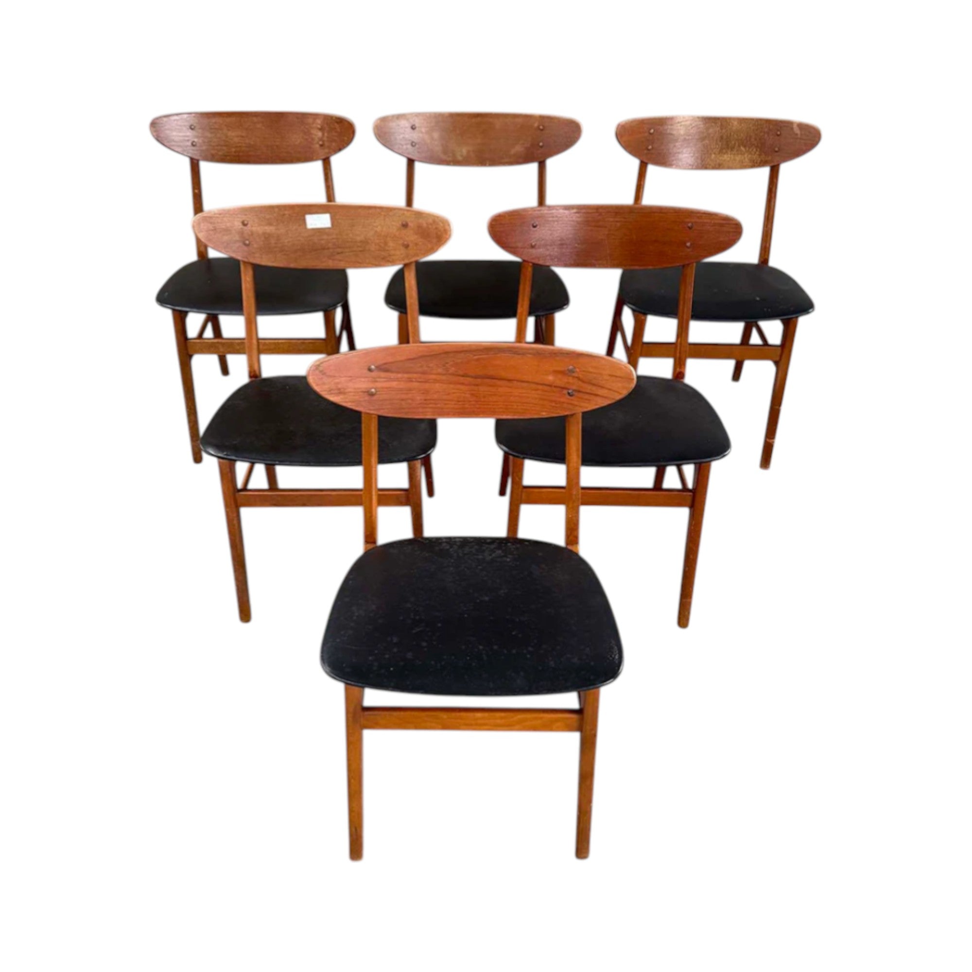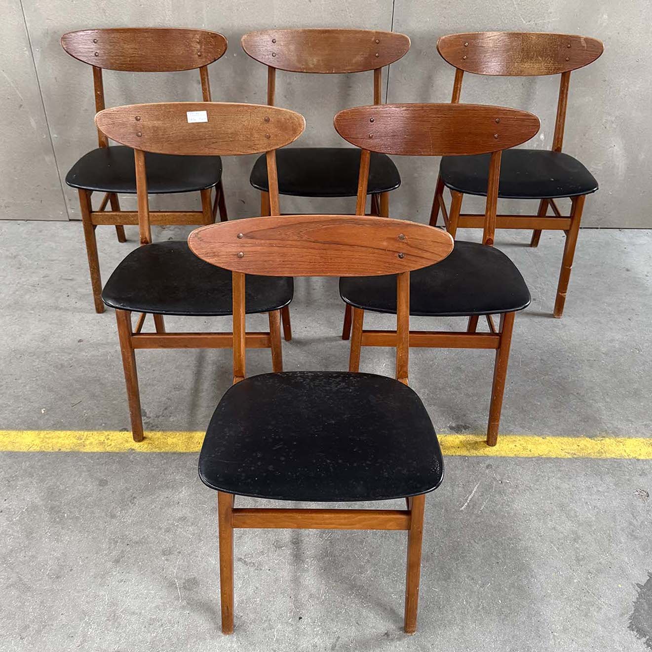 Set of six classic Danish dining chair by Farstrup Mobler, 'Model 100', 1960s. In original vintage condition with vinyl upholstery.