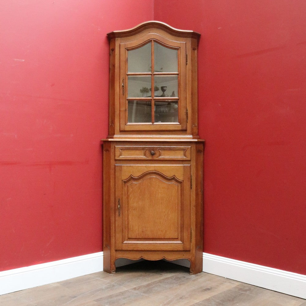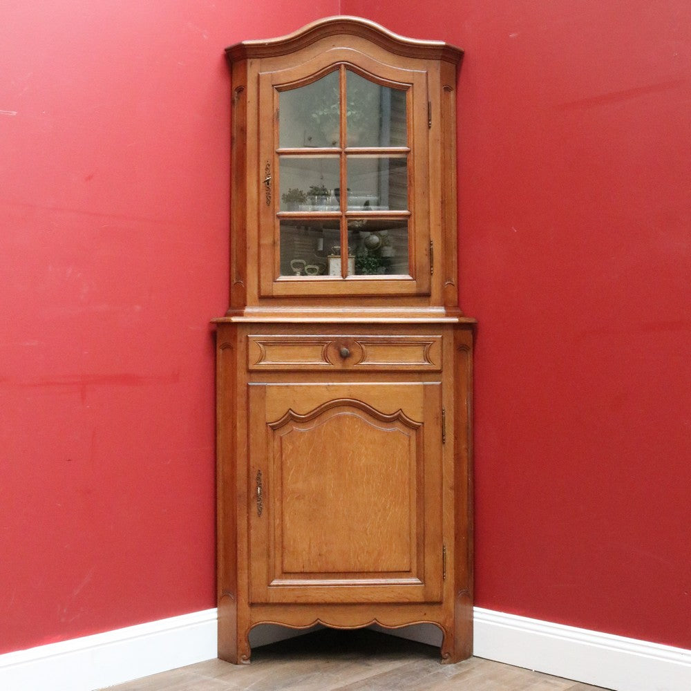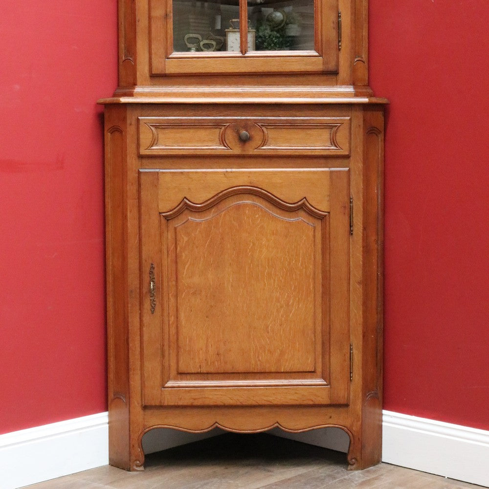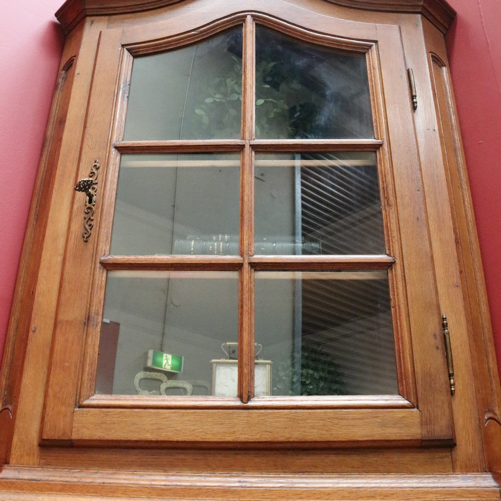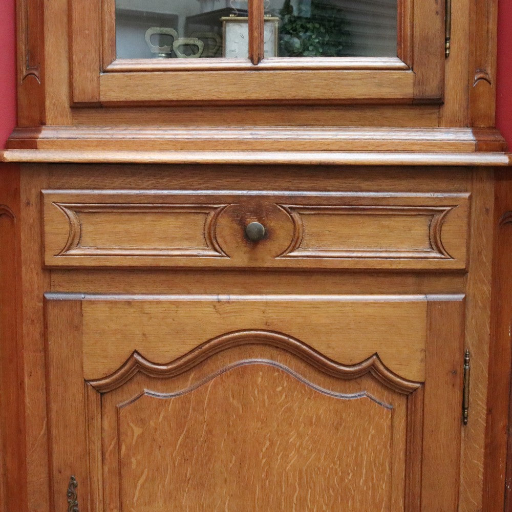 Description: A French oak corner cabinet, designed in two sections — traditionally referred to in French as deux corps, meaning “two bodies” or “two separate pieces.” This style is also known as anencoignure, a classic corner cabinet that makes excellent use of space while adding strong decorative presence.