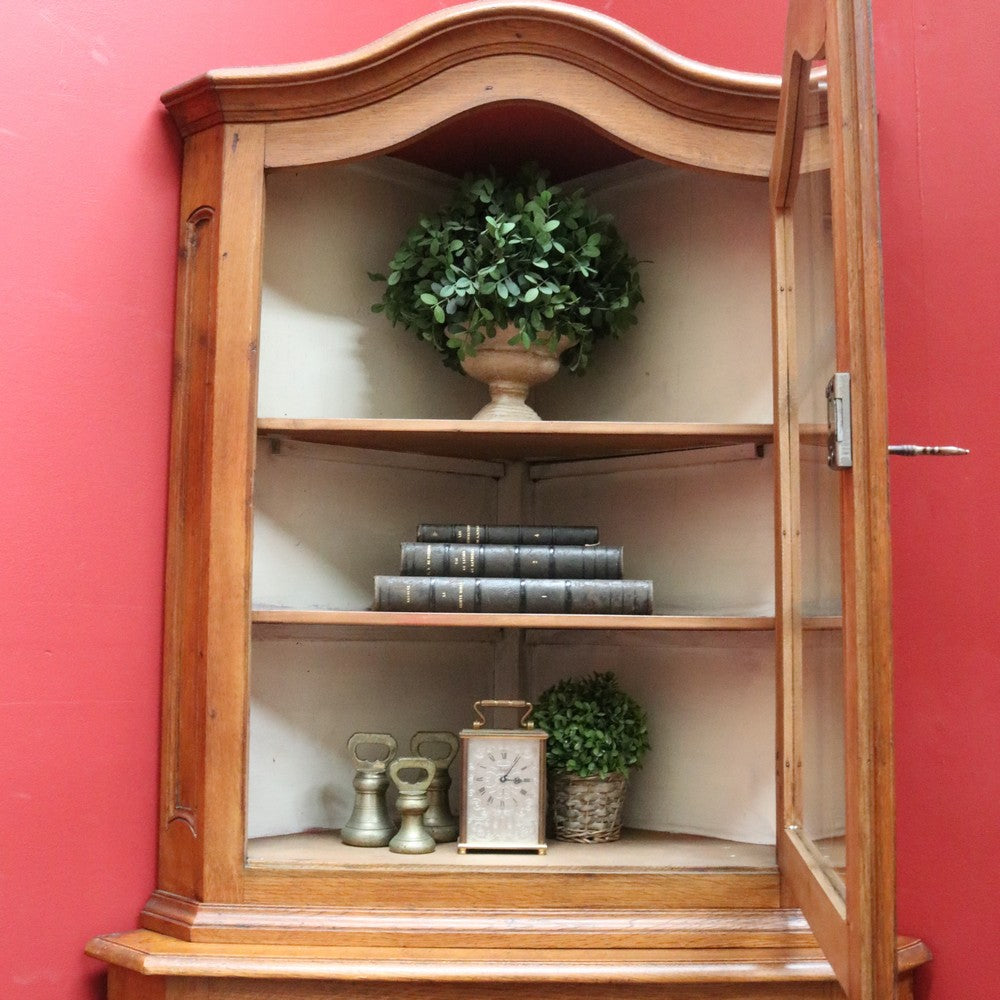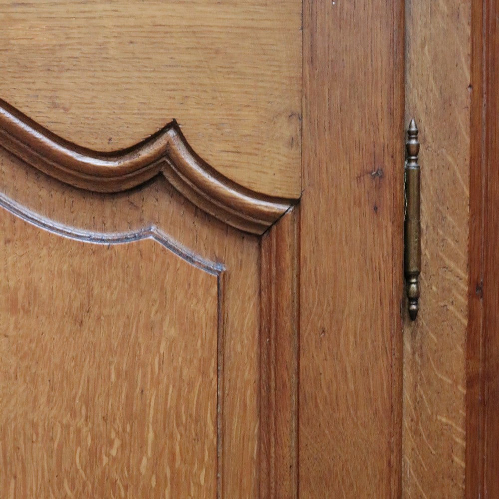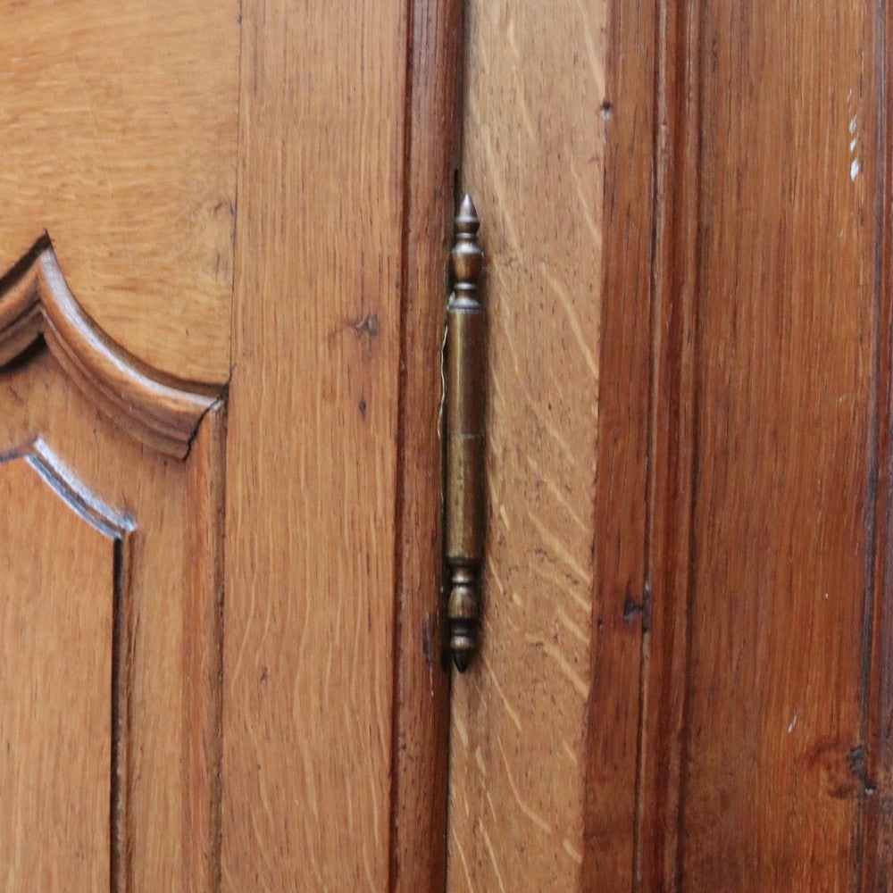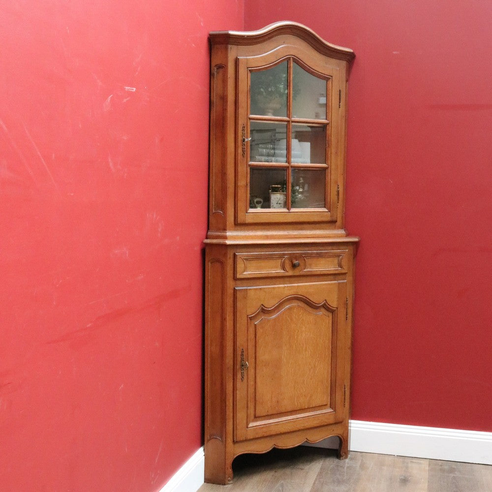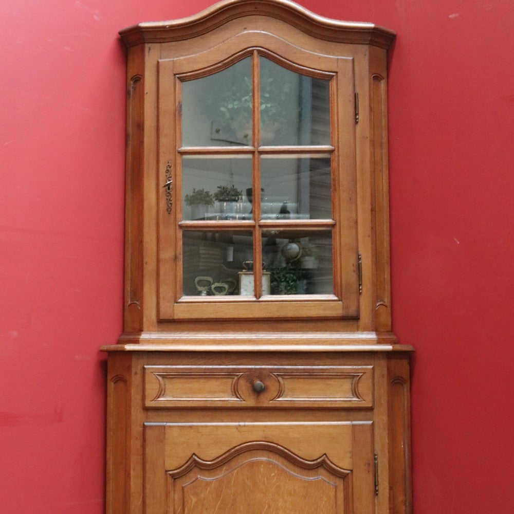 Description: A French oak corner cabinet, designed in two sections — traditionally referred to in French as deux corps, meaning “two bodies” or “two separate pieces.” This style is also known as anencoignure, a classic corner cabinet that makes excellent use of space while adding strong decorative presence.