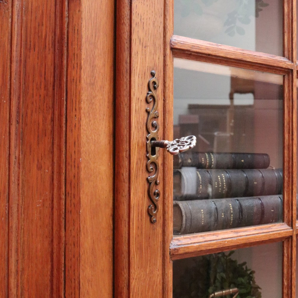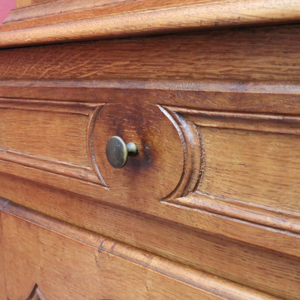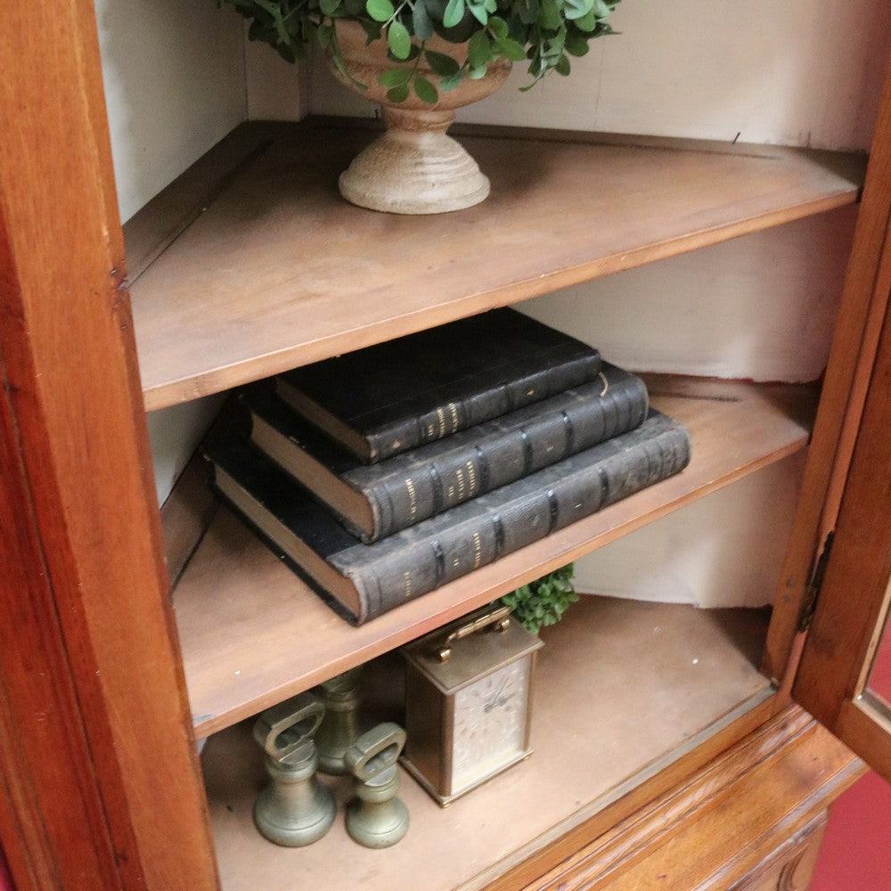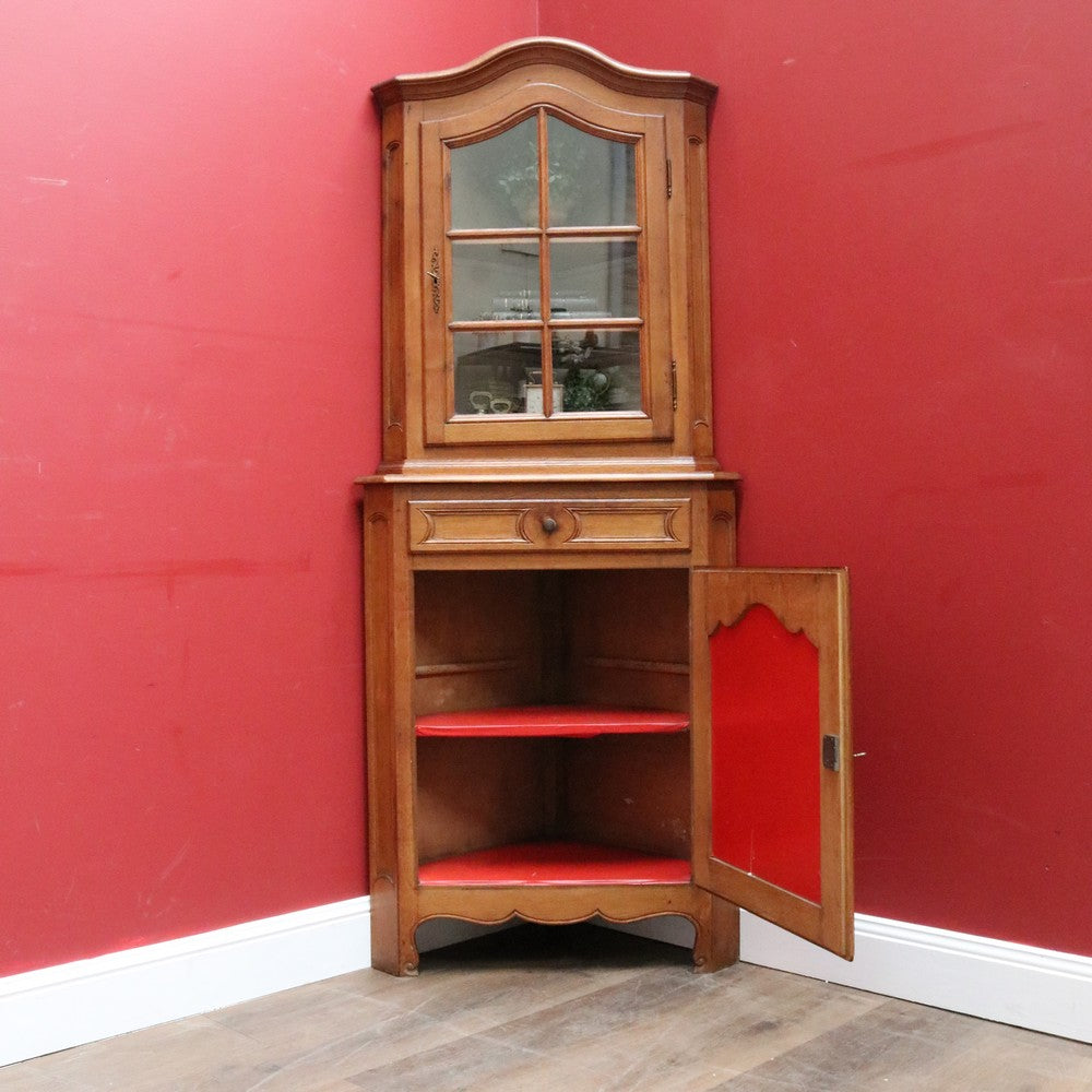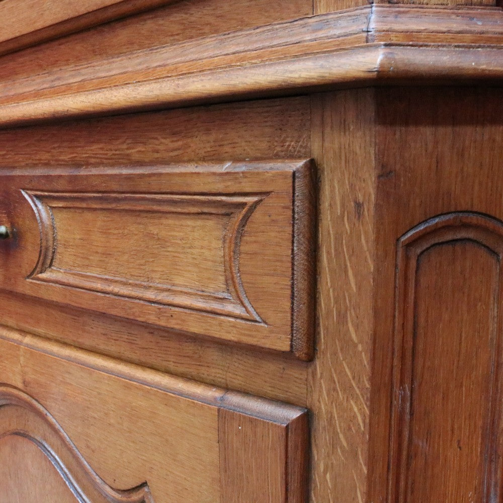 Description: A French oak corner cabinet, designed in two sections — traditionally referred to in French as deux corps, meaning “two bodies” or “two separate pieces.” This style is also known as anencoignure, a classic corner cabinet that makes excellent use of space while adding strong decorative presence.
