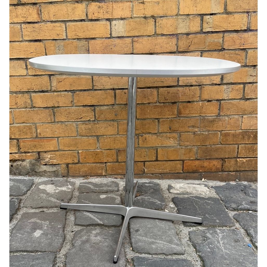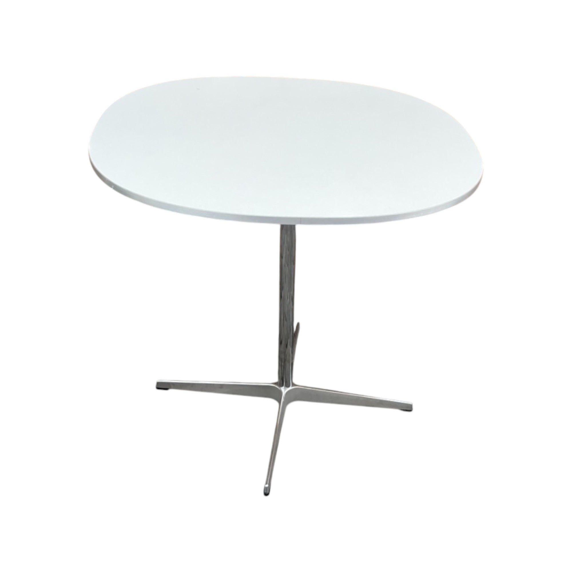 Perfect for a small apartment, cafe or office. The Fritz Hansen small dining table offers a timeless design. The Circular Table is designed by Arne Jacobsen and boasts his genius sensibility for proportion.