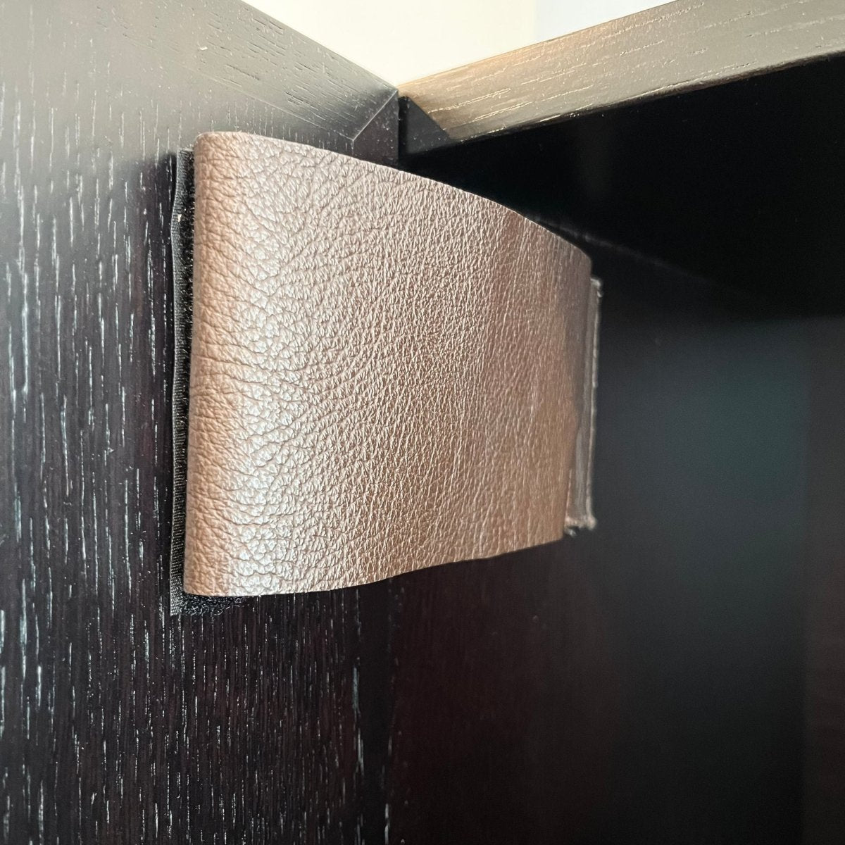 Features professional Würth concealed hinges throughout — the German-engineered hardware standard specified by Europe's finest furniture manufacturers. Würth components cost 3-5× more than consumer alternatives but deliver precision engineering and lifetime durability. This detail alone confirms the cabinet's provenance as professionally manufactured luxury furniture rather than mass-market production. Each hinge is wrapped in a removable leather cover for serviceability and aesthetic refinement.