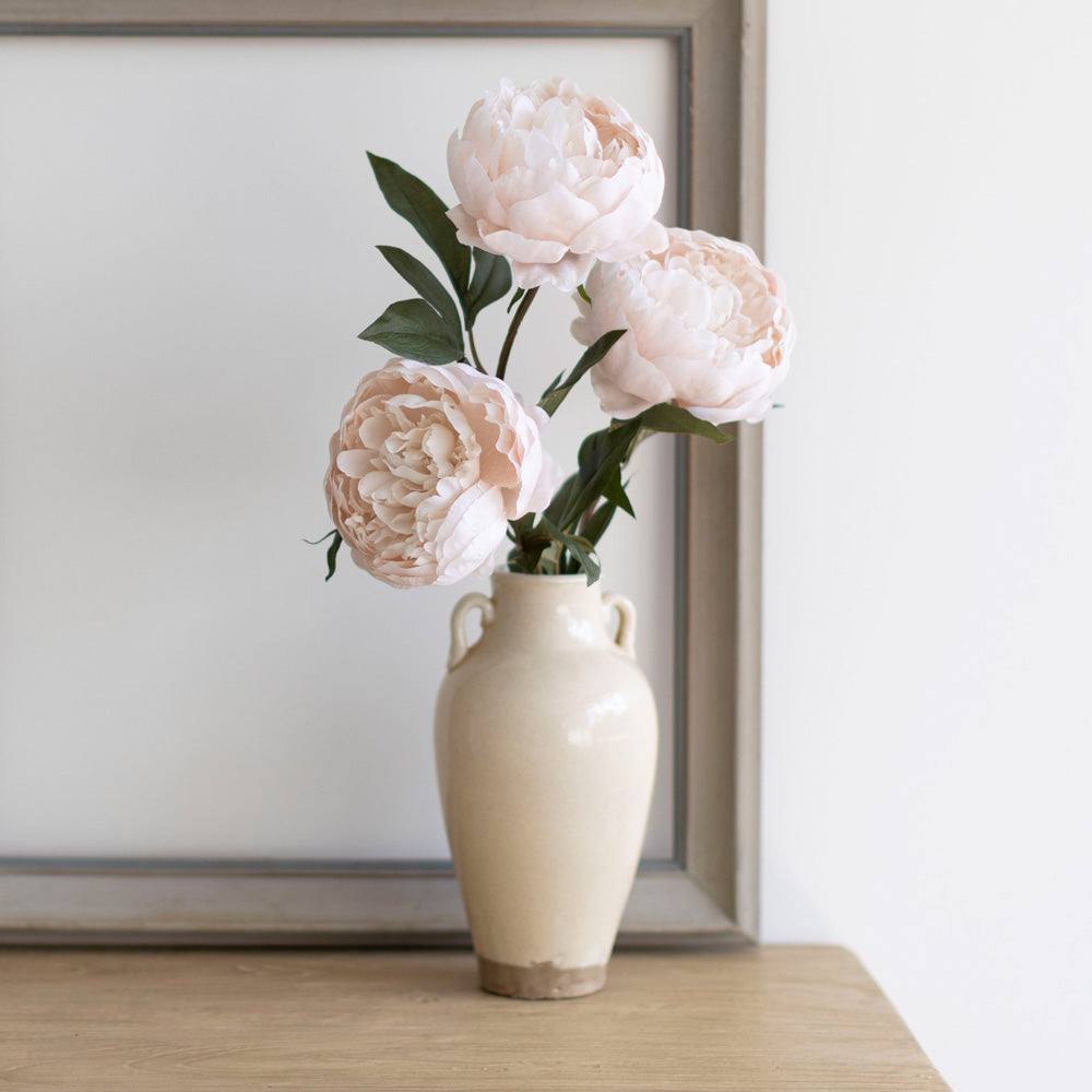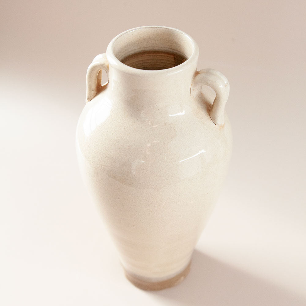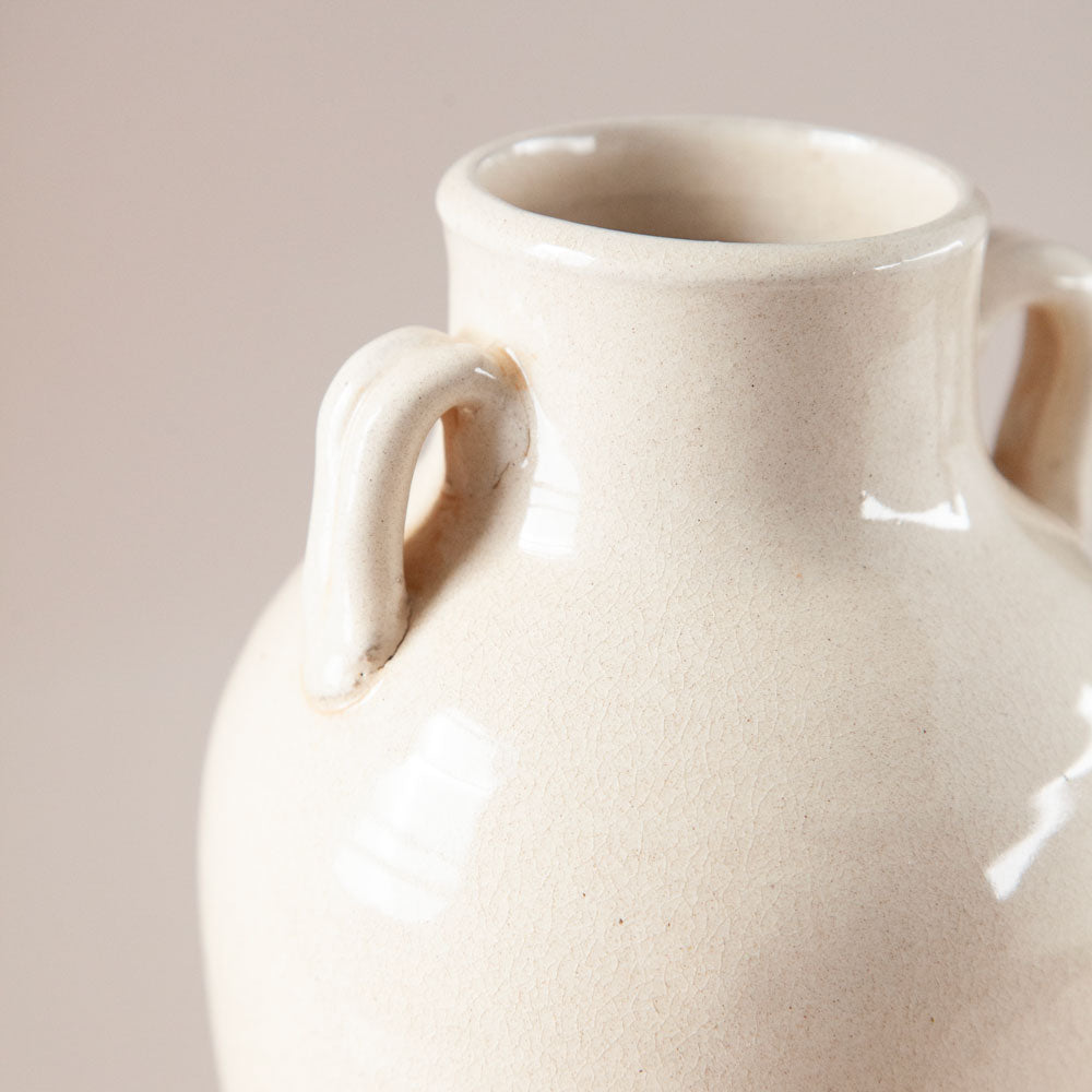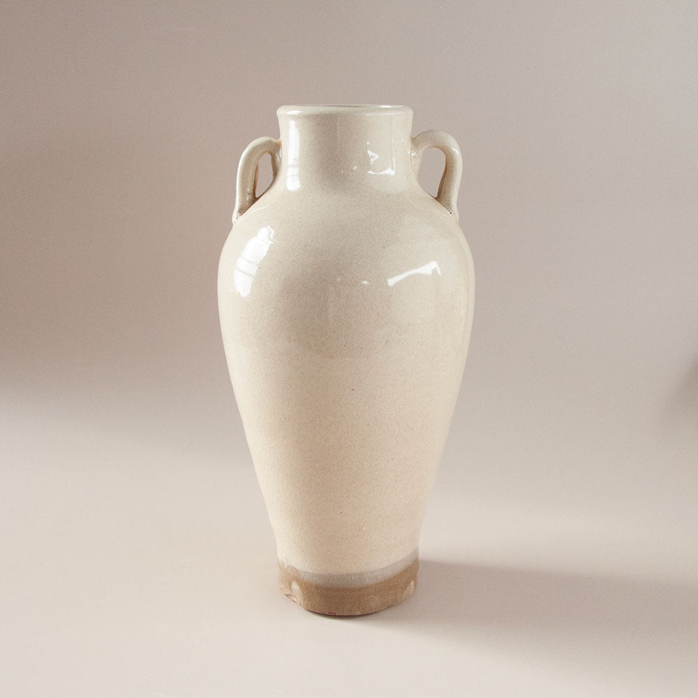 The Ivy vase is an elegant decorator piece. Featuring an off-white glazed ceramic finish with time-worn character; the Ivy vase look is perfect styled up on a book shelf, coffee table, or side table, either empty or filled with your favourite faux foliage.