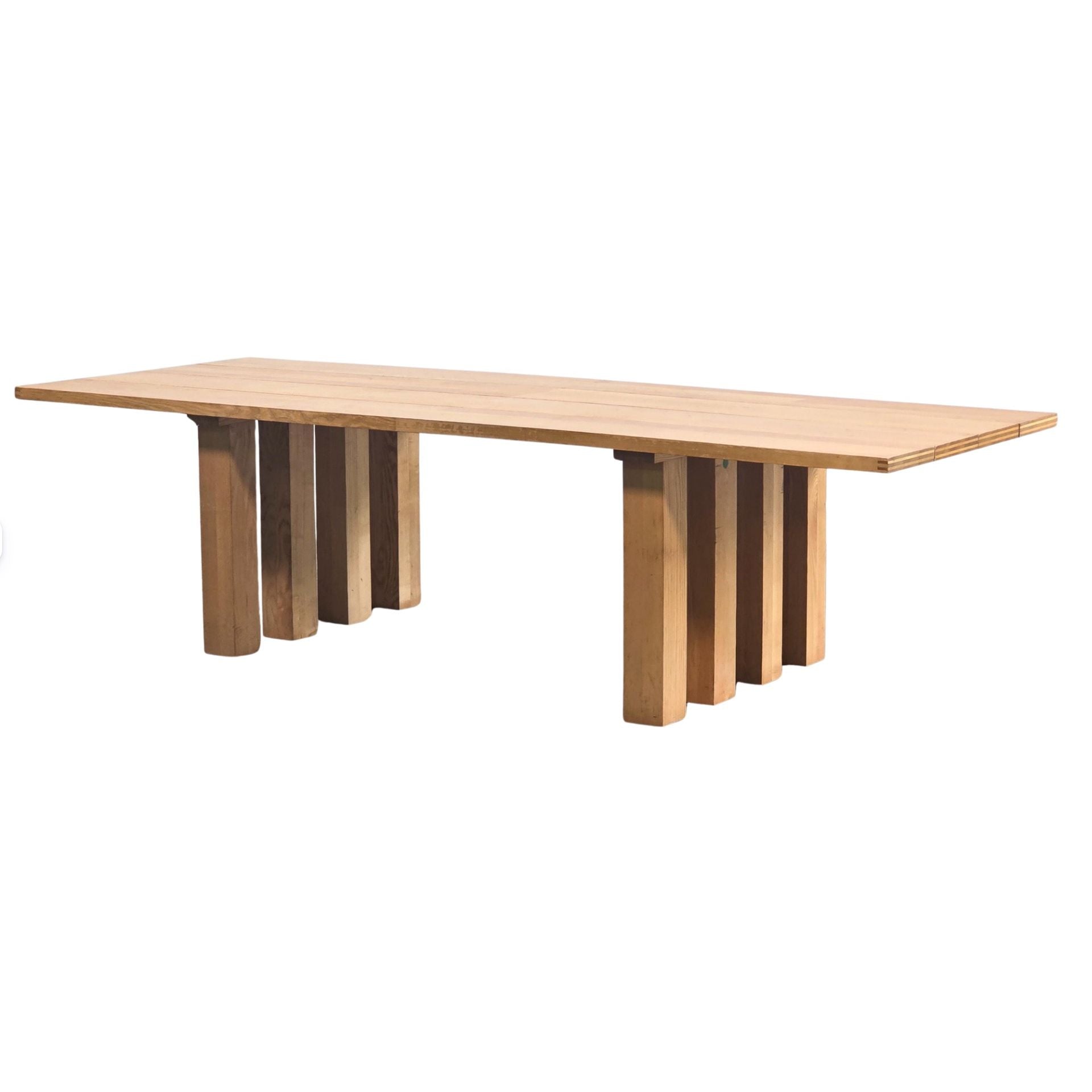 A large designer table with an expressive name and exemplary construction, characterized by a solid linear form inspired by Mario Bellini’s 1970s design language. The table features eight legs and is crafted entirely from solid ash wood with a natural ash finish.