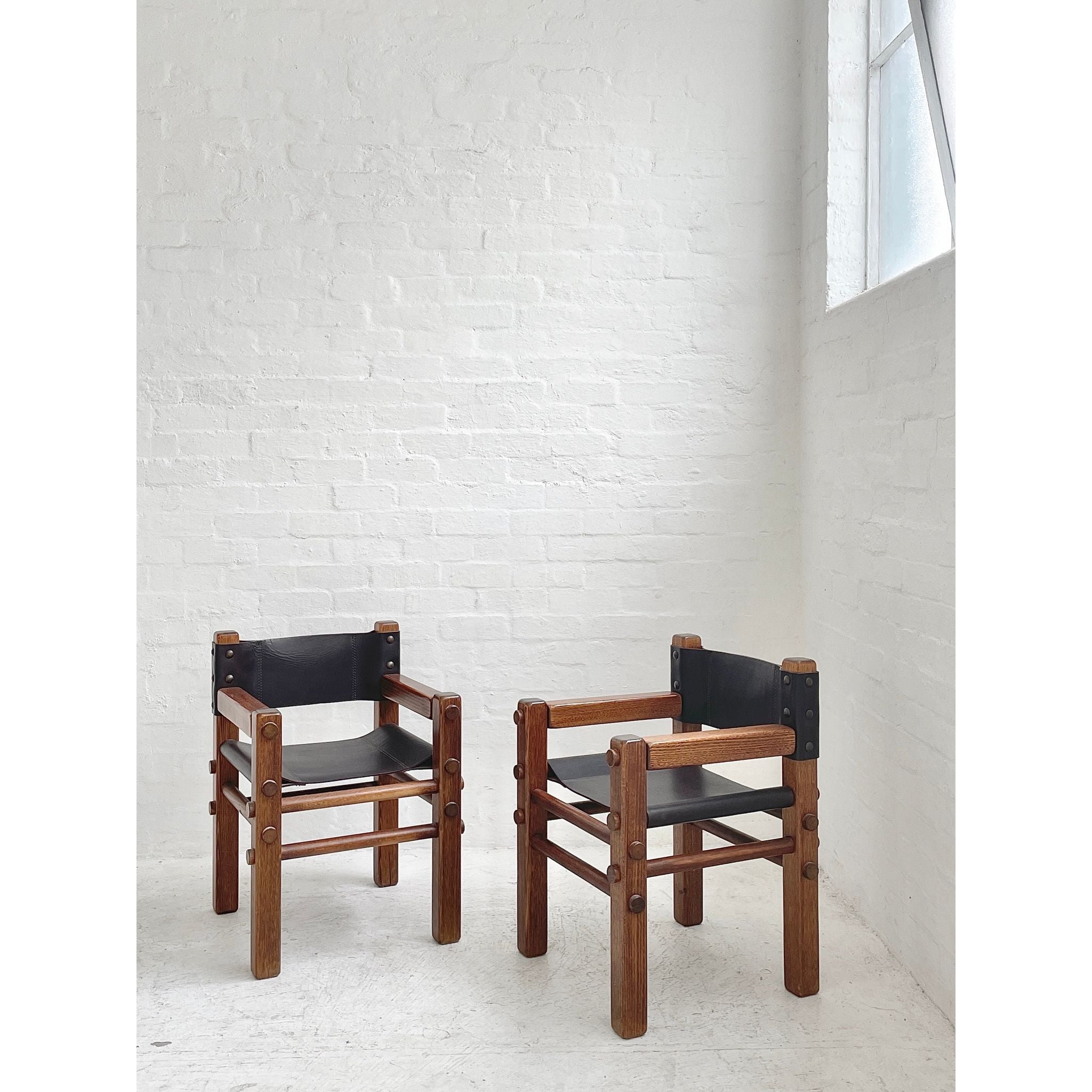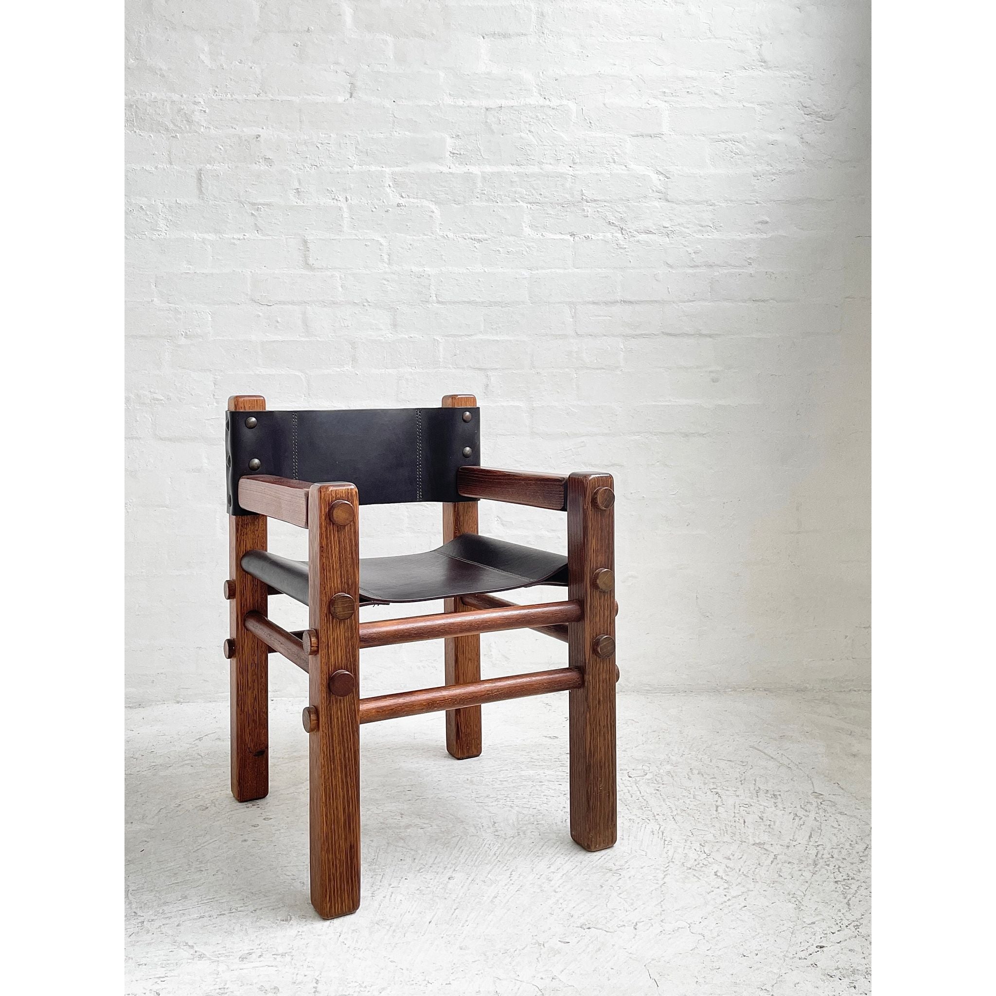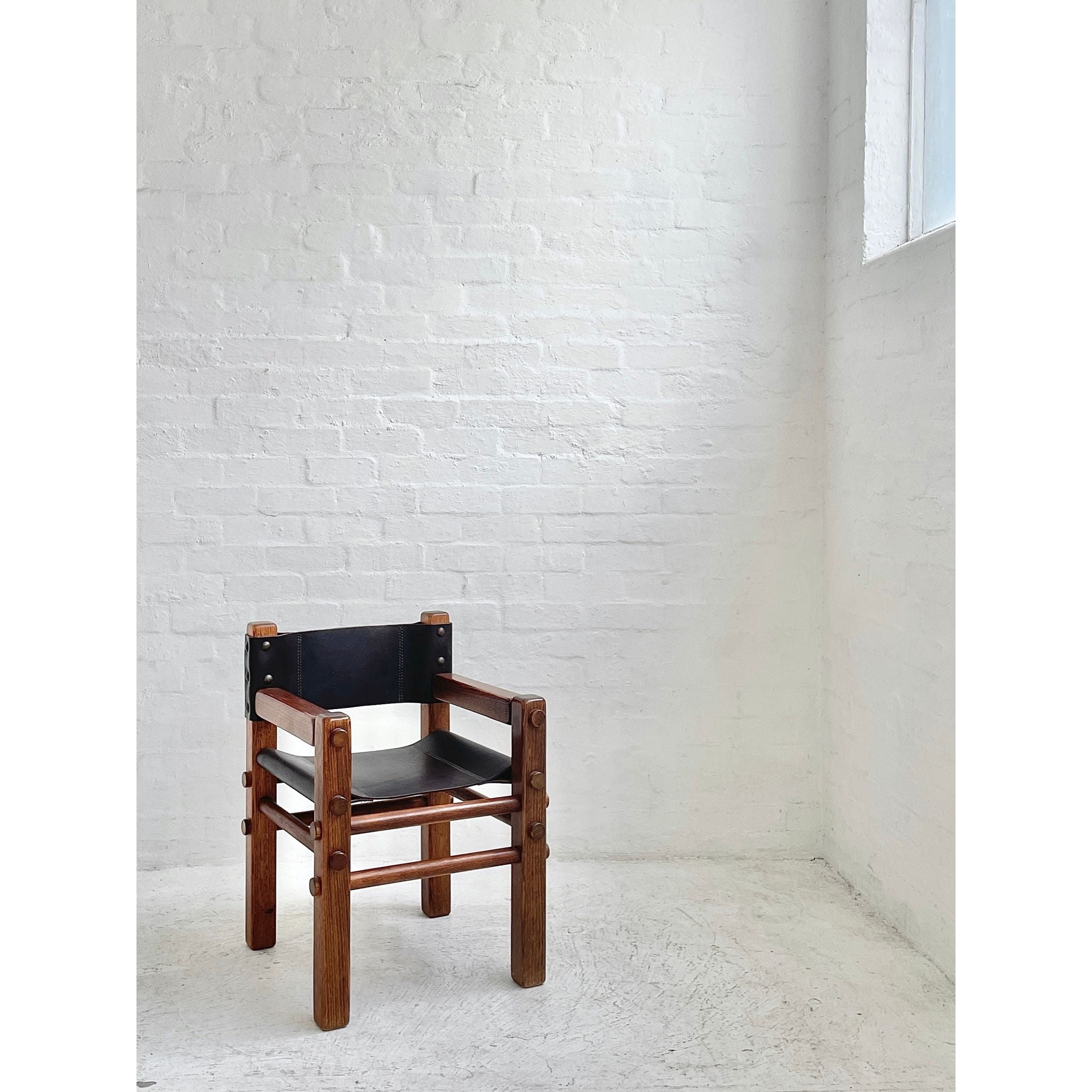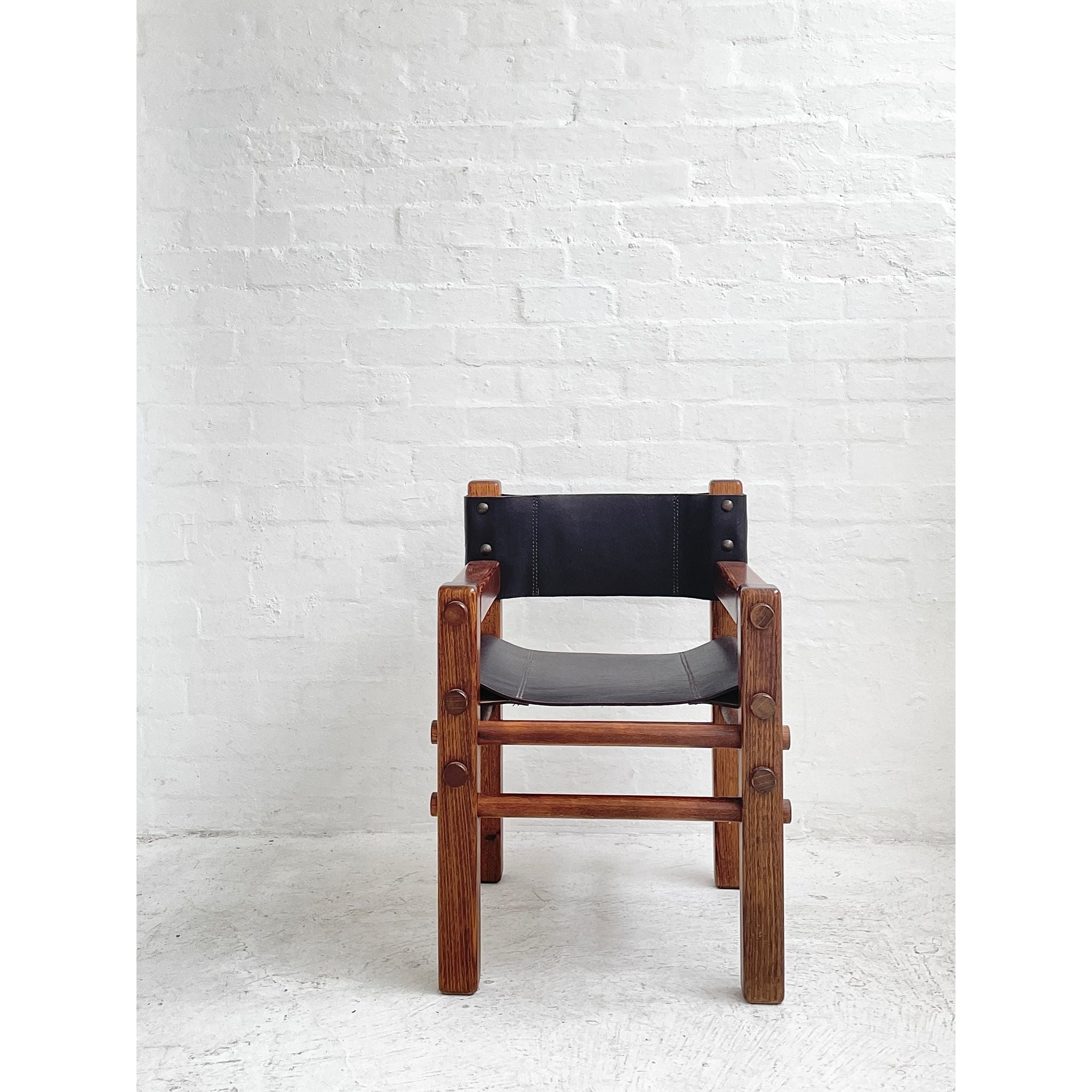 Solid Tasmanian Oak and saddle hide chairs produced by NORE c1970s. In excellent original condition. Two available. Price per chair.