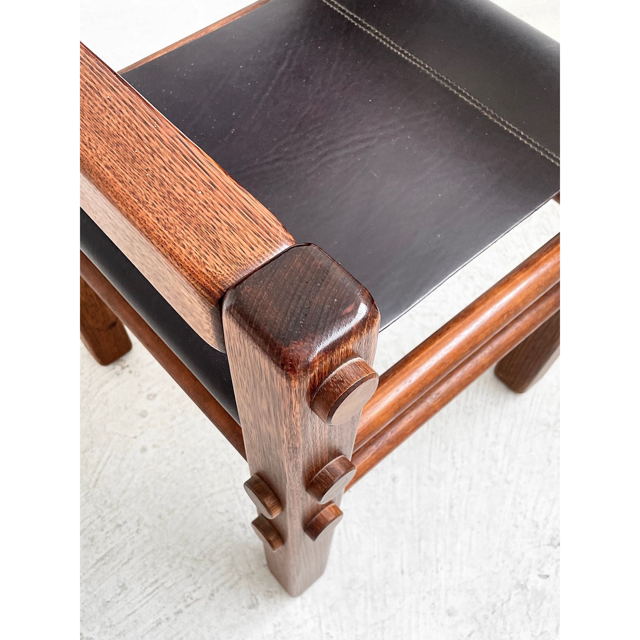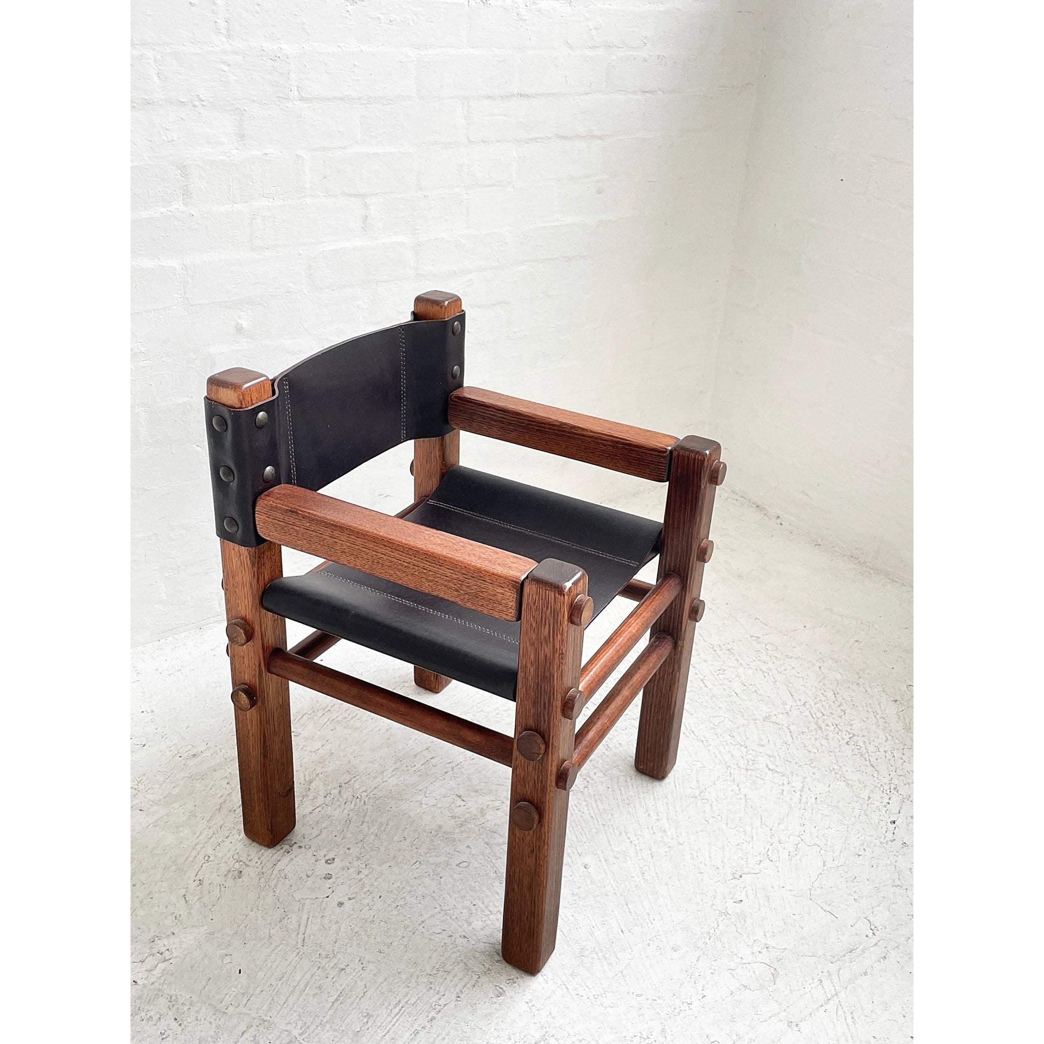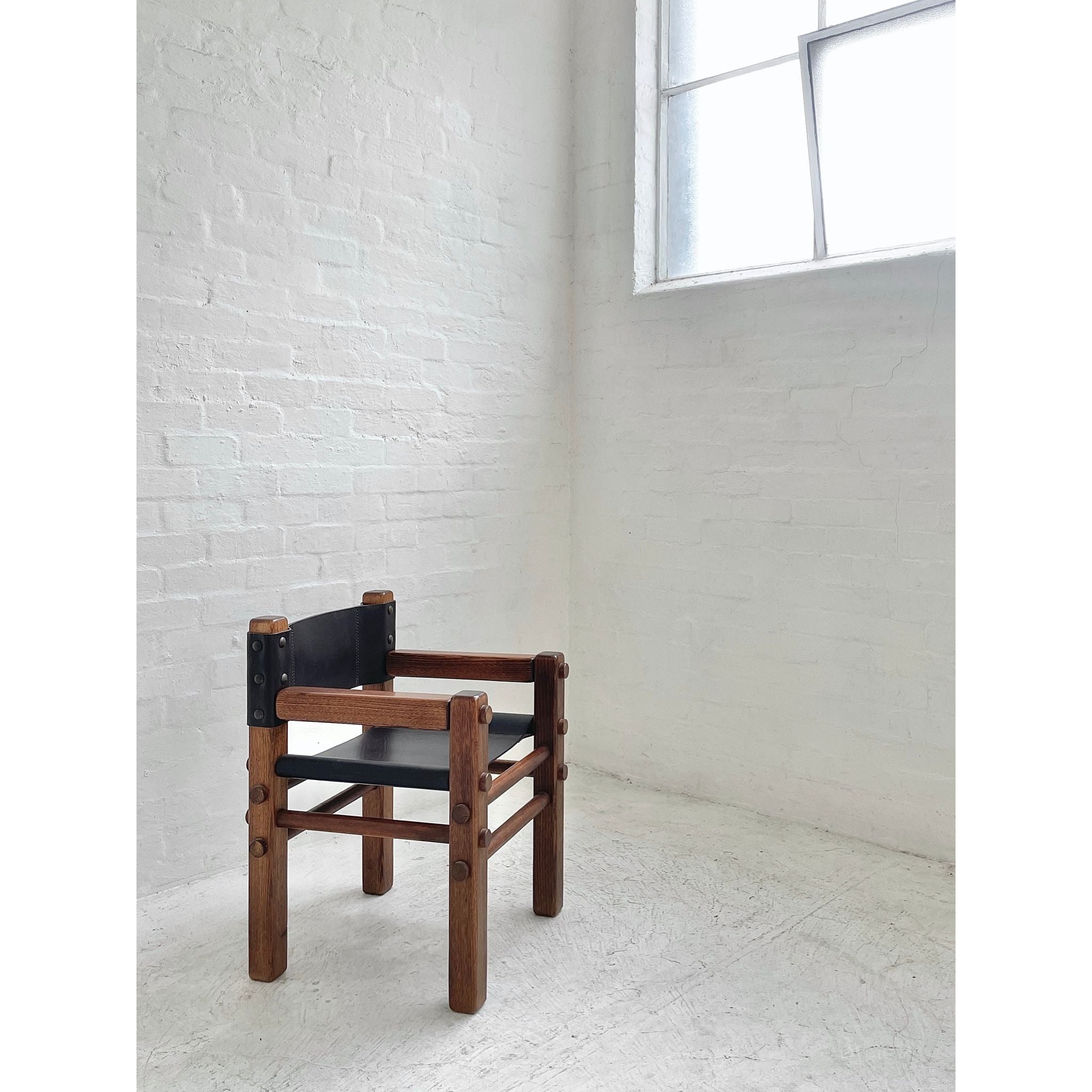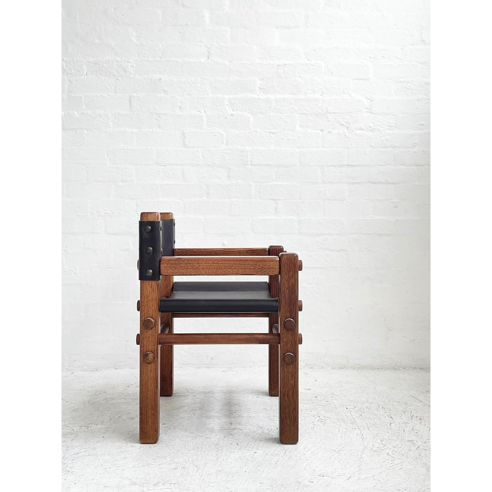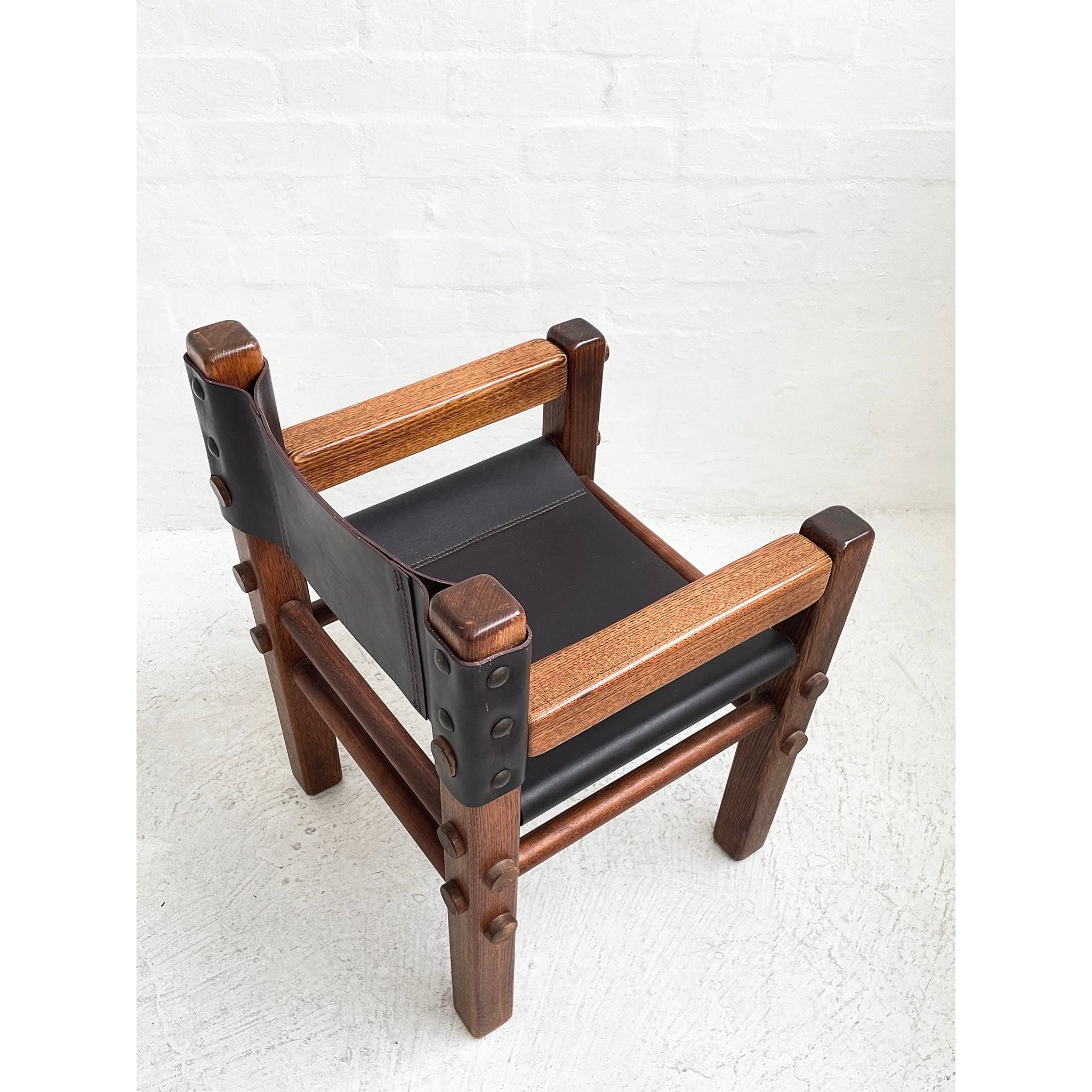 Solid Tasmanian Oak and saddle hide chairs produced by NORE c1970s. In excellent original condition. Two available. Price per chair.