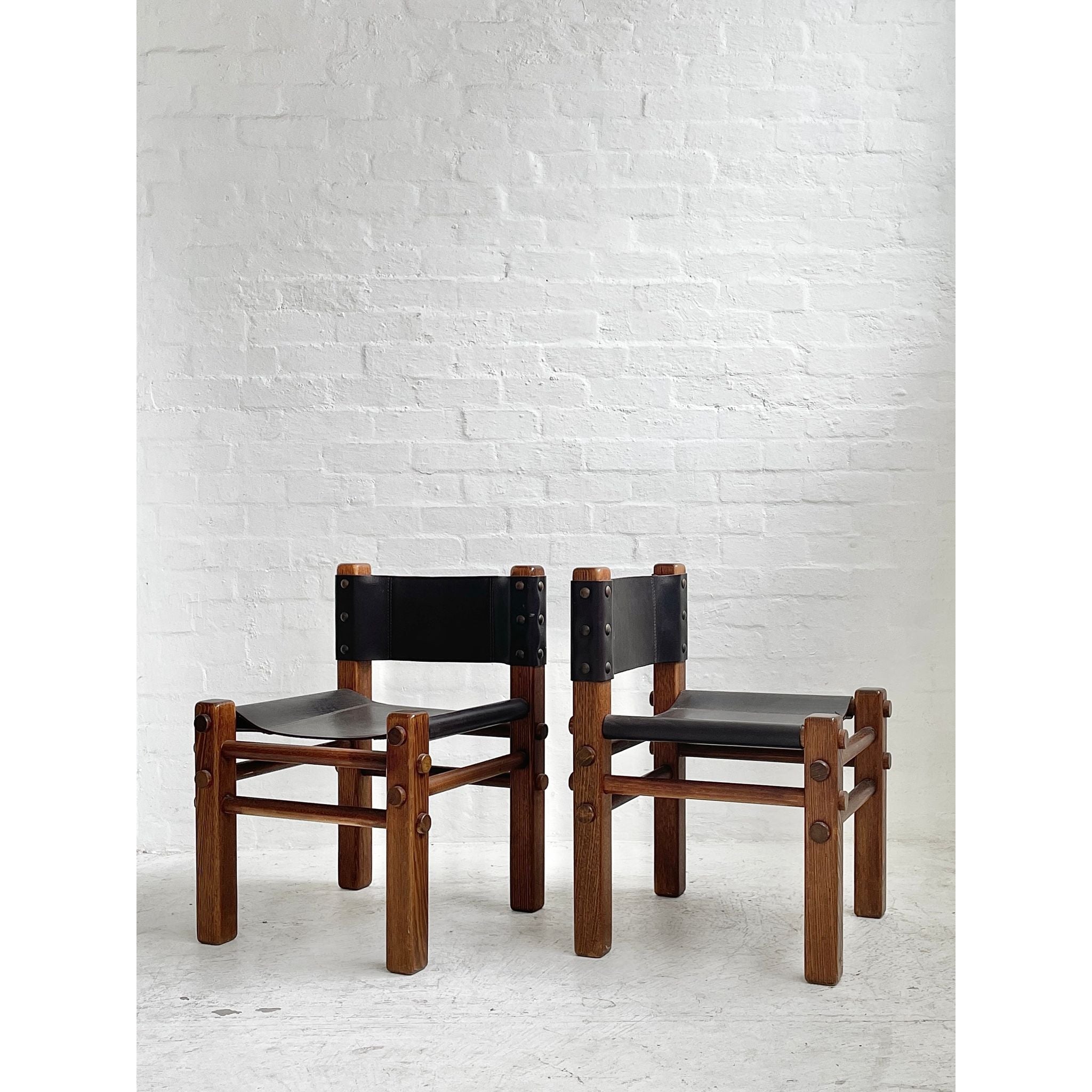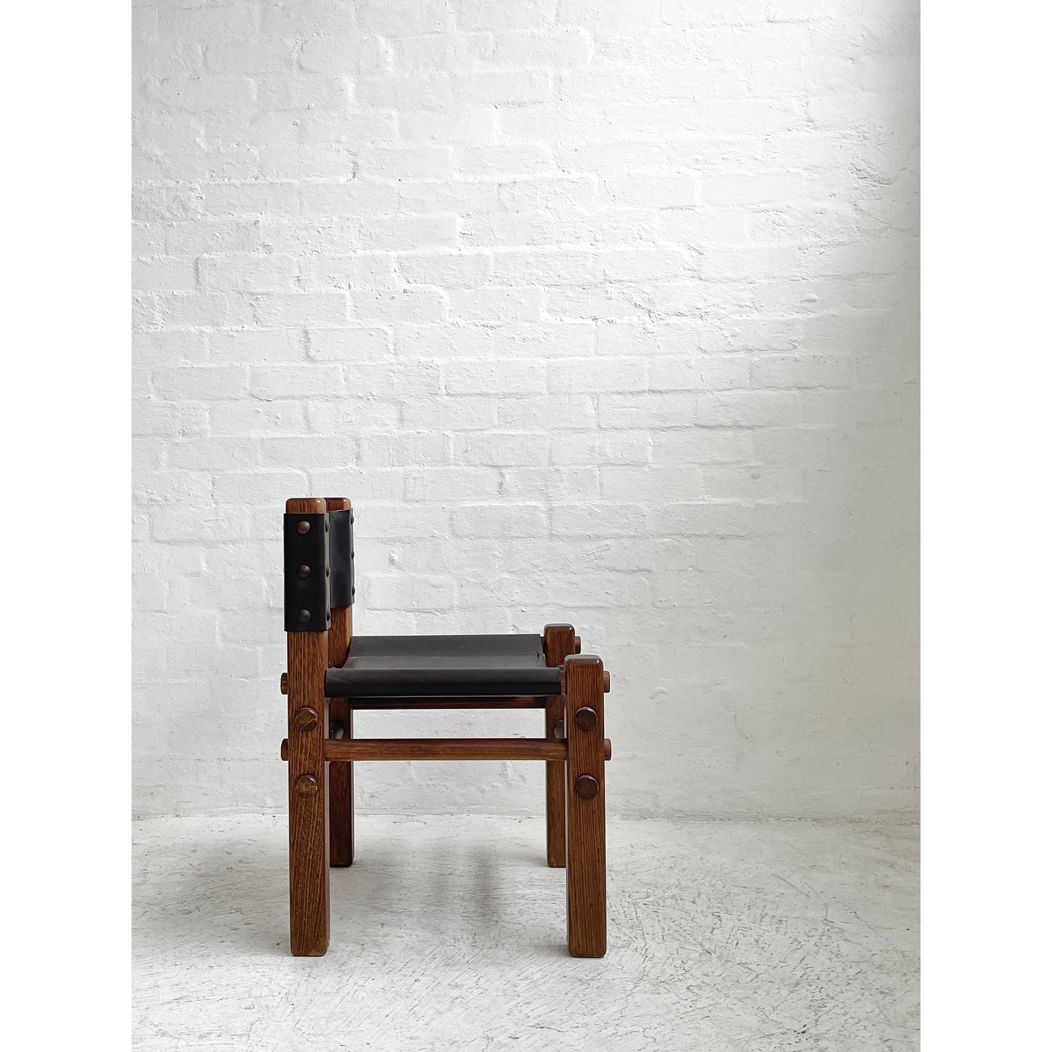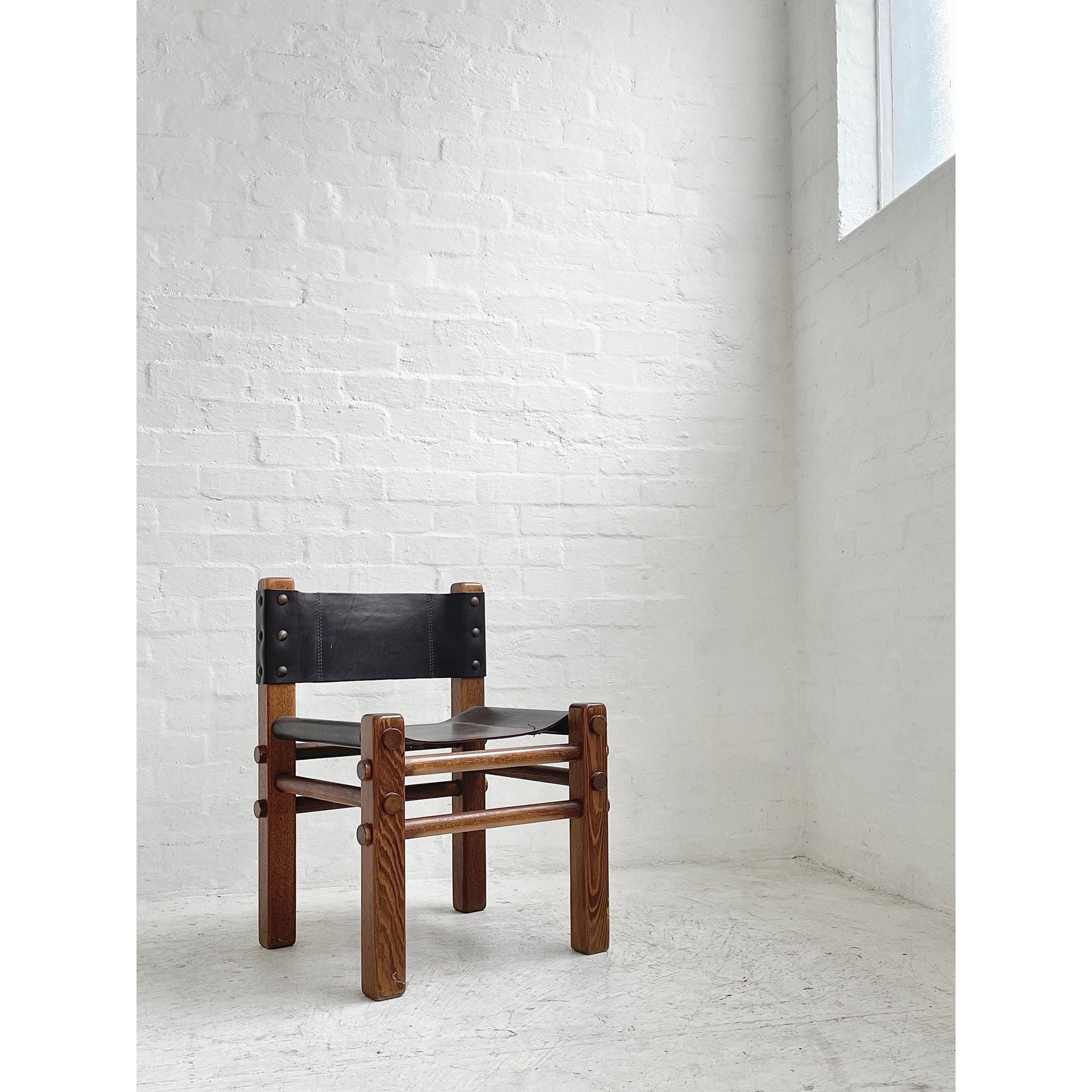 Solid Tasmanian Oak and saddle hide chairs produced by NORE c1970s. In excellent original condition. Six available. Price per chair.