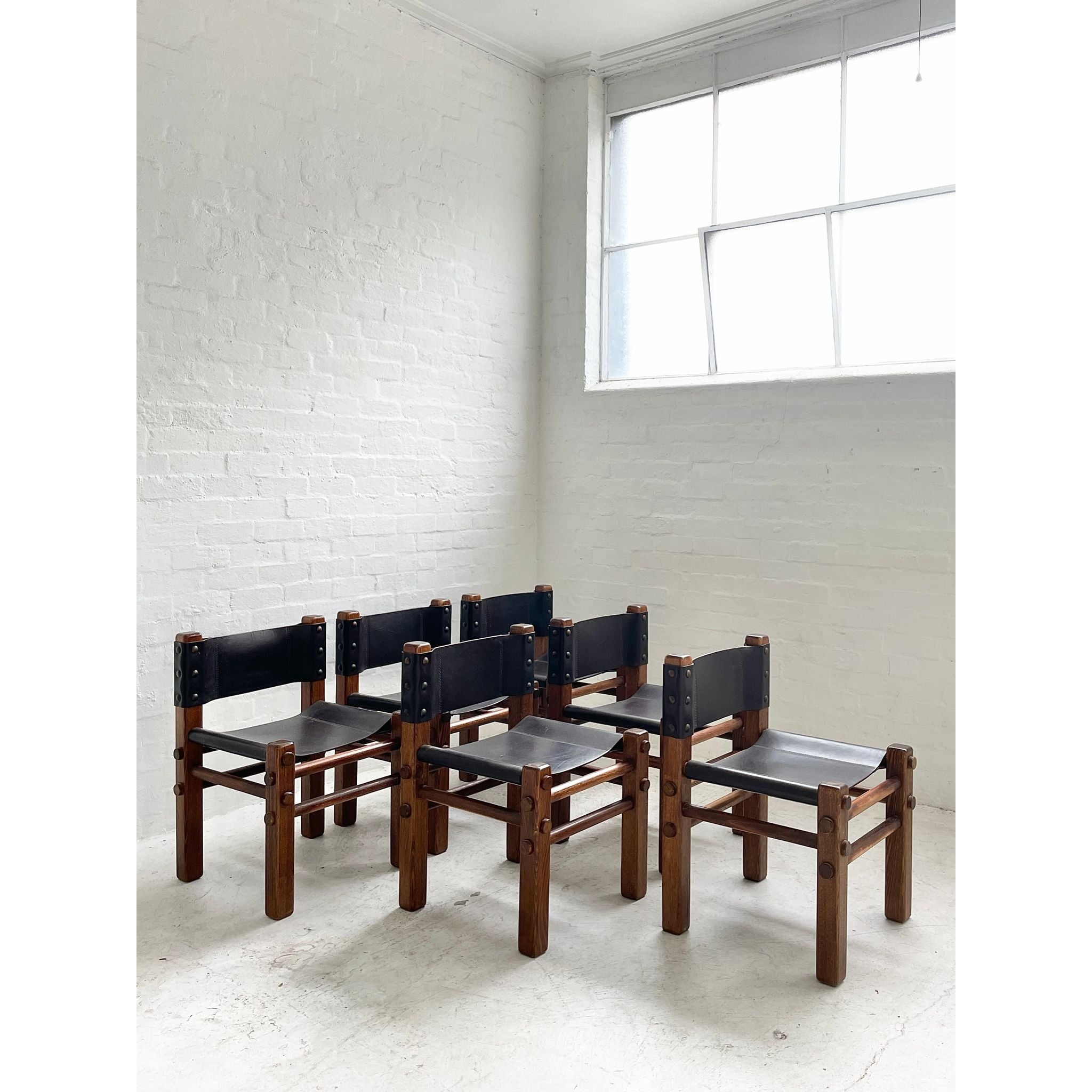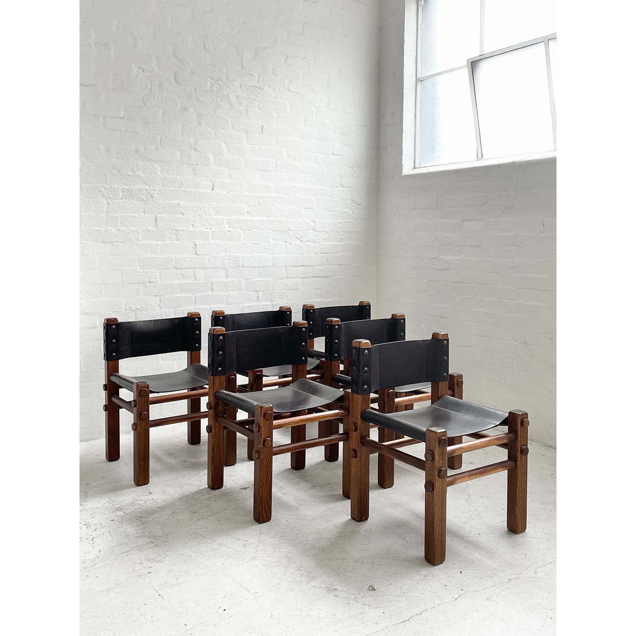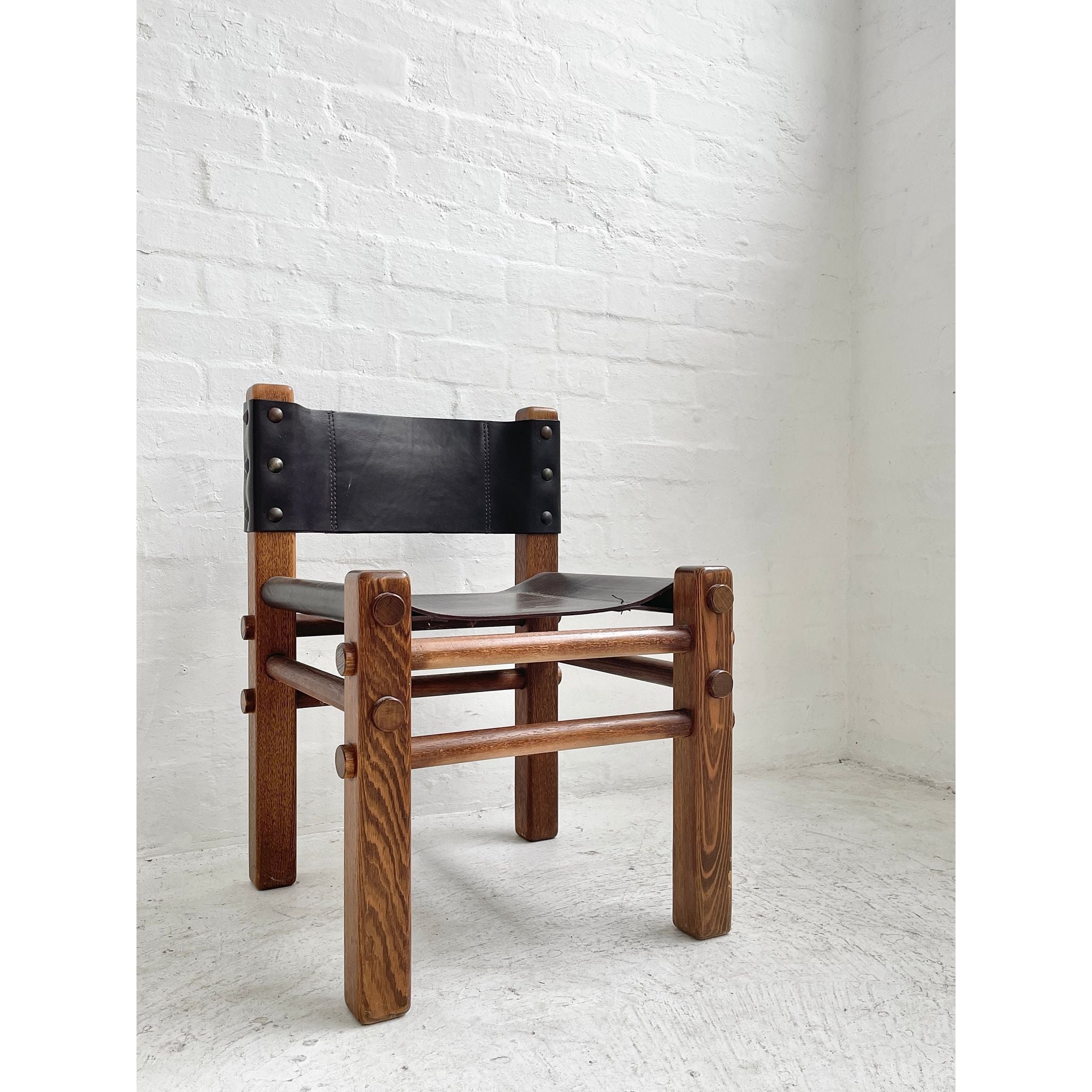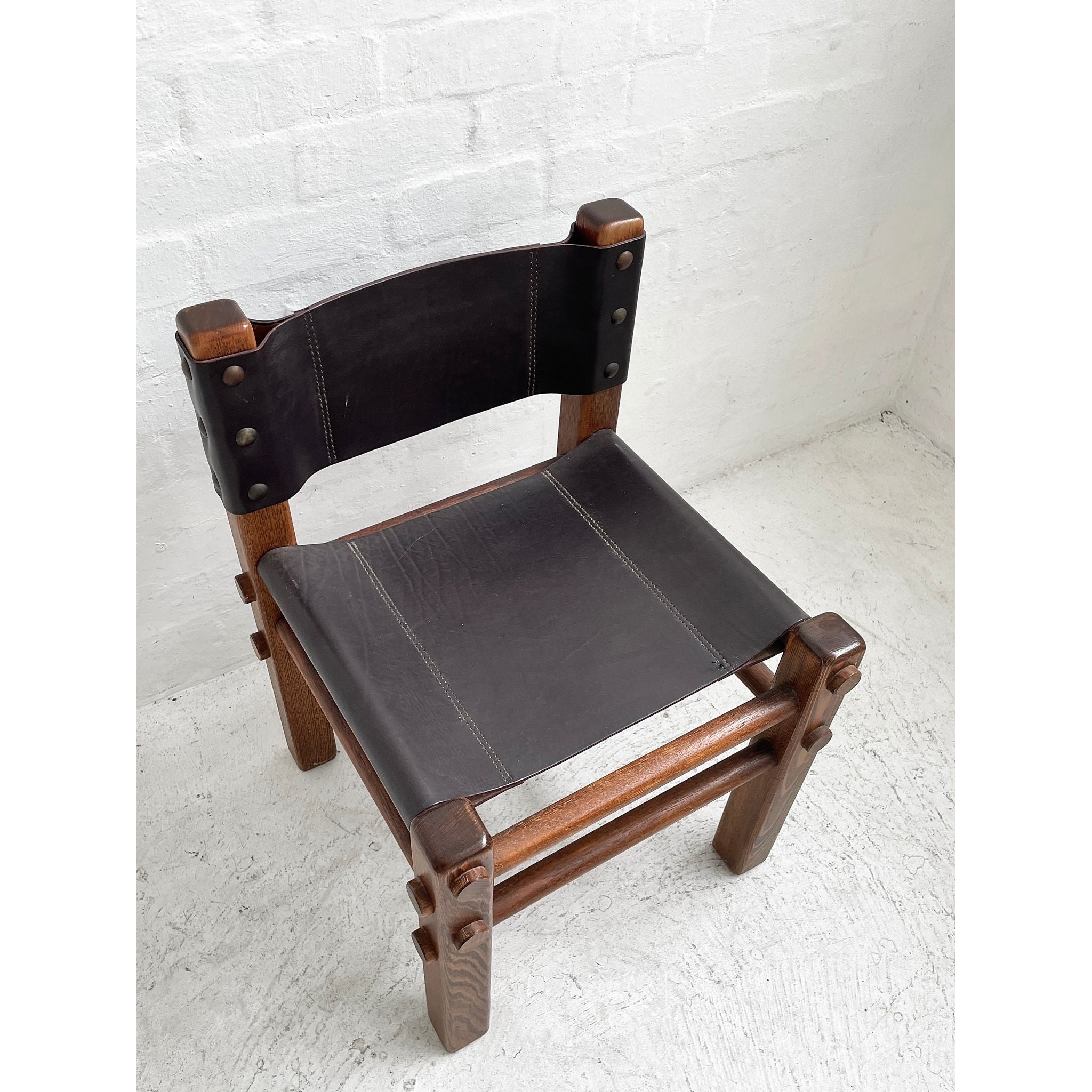 Solid Tasmanian Oak and saddle hide chairs produced by NORE c1970s. In excellent original condition. Six available. Price per chair.