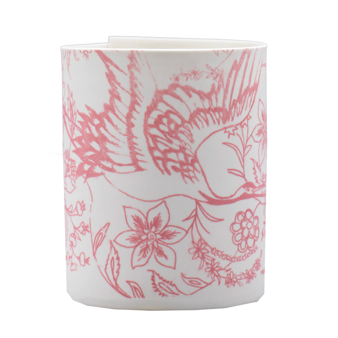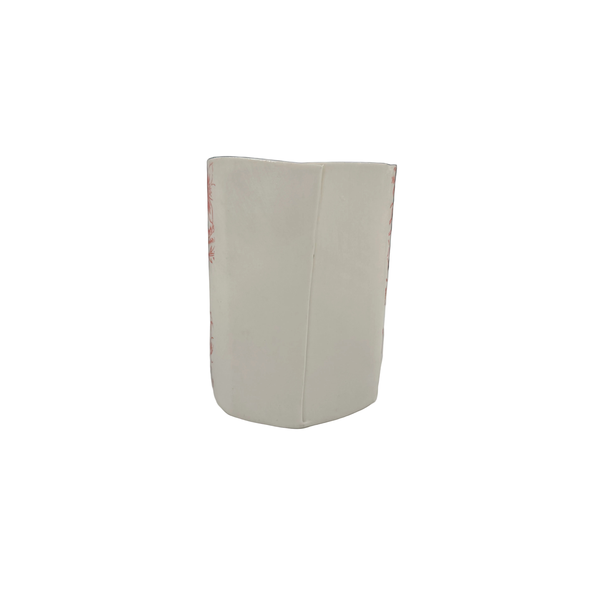 Crafted from porcelain, this handmade cylindrical vase features a delicate pink and white composition with exceptional versatility. The design accommodates both traditional floral arrangements and candlelit displays, allowing tealights to cast a warm glow through the vessel's walls. The artisanal construction demonstrates quality workmanship, while the neutral-leaning palette integrates effortlessly into diverse interior schemes. An investment piece that serves multiple decorative functions.
