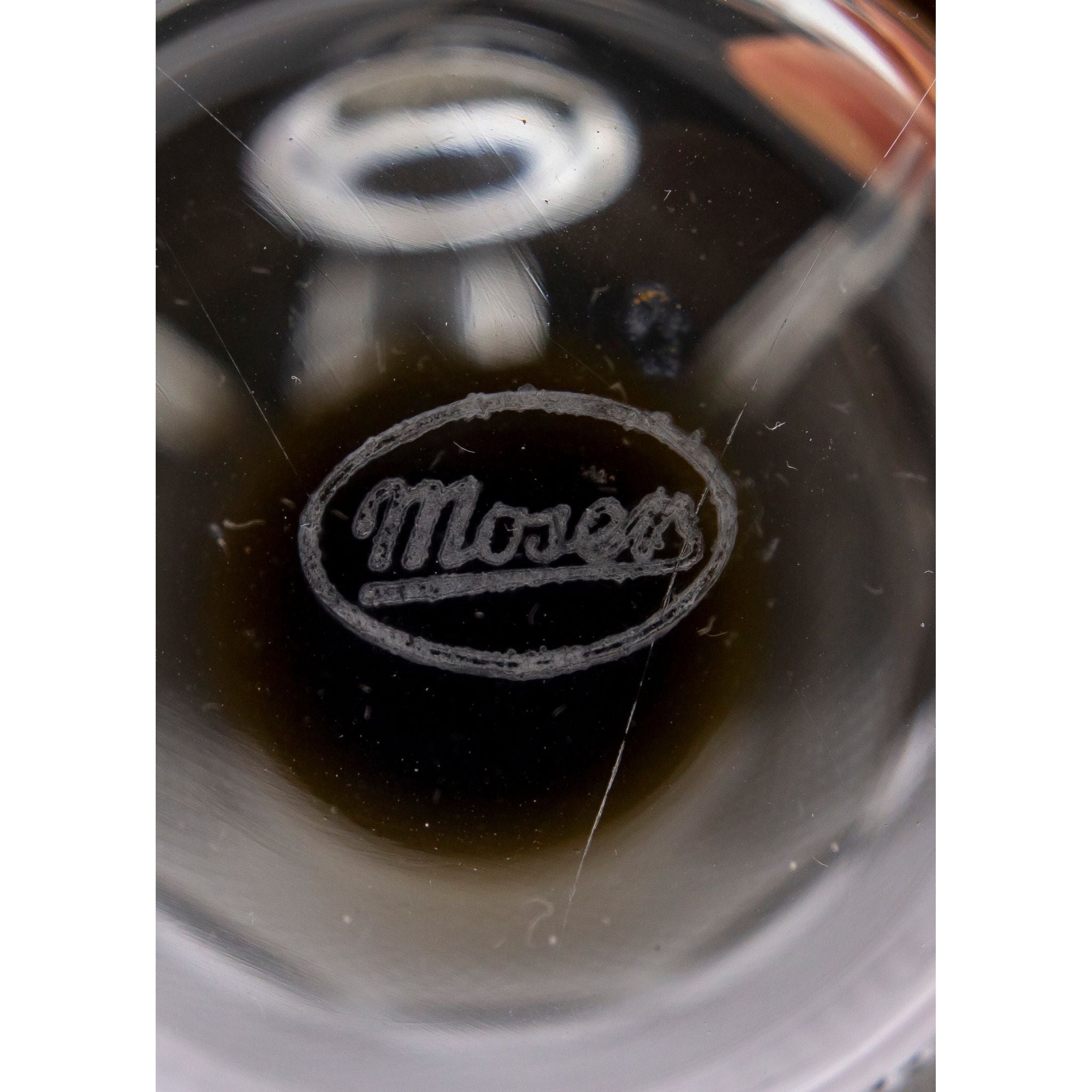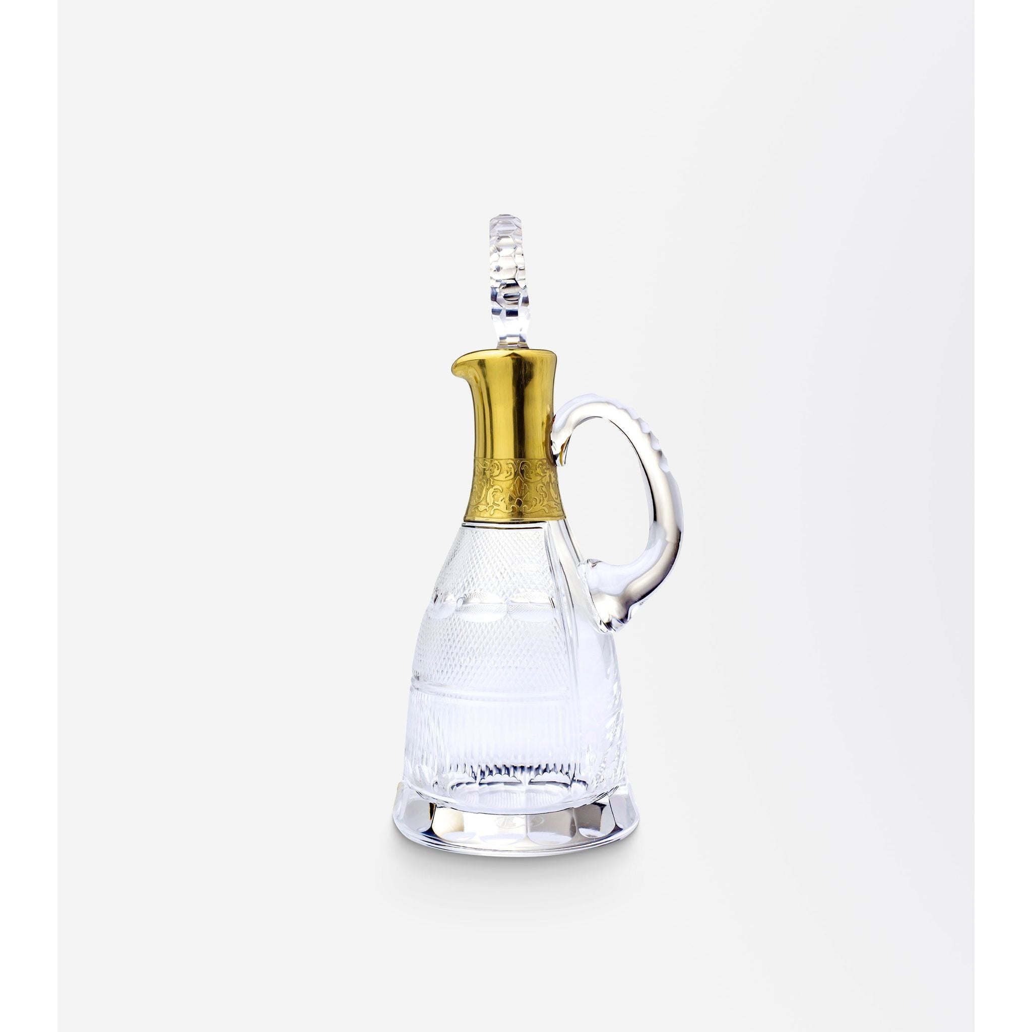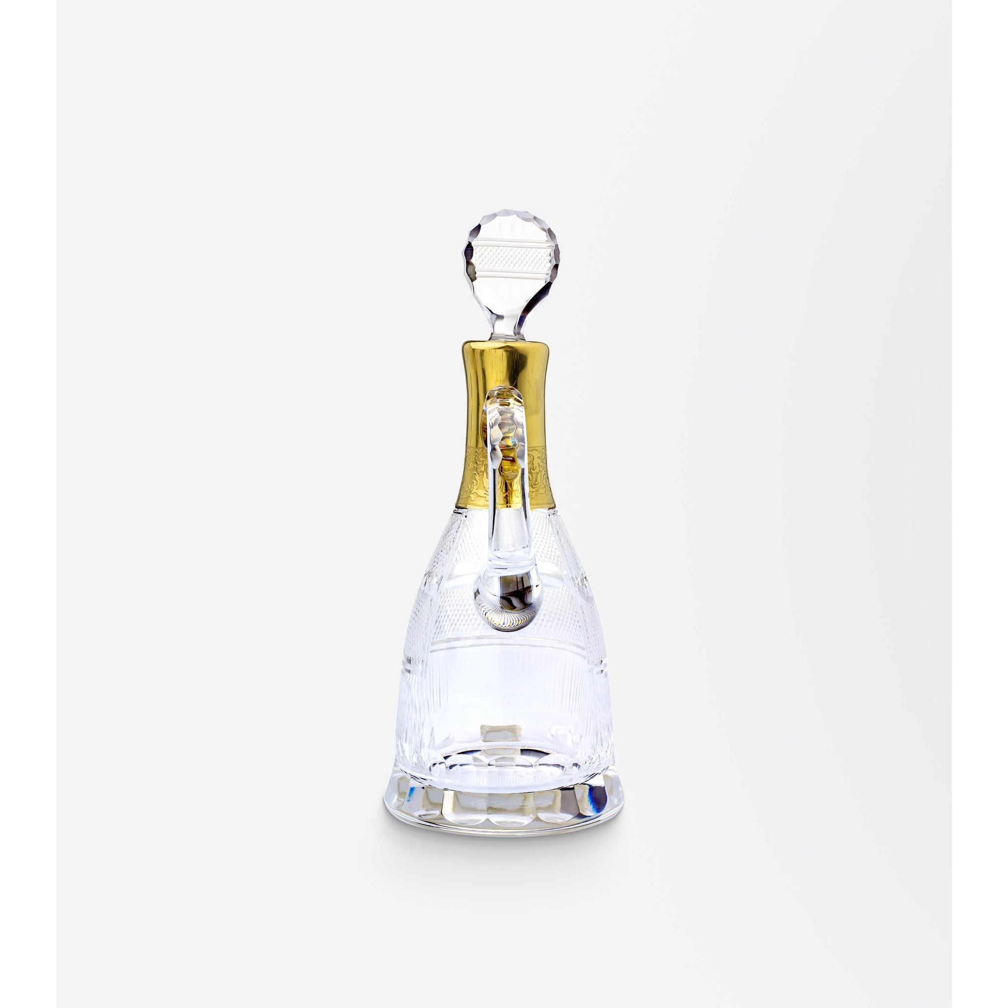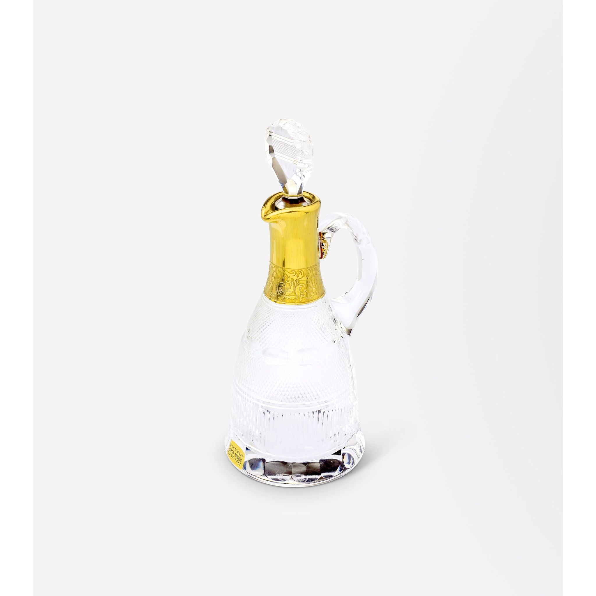 This rather petit crystal carafe with stopper has been made by the famed Czech glassmakers, Moser. The carafe which is made from lead free crystal is in the 'Splendid' pattern which was first introduced by Leo Moser in 1911. The pattern features an ornate 24 karat gilt rim which sits atop of a very intricate cut crystal body and has been made in a variety of shapes and sizes throughout its history. The Splendid pattern has been a staple among some of the world's finest dining rooms for decades with the Czechoslovak president gifting the late Queen Elizabeth II a selection of Splendid crystal for her wedding in 1947. This particular carafe retains its original retailing label and has an acid etched signature to the underside which have helped us date its manufacture to post 1992, when Czechoslovakia became the Czech Republic. In near immaculate condition the carafe has no chips or cracks and only minor wear to the underside, which comes with most pieces of vintage and antique glass. A really lovely way to store a vinaigrette or balsamic vinegar atop of a marble benchtop.
