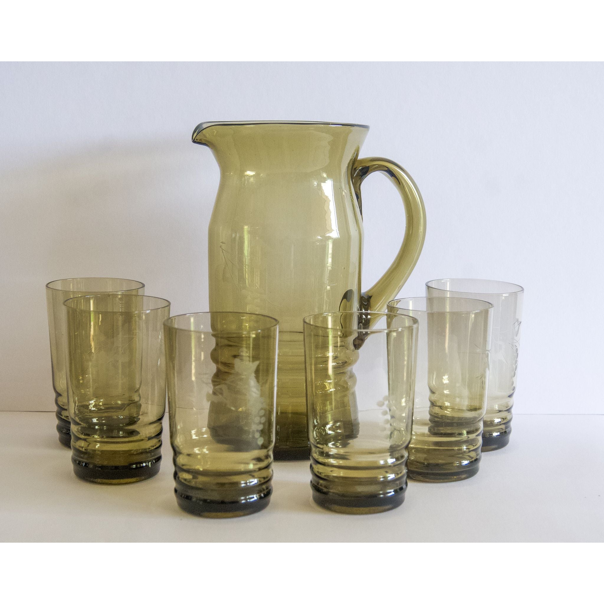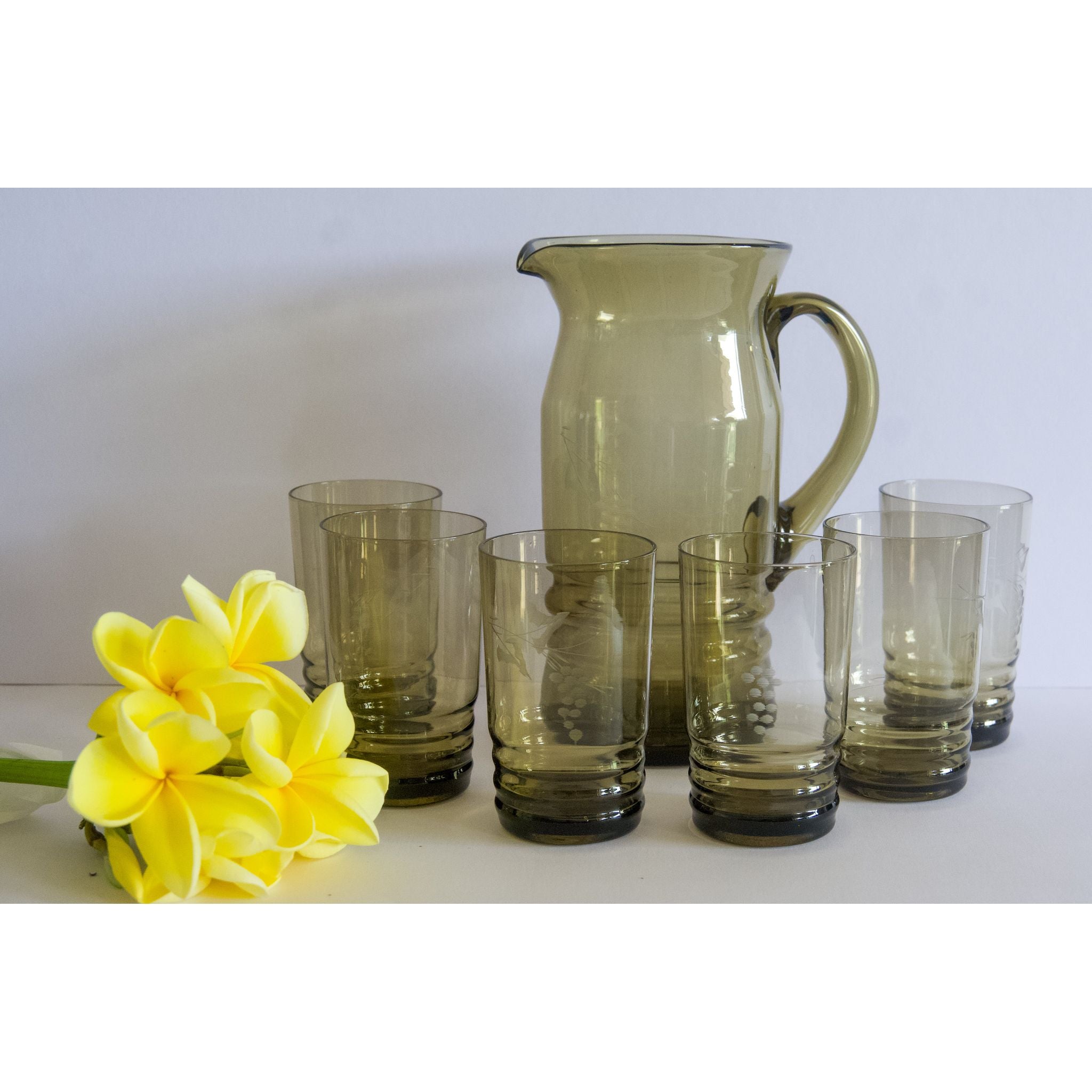 Elevate your table setting with this sophisticated Vintage Smokey Grey Water Set, featuring an exquisite grape design etching that captures timeless elegance. The smokey grey tones create a refined aesthetic that complements both classic and contemporary entertaining styles, while the delicate grape motif adds a touch of botanical charm. This versatile set is ideal for everyday dining or special occasions, offering the perfect balance of visual interest and understated luxury.