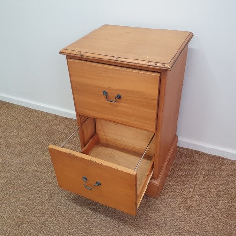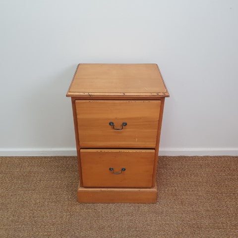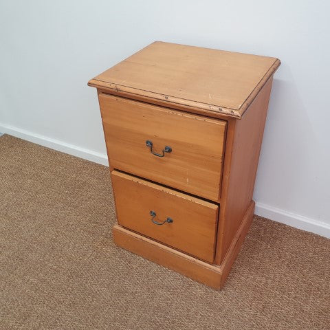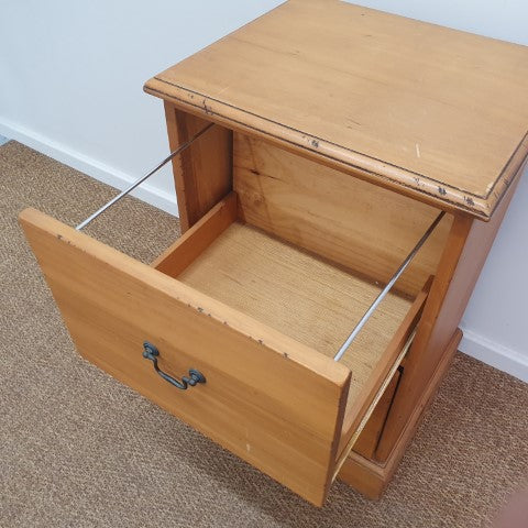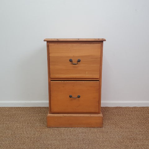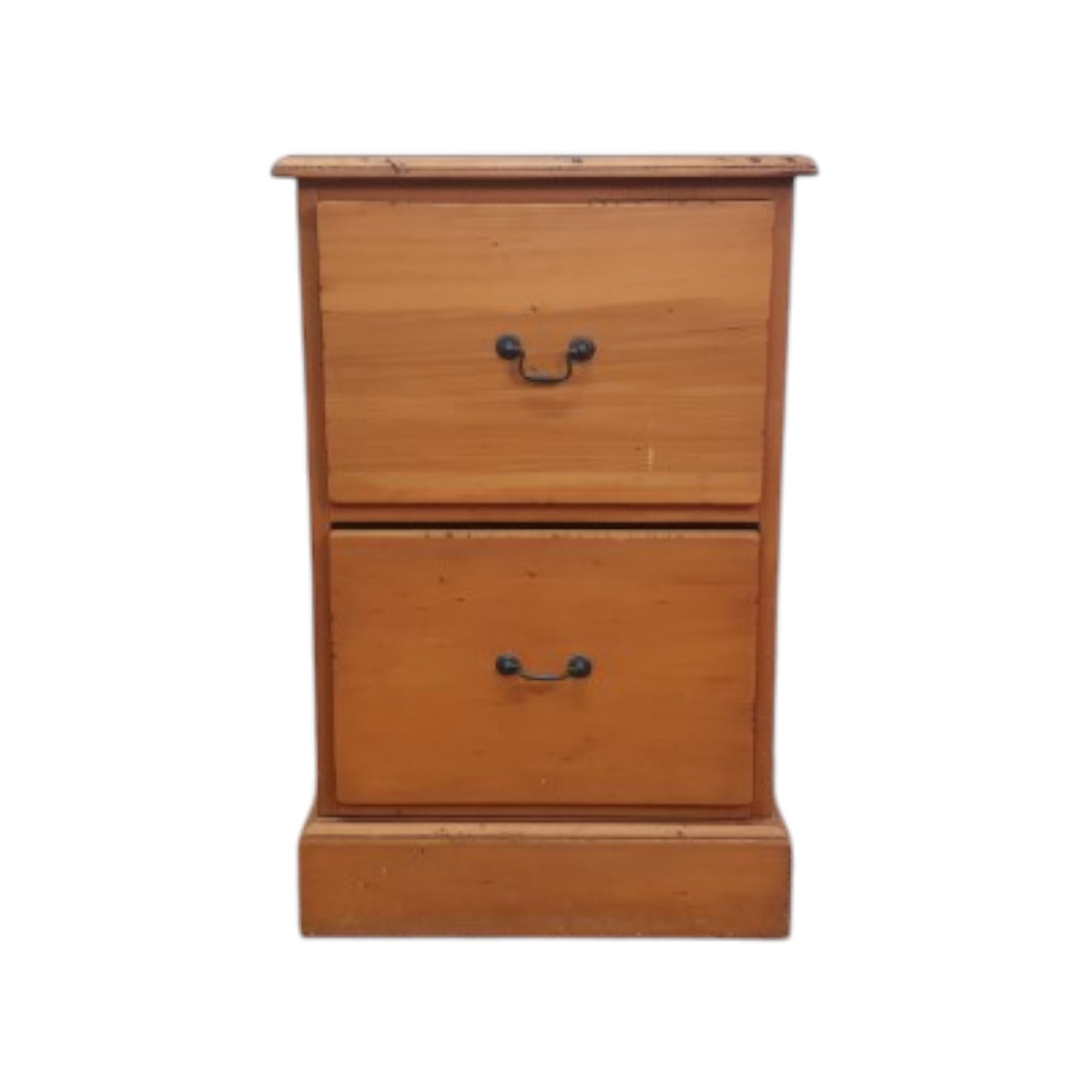 This vintage two-drawer filing cabinet stands at 82.5cm high. Its simple, clean design and warm timber tone give it an understated look that works well in home offices, living spaces, or studio settings. The classic two-drawer layout adds subtle character while keeping the piece visually balanced and easy to style.