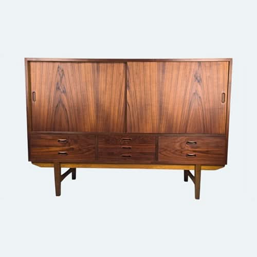 The low profile and tapered legs are other characteristics of Danish modern sideboards, giving a light and airy feel.
