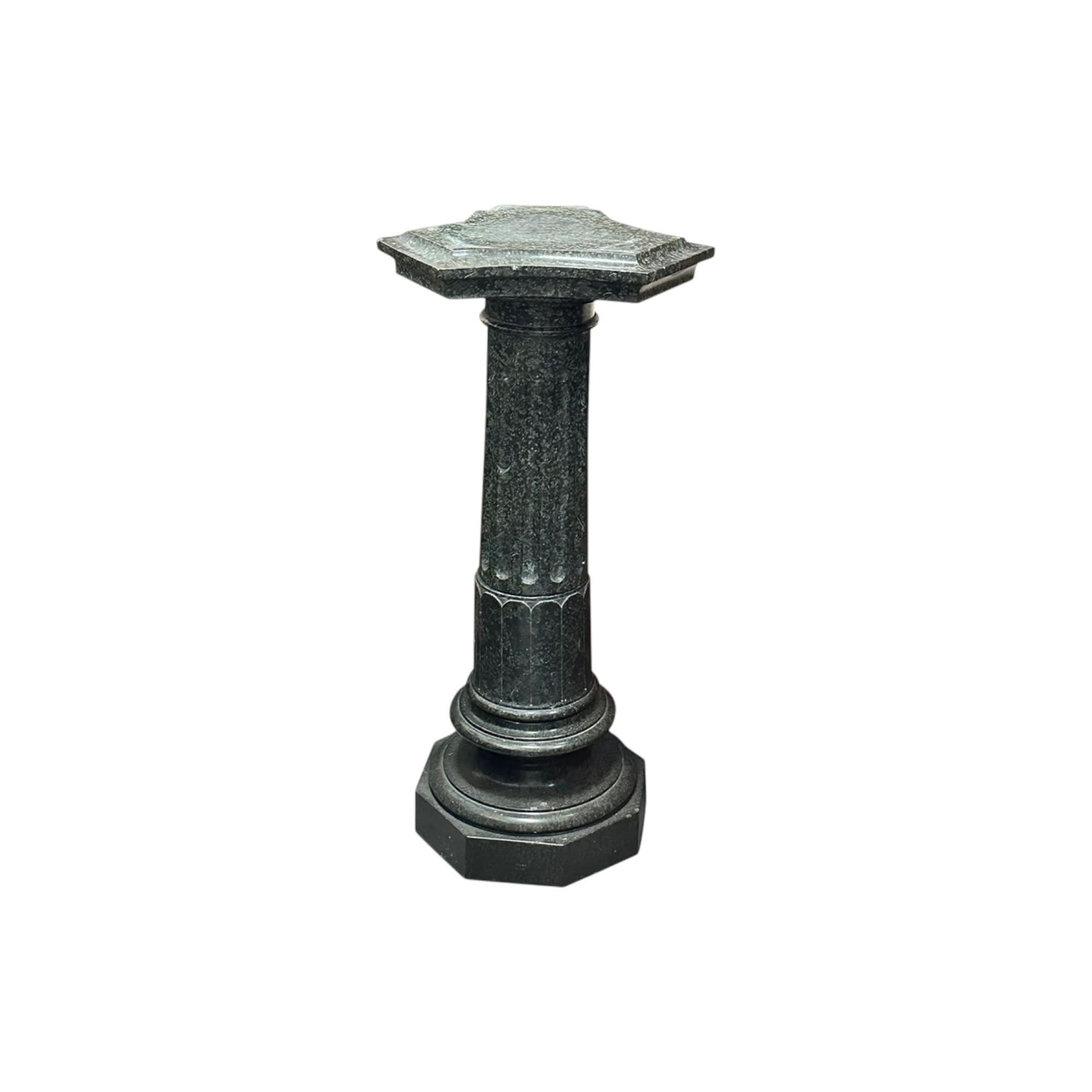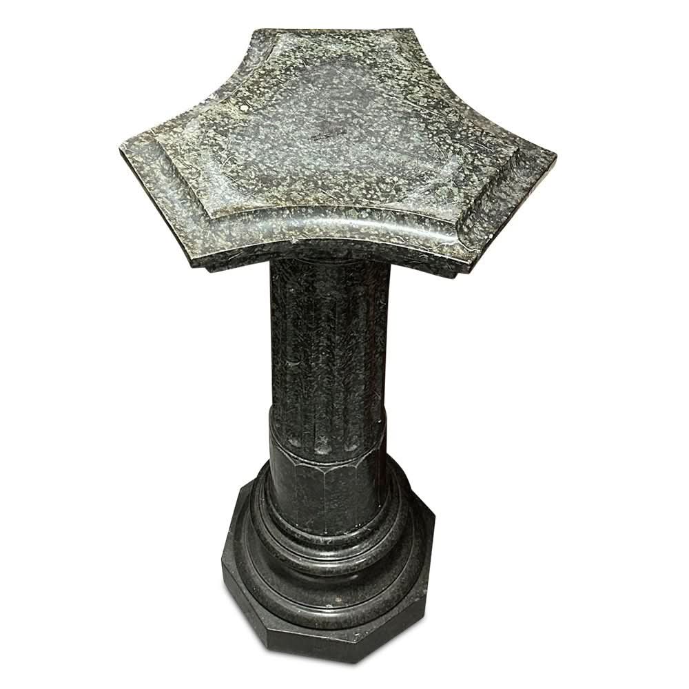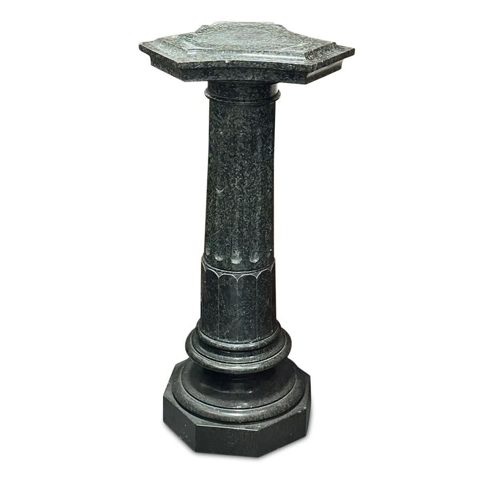 This pedestal features a tri top, which is a lovely touch for showing off a prized bronze figure.