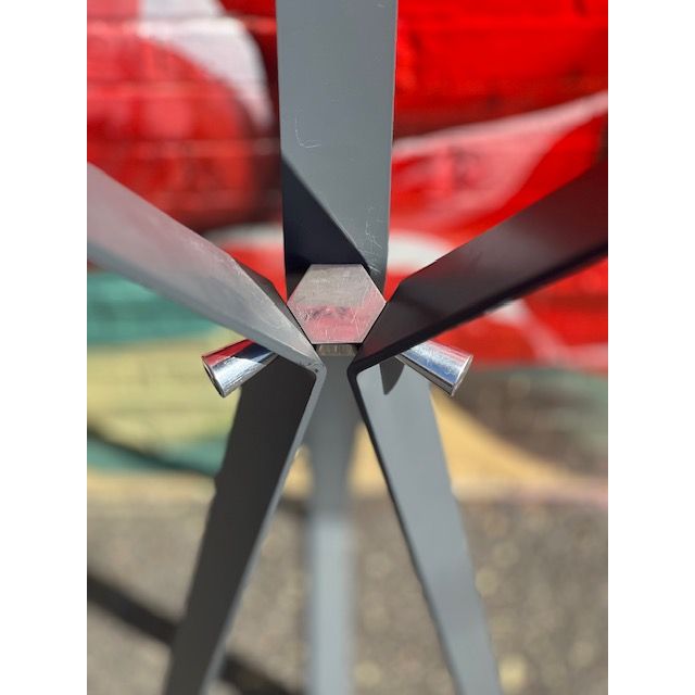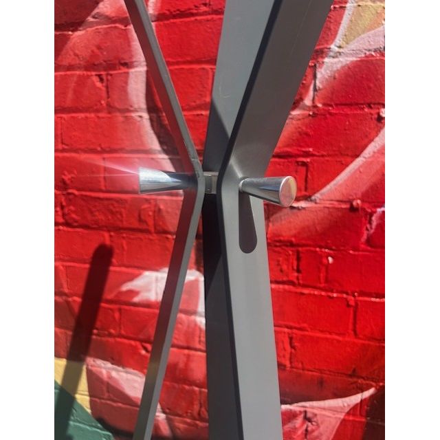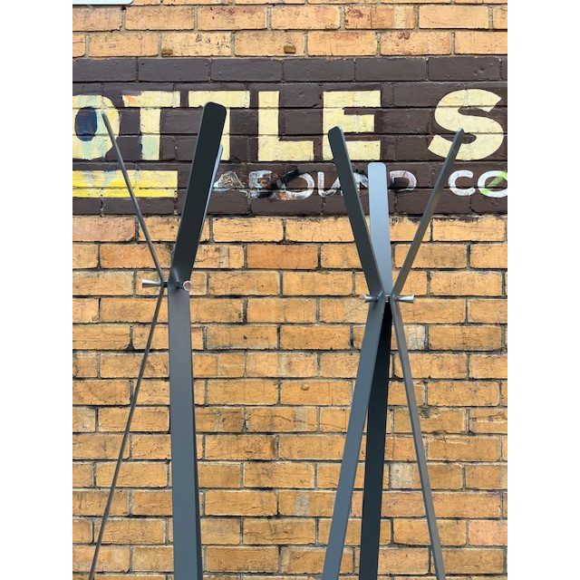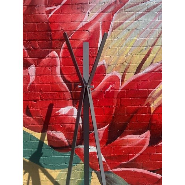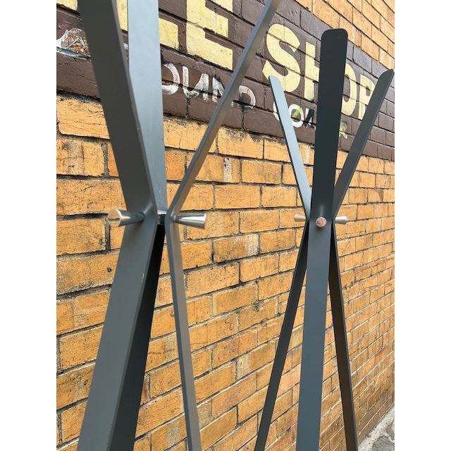 A coat stand that is architecturally elegant, but also functional and very stable. The subtle detail on the base joins the uprights in a harmonious way.