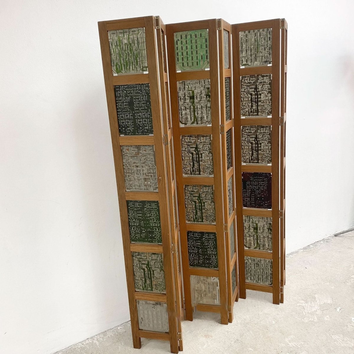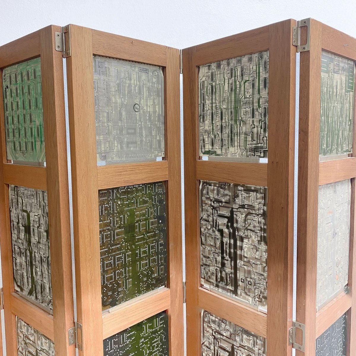 Fabulous Mid Century room divider made from solid wood and 'Hi-Tech' computer circuit boards.