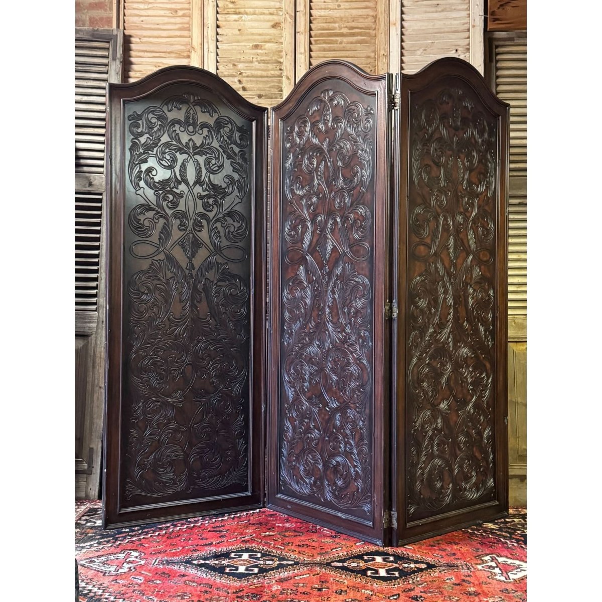 A beautiful vintage large carved timber screen / room divider. Very heavy / solid. Carvings to one side only. Minor marks as expected with vintage.