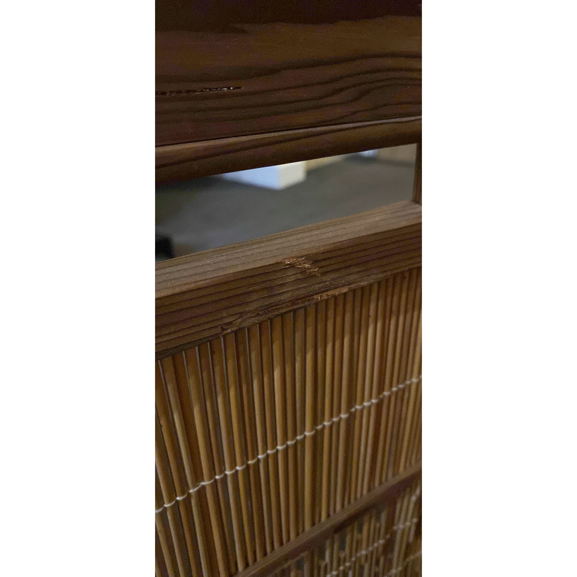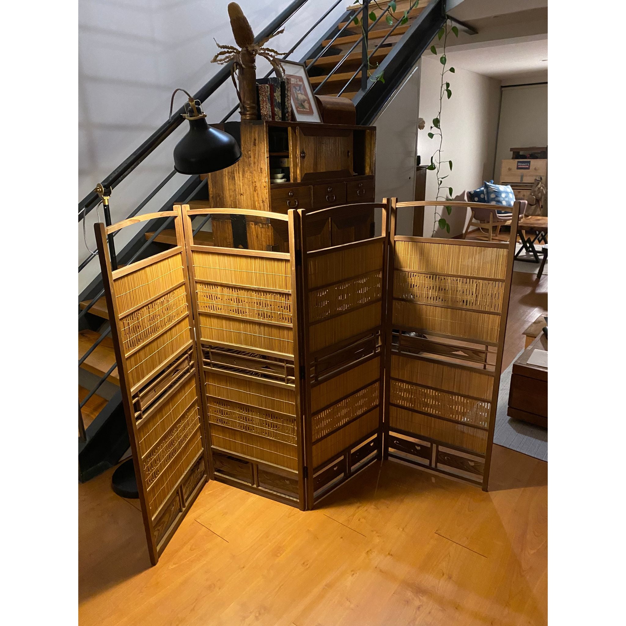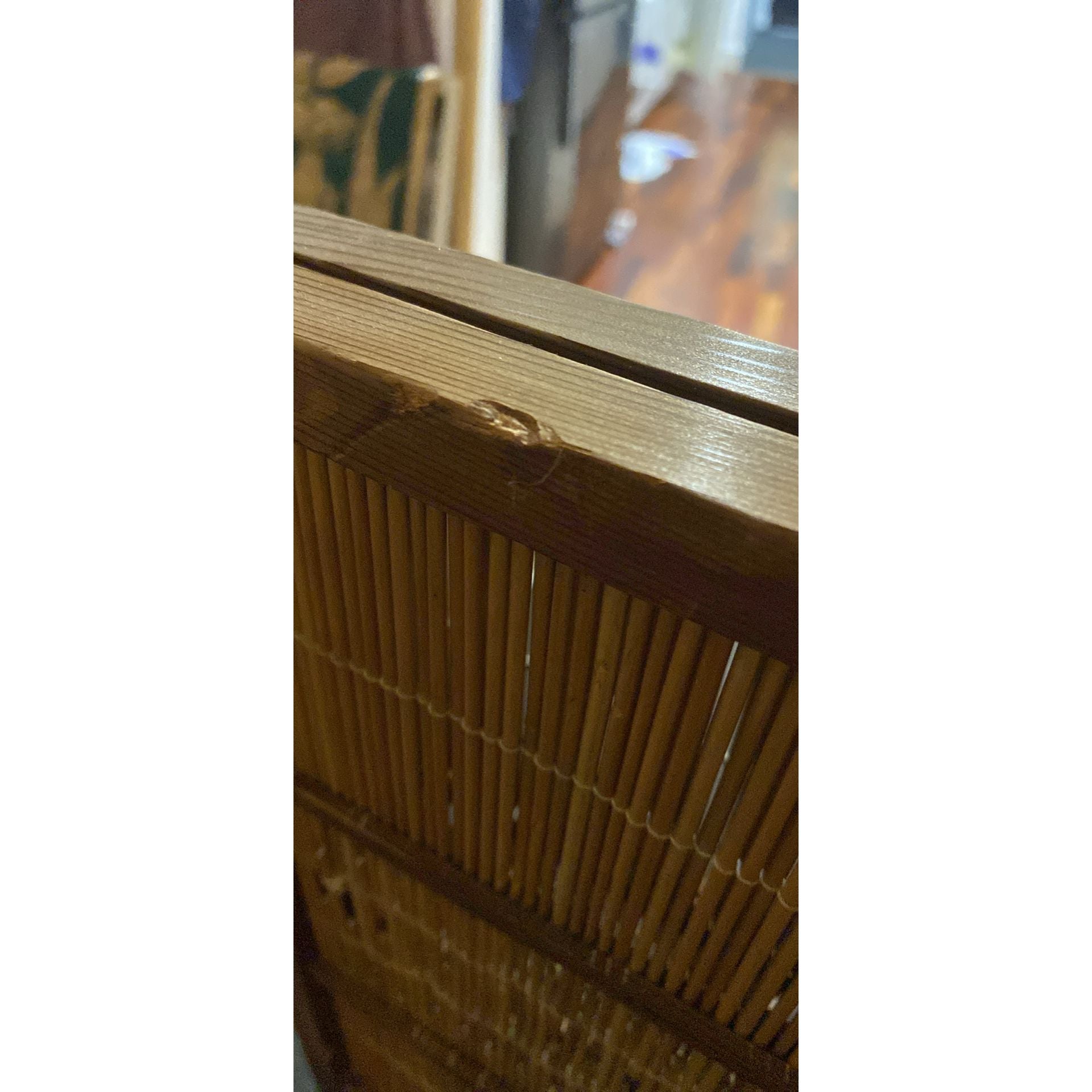 When I purchased the piece, it already had some fairly minor but visible damage to the wood frame (see example photos). The bamboo sections are in great condition. Generally in wonderful condition for something old.