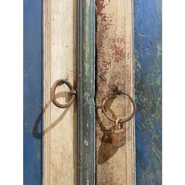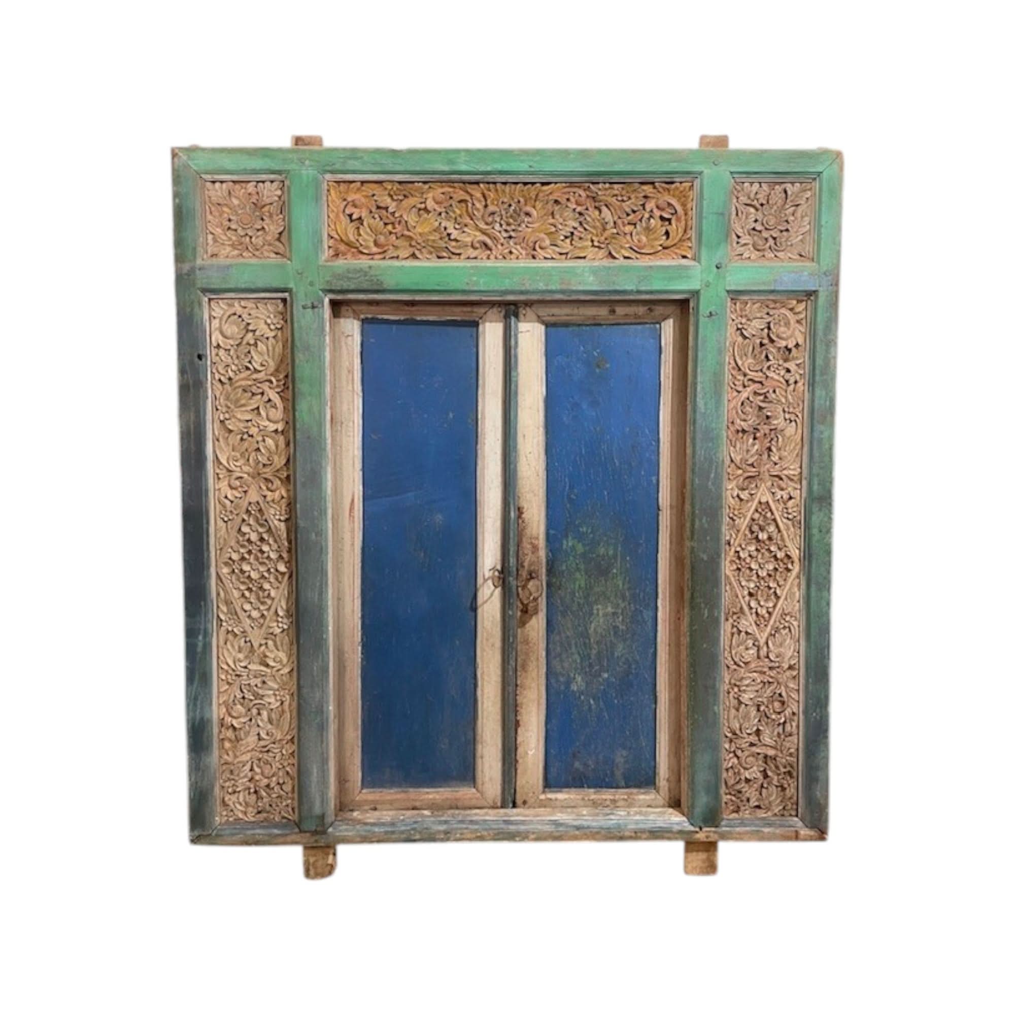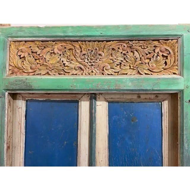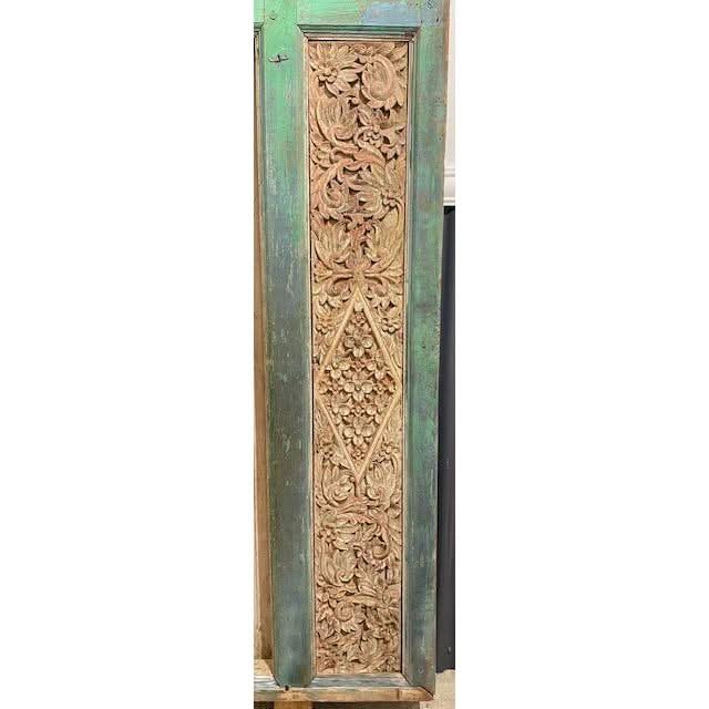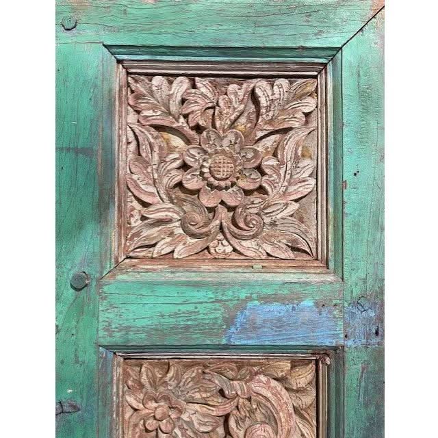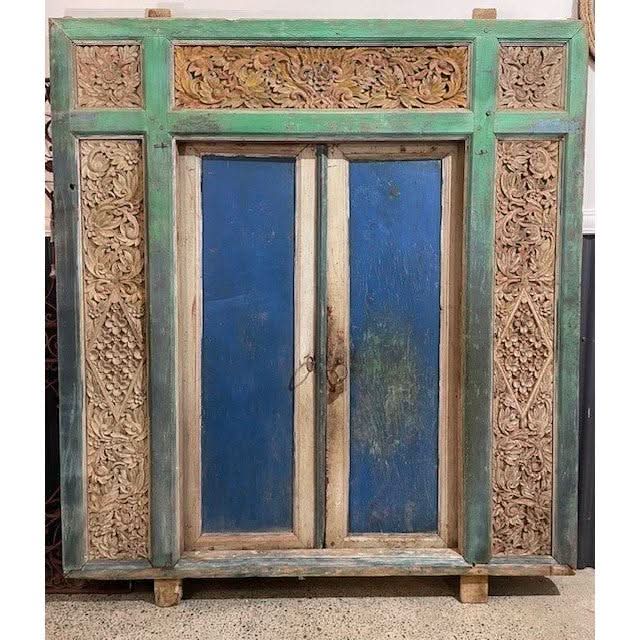 Indonesian Doors in intricately carved frame. Remnants of paint, pinned mortice and tenon joints with wrought iron hardware.