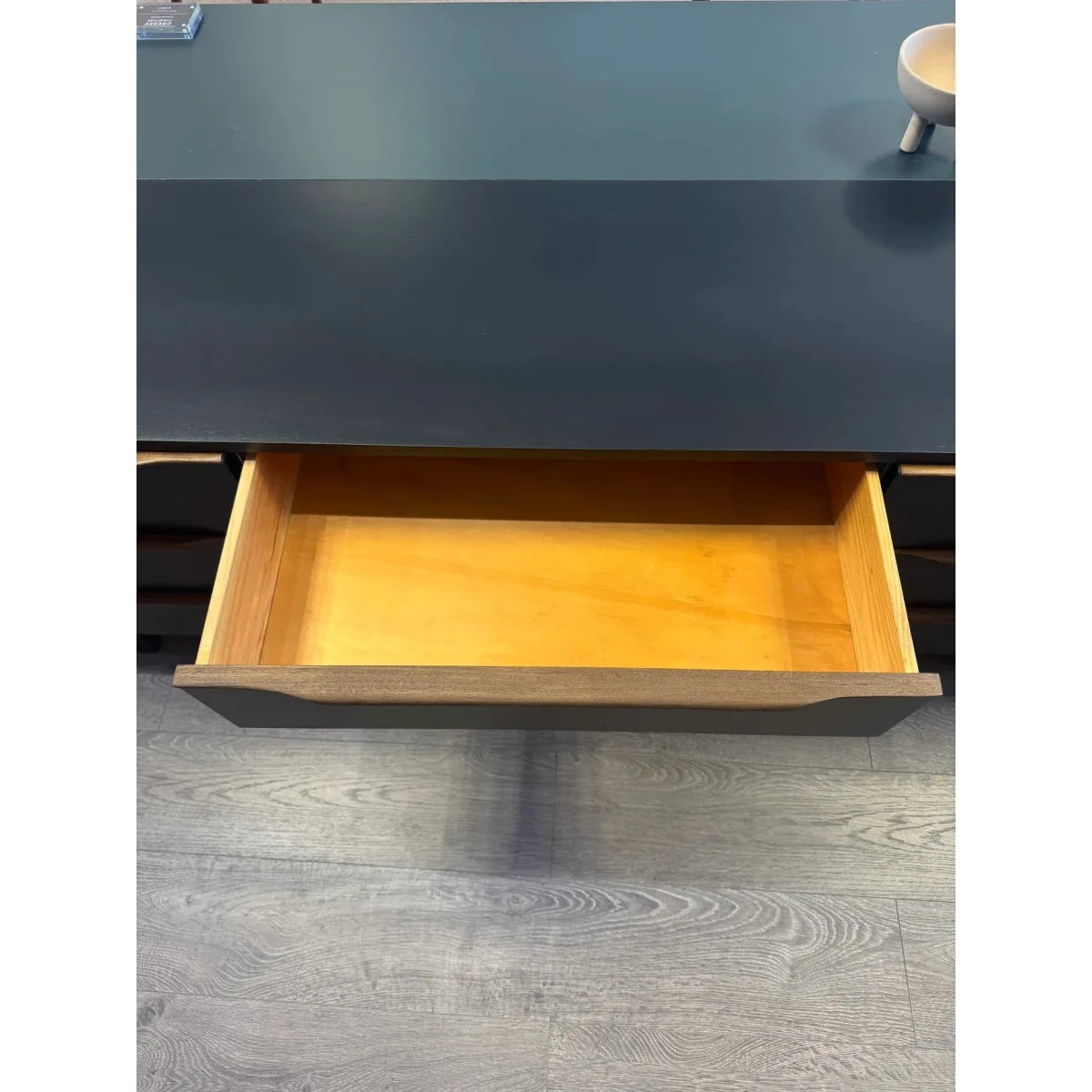 Made by ‘Alrob Furniture’ this 9 drawer low-line dresser is sleek with it’s mid century shape, has been transformed into a contemporary design statement with a dark moody blue hue. Alrob Furniture was a well known mid century Australian brand, renowned for their well made pieces that have stood the test of time.