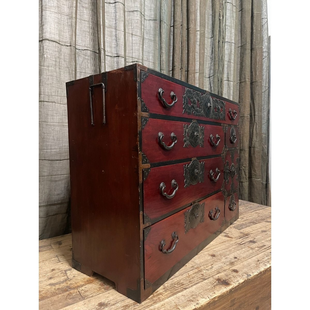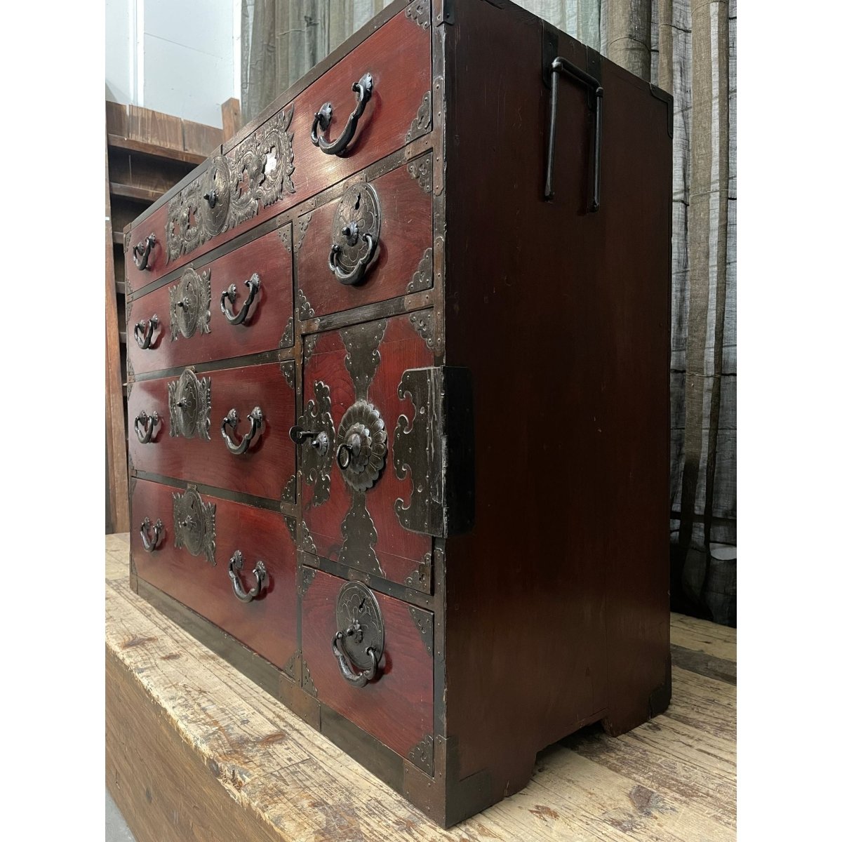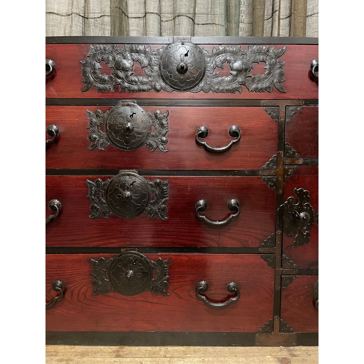 An antique Japanese chest of drawers from Sendai prefecture, originally designed for the storage of kimono with a date of 1900, Meiji period.