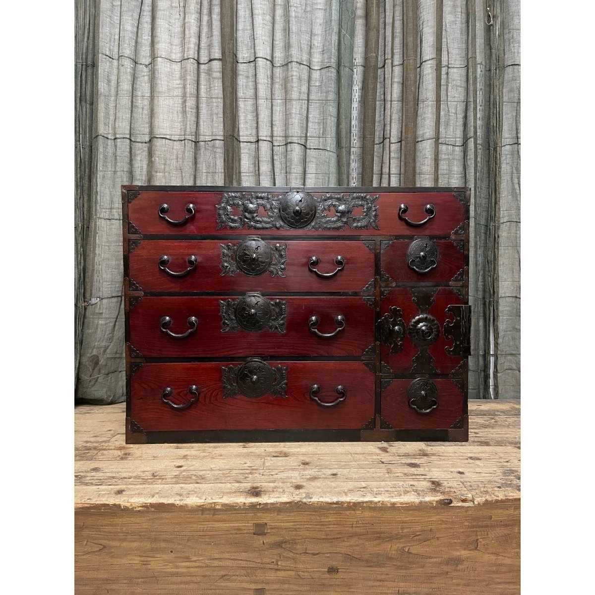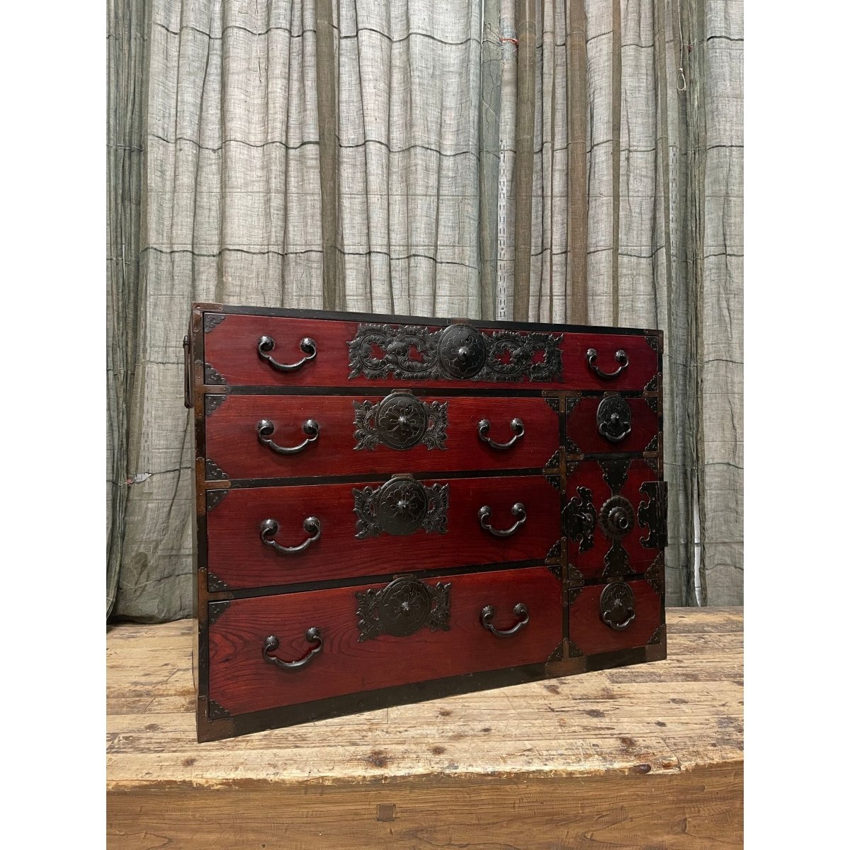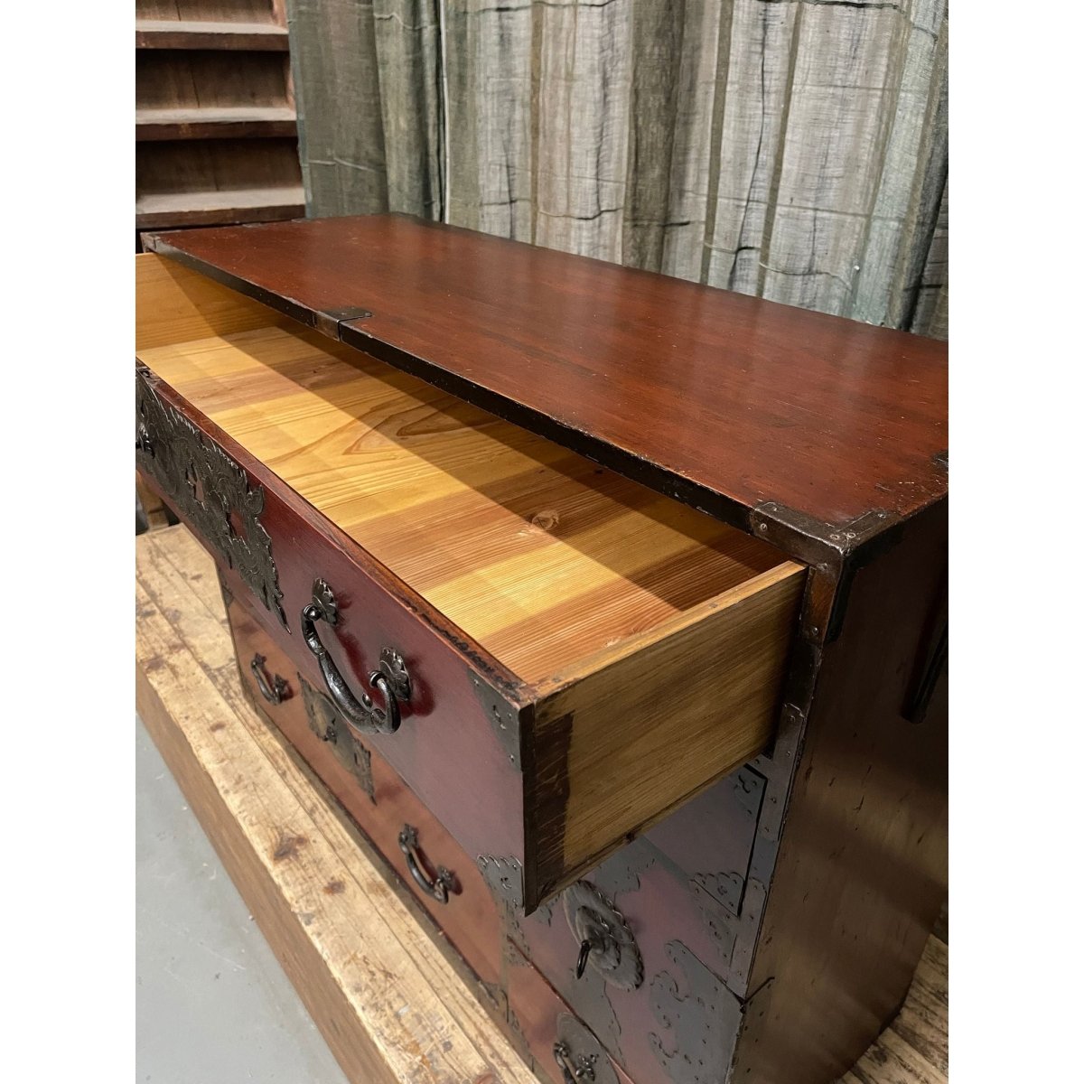 An antique Japanese chest of drawers from Sendai prefecture, originally designed for the storage of kimono with a date of 1900, Meiji period.