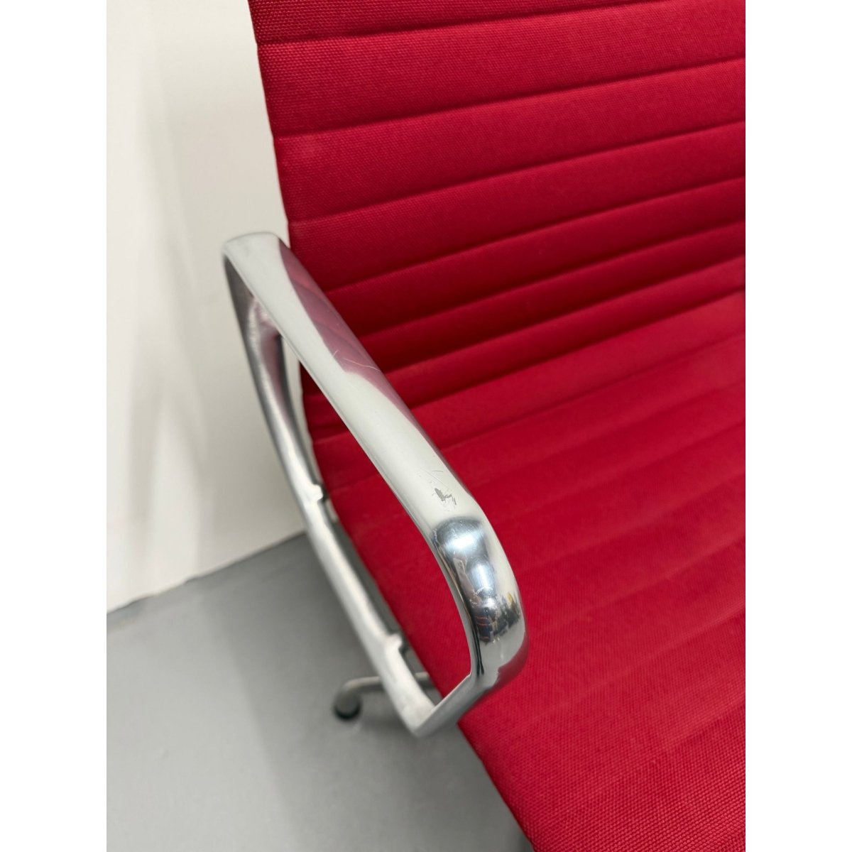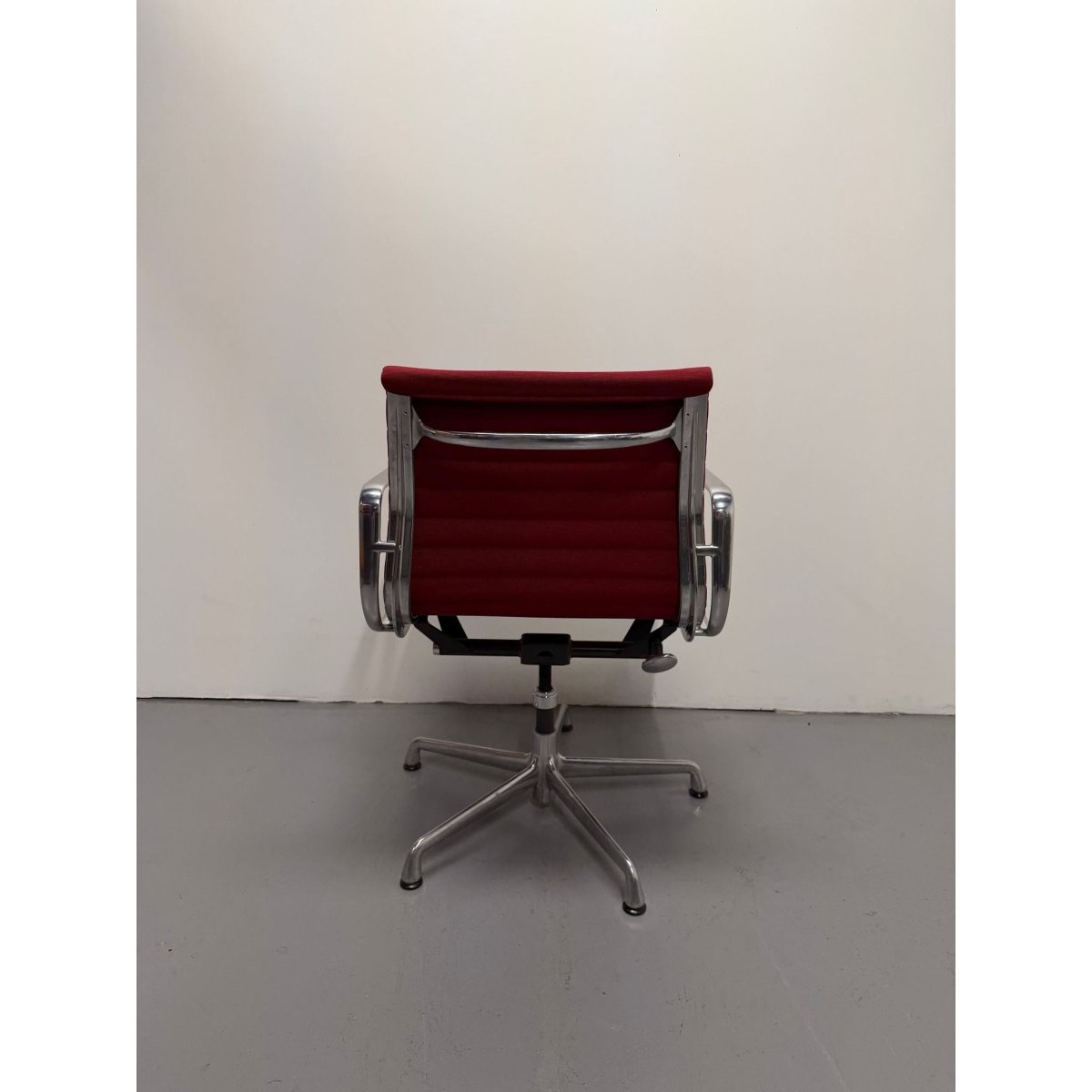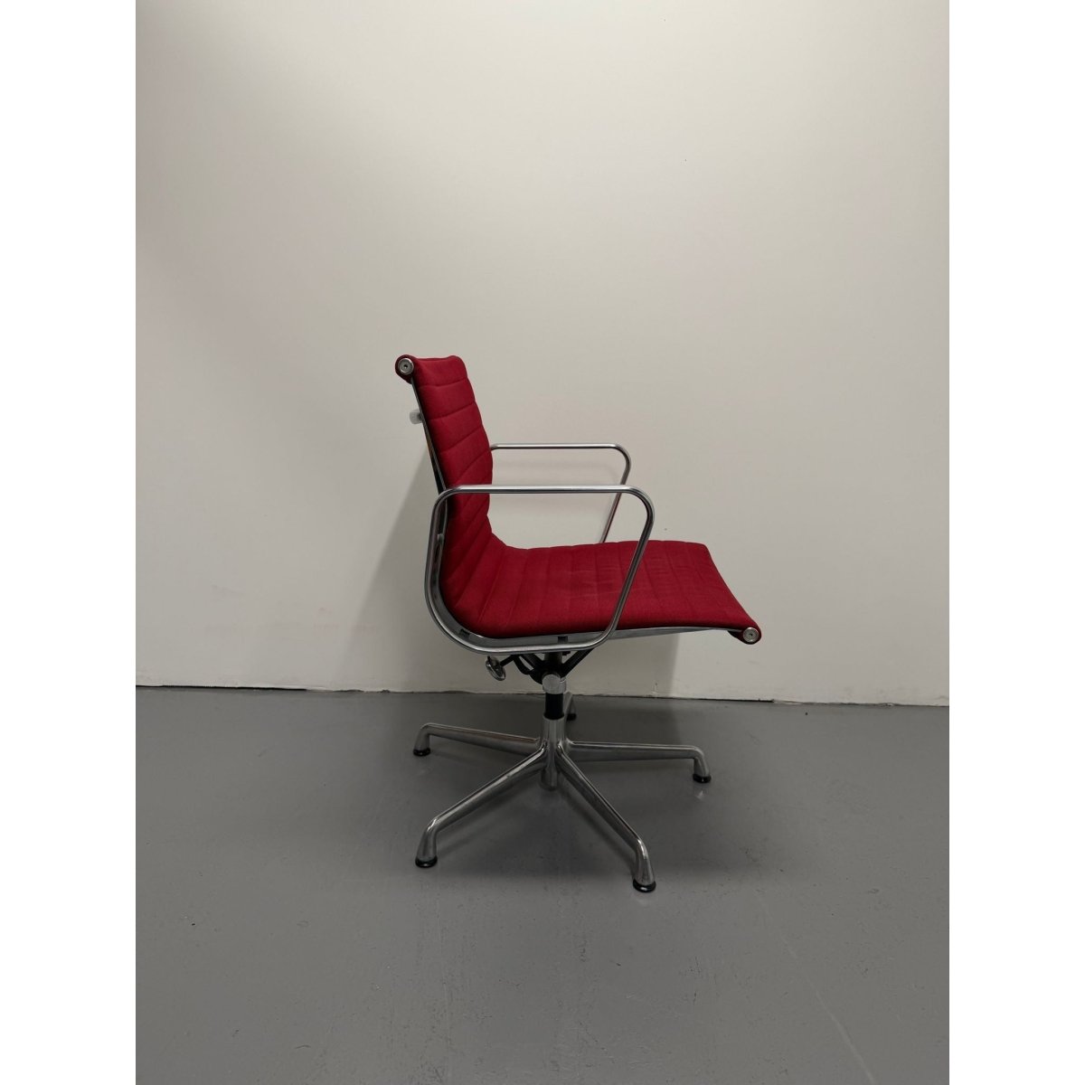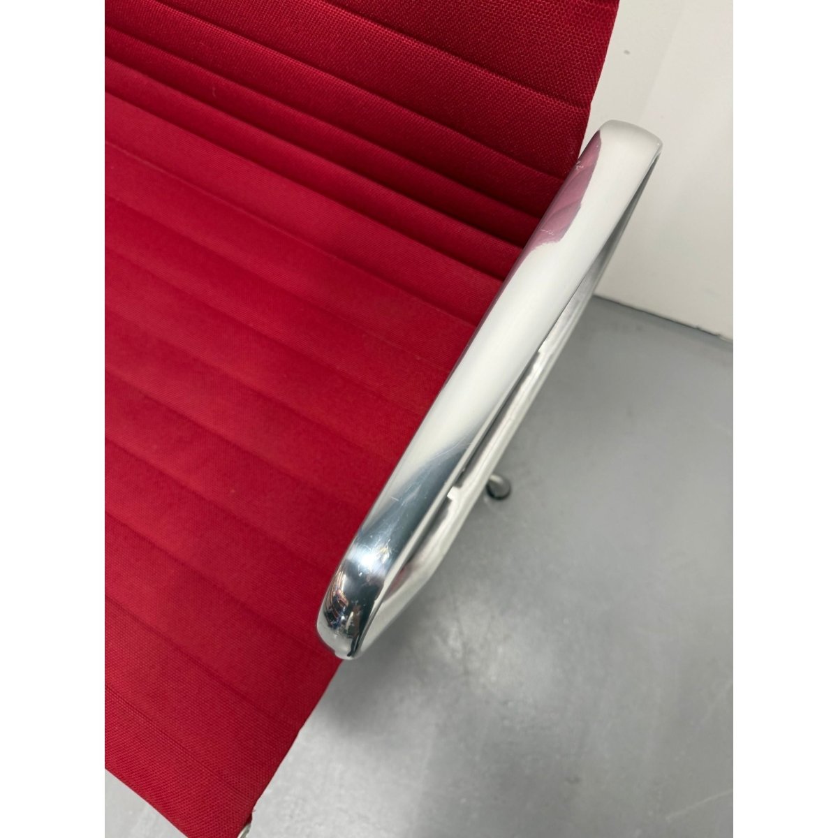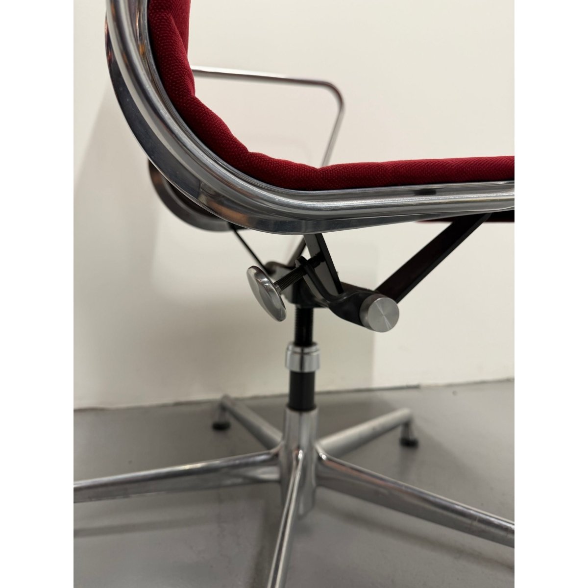 Finished in a deep red fabric upholstery with a polished aluminium frame, this piece brings mid-century sophistication into a modern workspace. Designed by Charles & Ray Eames, the Aluminum Group series is one of the most iconic chair collections of the last century.