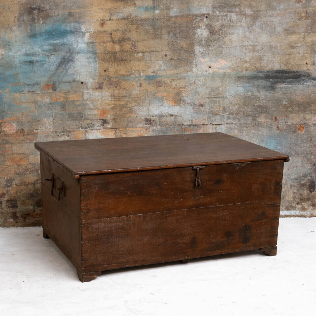 Rich in history and character, this Antique Indian wooden chest is a beautiful example of traditional storage once used in Indian homes to store textiles, clothing, valuables, or household essentials. Crafted from solid timber, this piece has stood the test of time and carries the unmistakable patina that only age and use can create.