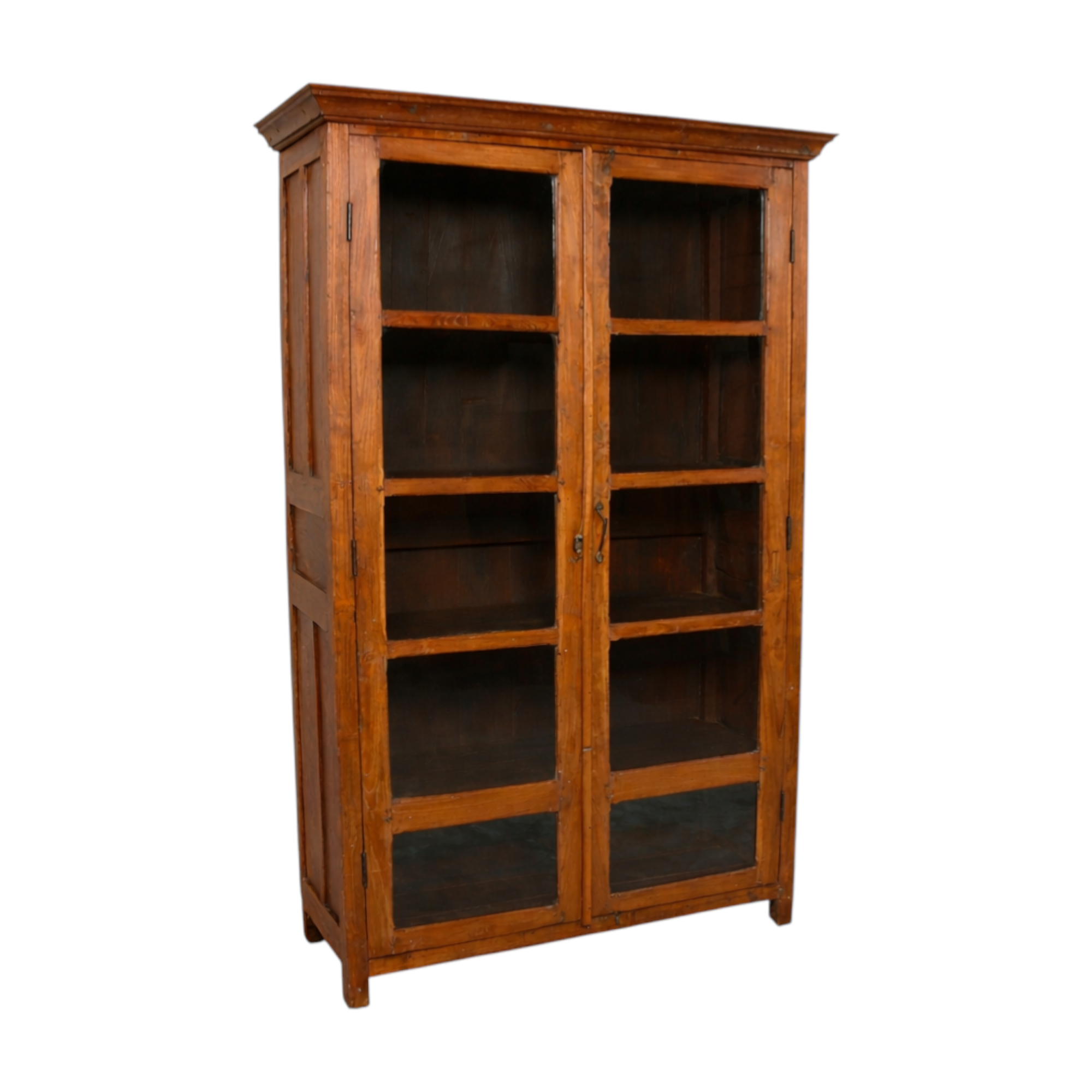 This vintage Indian almirah is a timeless storage piece rich in character and craftsmanship. Traditionally used in Indian homes to store clothing, linens and treasured household items, almirahs were an essential part of daily life. Crafted from solid timber, this piece showcases beautiful warm wood tones, visible grain detail and a naturally aged patina developed over decades of use. Its classic proportions and simple crown detailing give it a refined yet rustic presence.