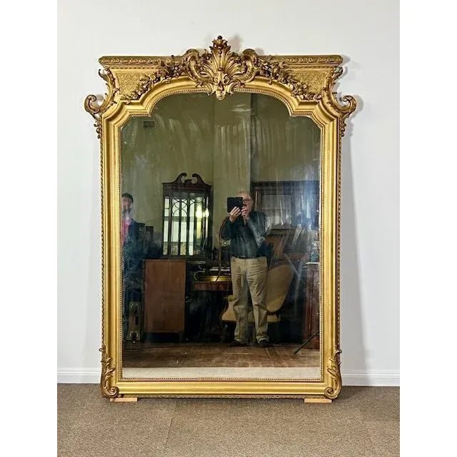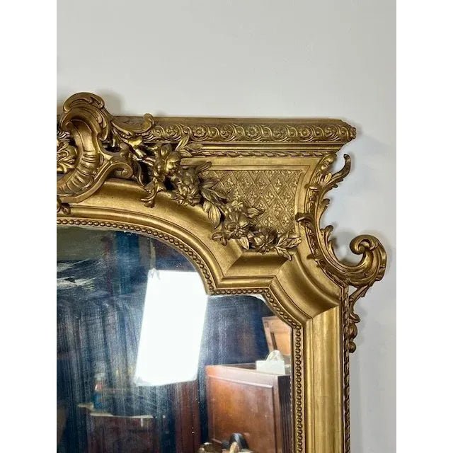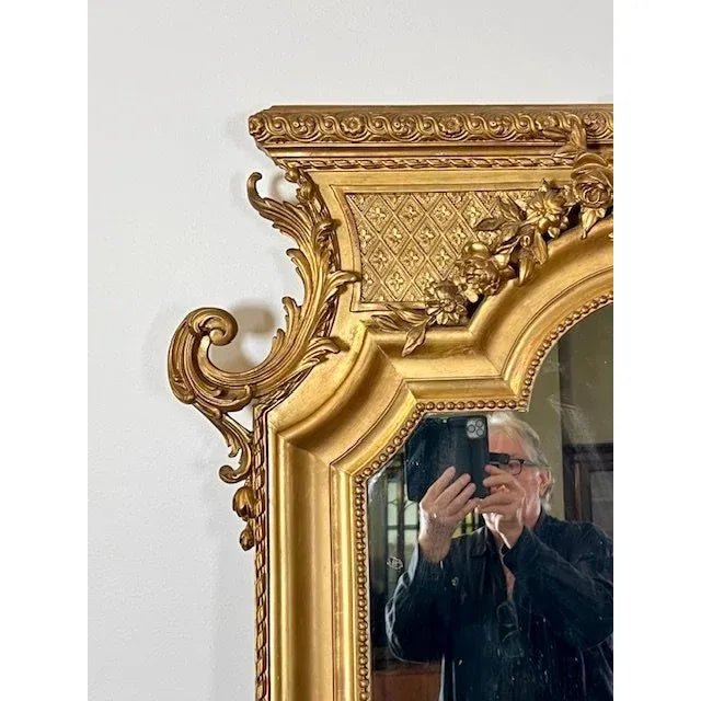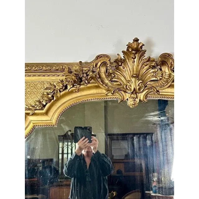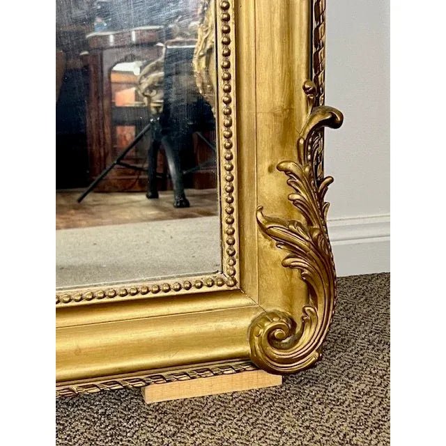 This is a most impressive genuine antique French last quarter of the !9th century gilt framed mirror frame with beveled silver plate Over Mantle Mirror made in the Napoleon III era and having both Louis XV and Louis XVI influences. Made in the Paris area circa 1865