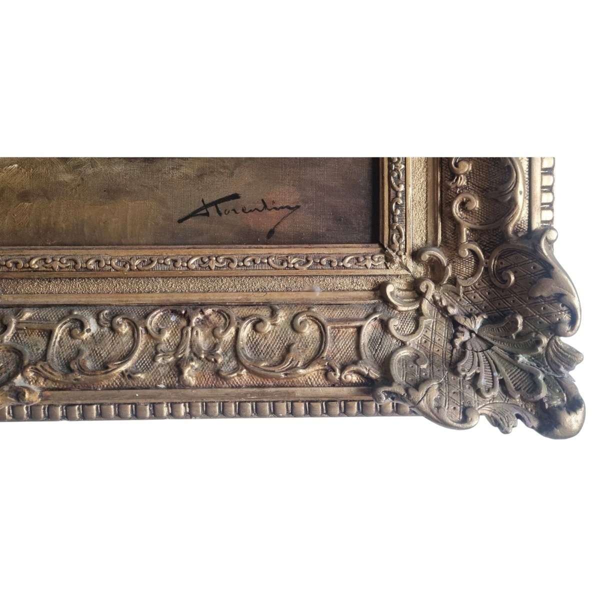 Oil on canvas signed. Framed in a lovely antique French gilt frame