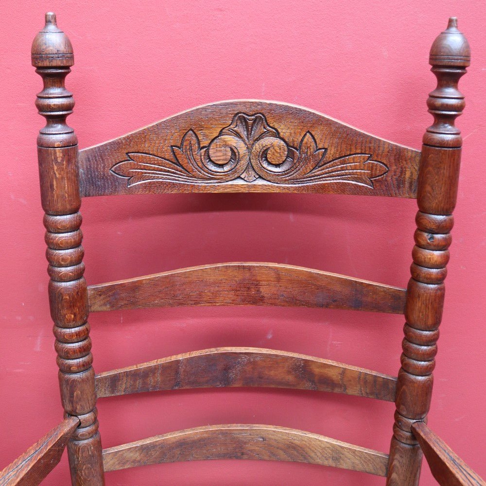 Stock No: 12692 Circa: 1940 Measurements: Carvers x 2 - 110 cm high x 60 cm wide x 52 cm deep x 46 cm from the floor to the seat. Chairs x 4 - 110 cm high x 49 cm wide x 42 cm deep x 46 cm from the floor to the seat. Condition: Excellent, cleaned, waxed, polished and ready for immediate use.