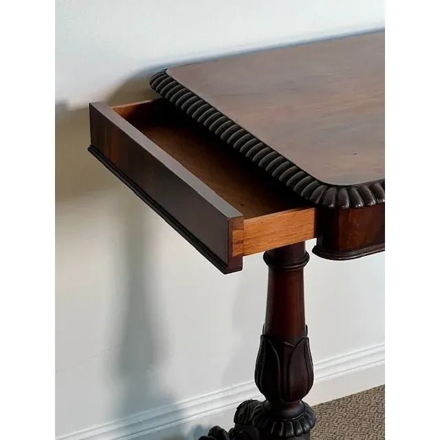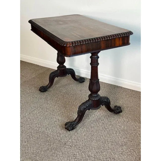This is a beautiful and very high quality example of a genuine antique English George IV - William IV circa 1830 Side Table - Centre Table - Writing Table superbly made and carved embellished by craftsmen from exotic prestigious imported Central American Rosewood. of excellent figuring.