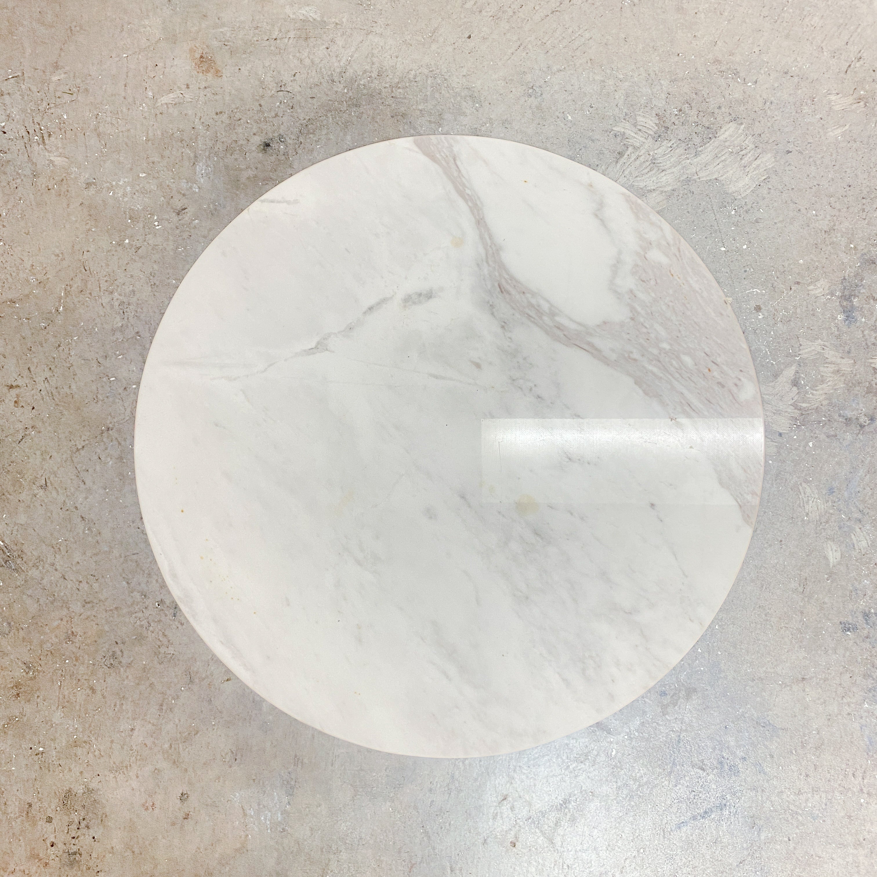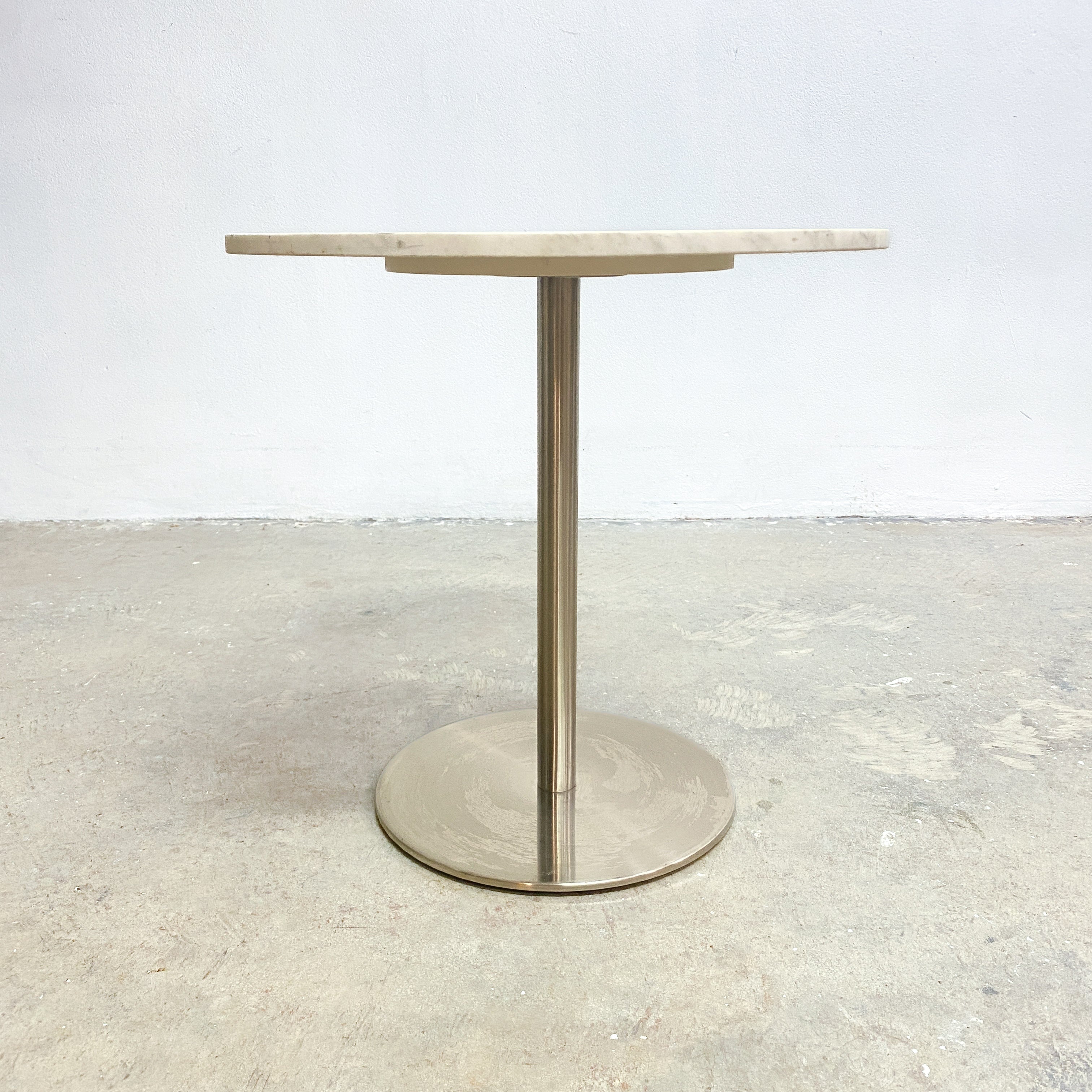 Beautiful marble top contemporary minimalist side table with stainless steel base.