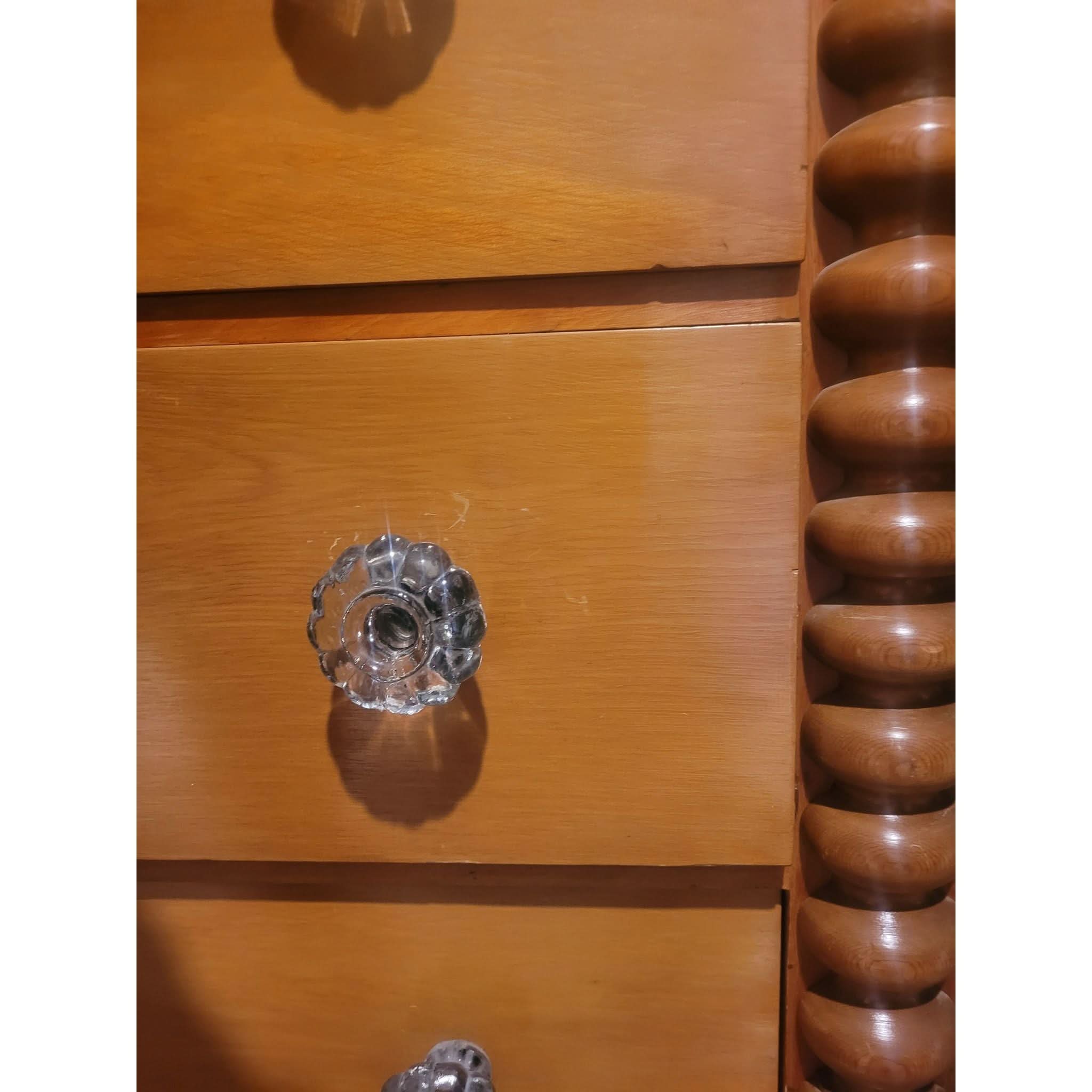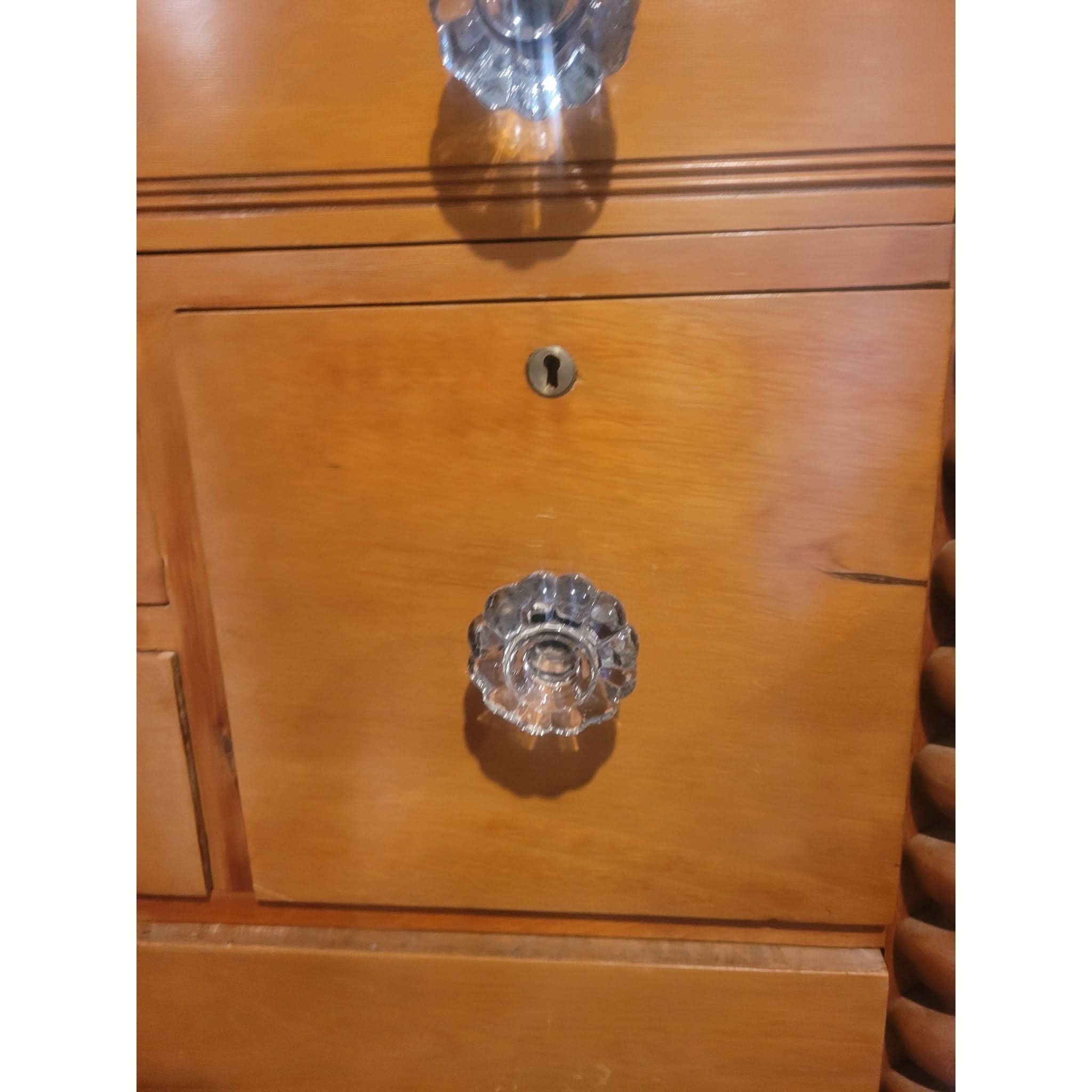 Near perfect original condition - has some minor staining to rhs top lovely golden patina finish . Period glass knobs