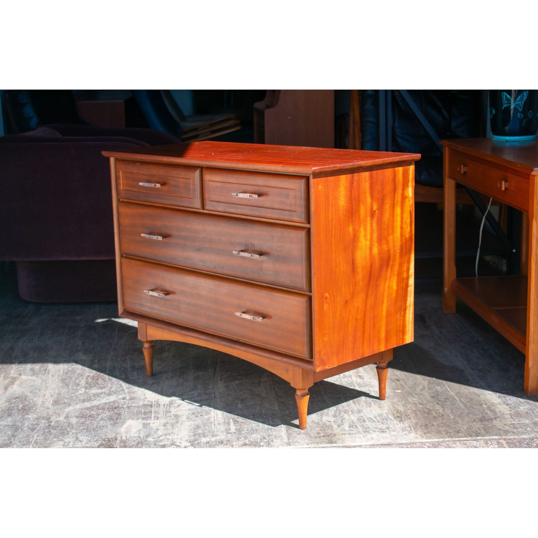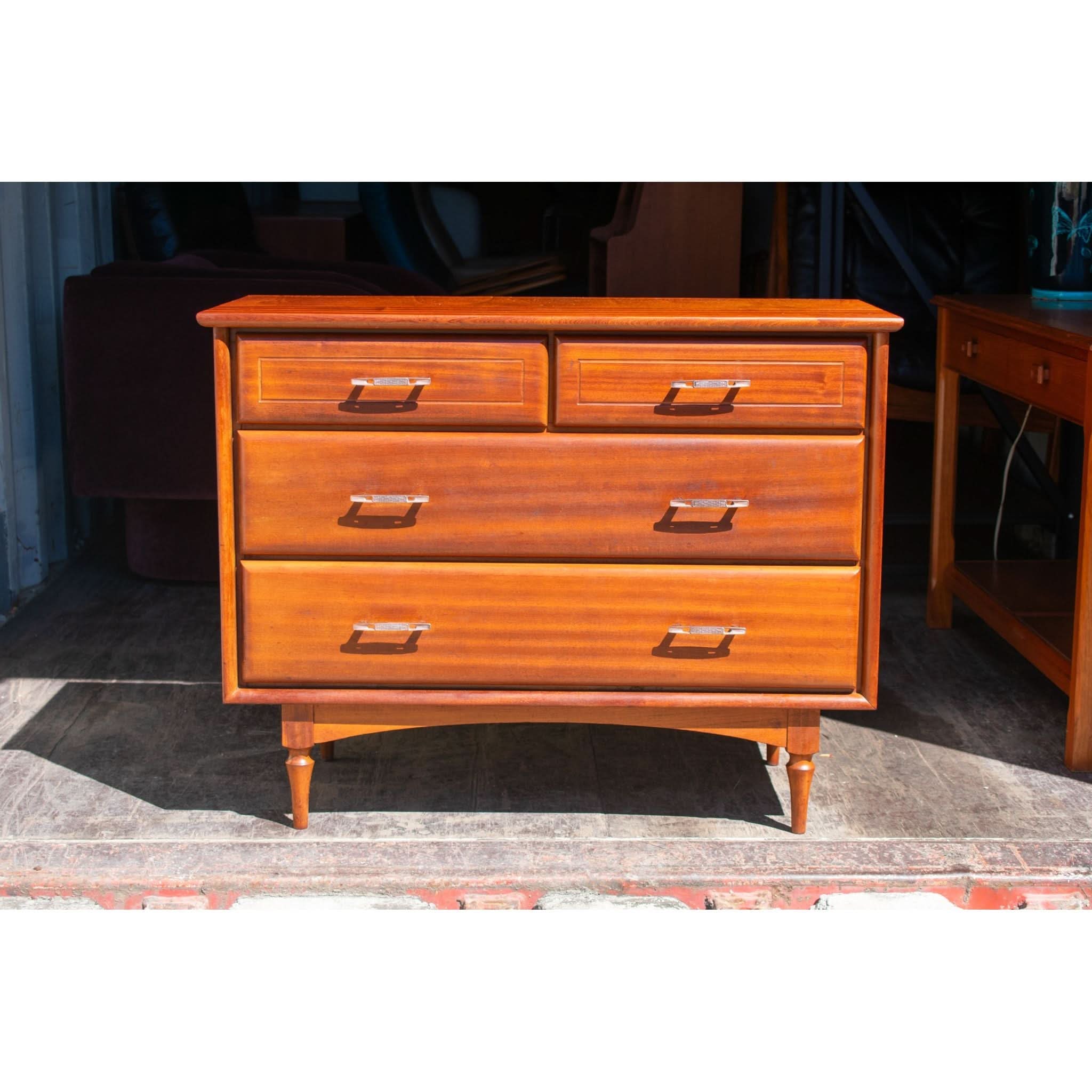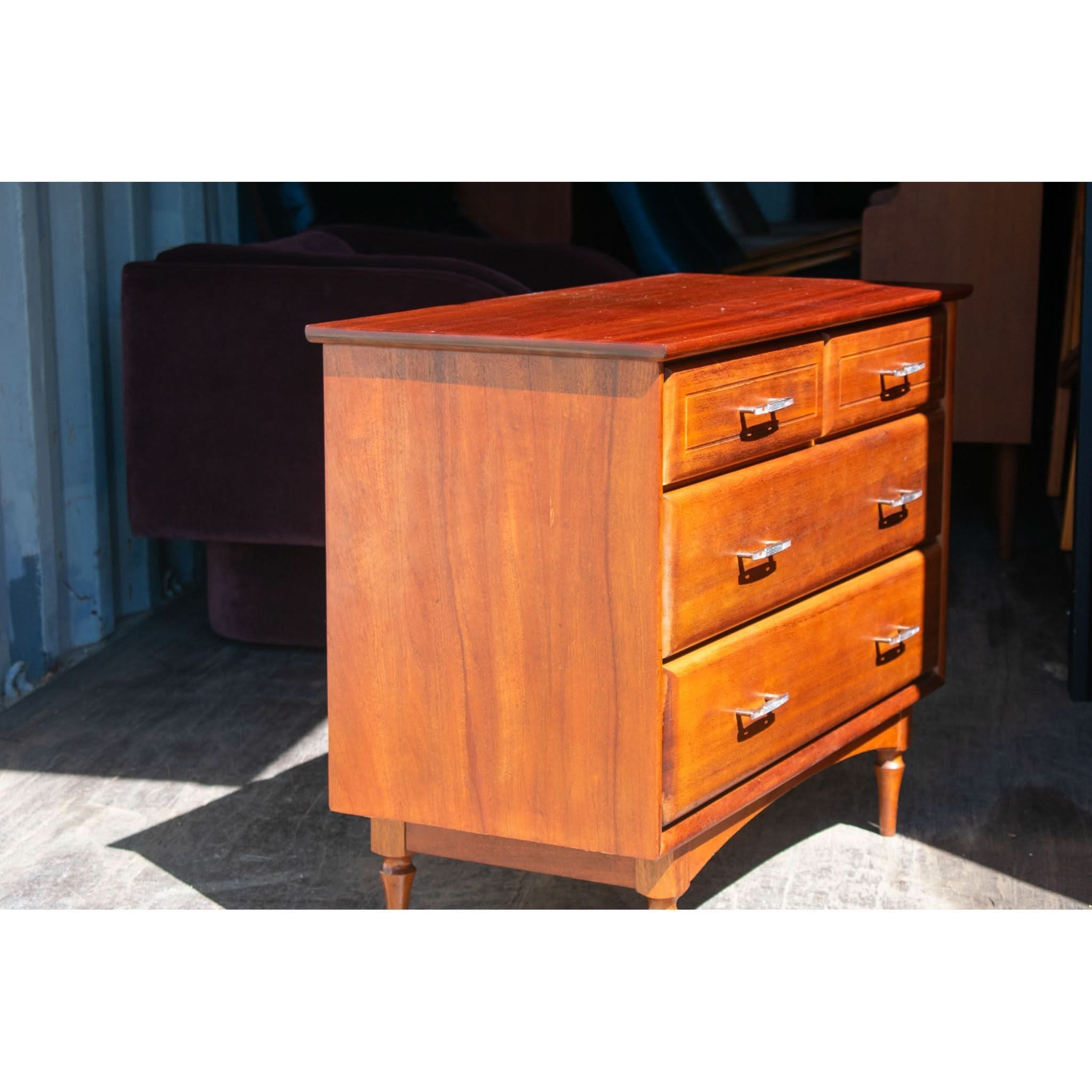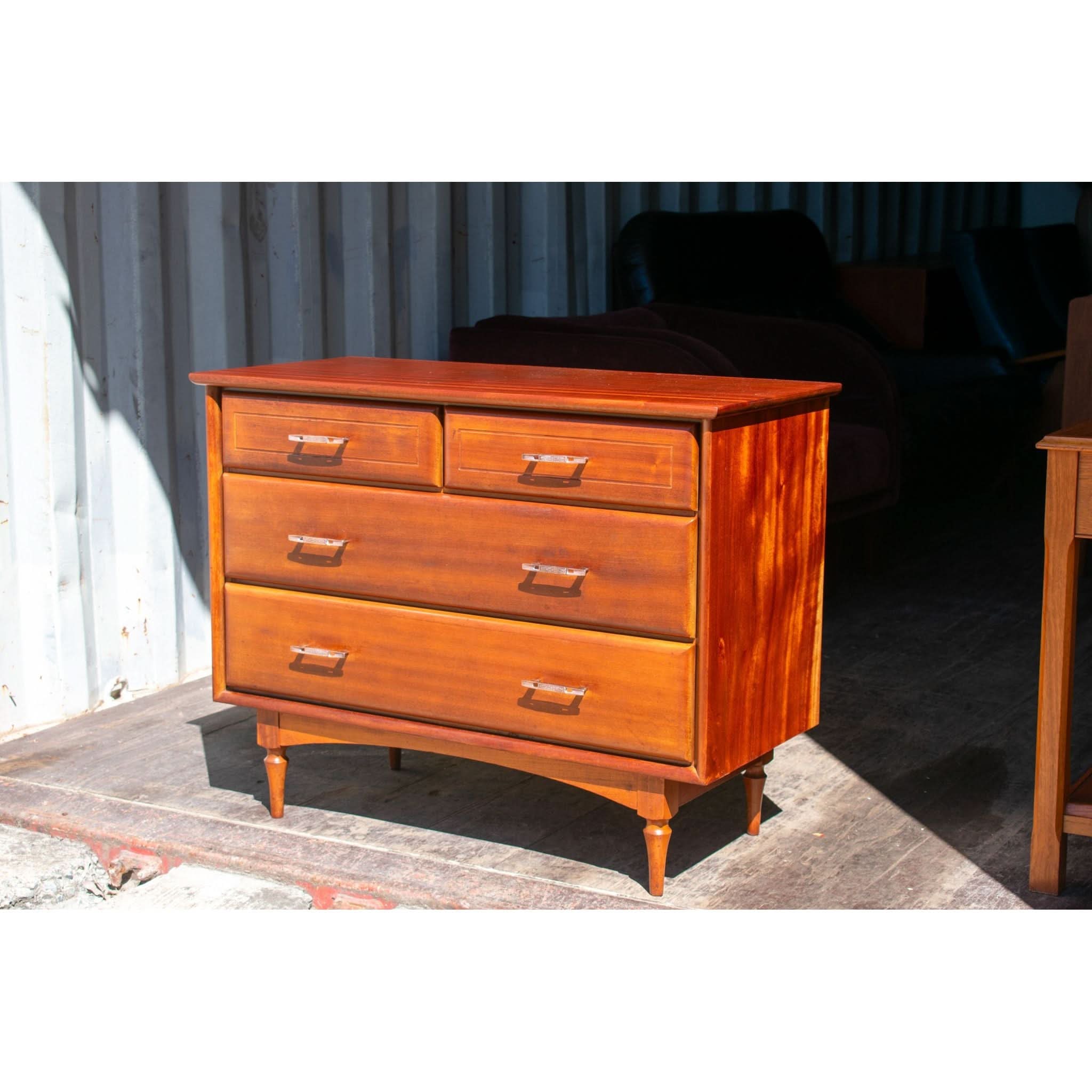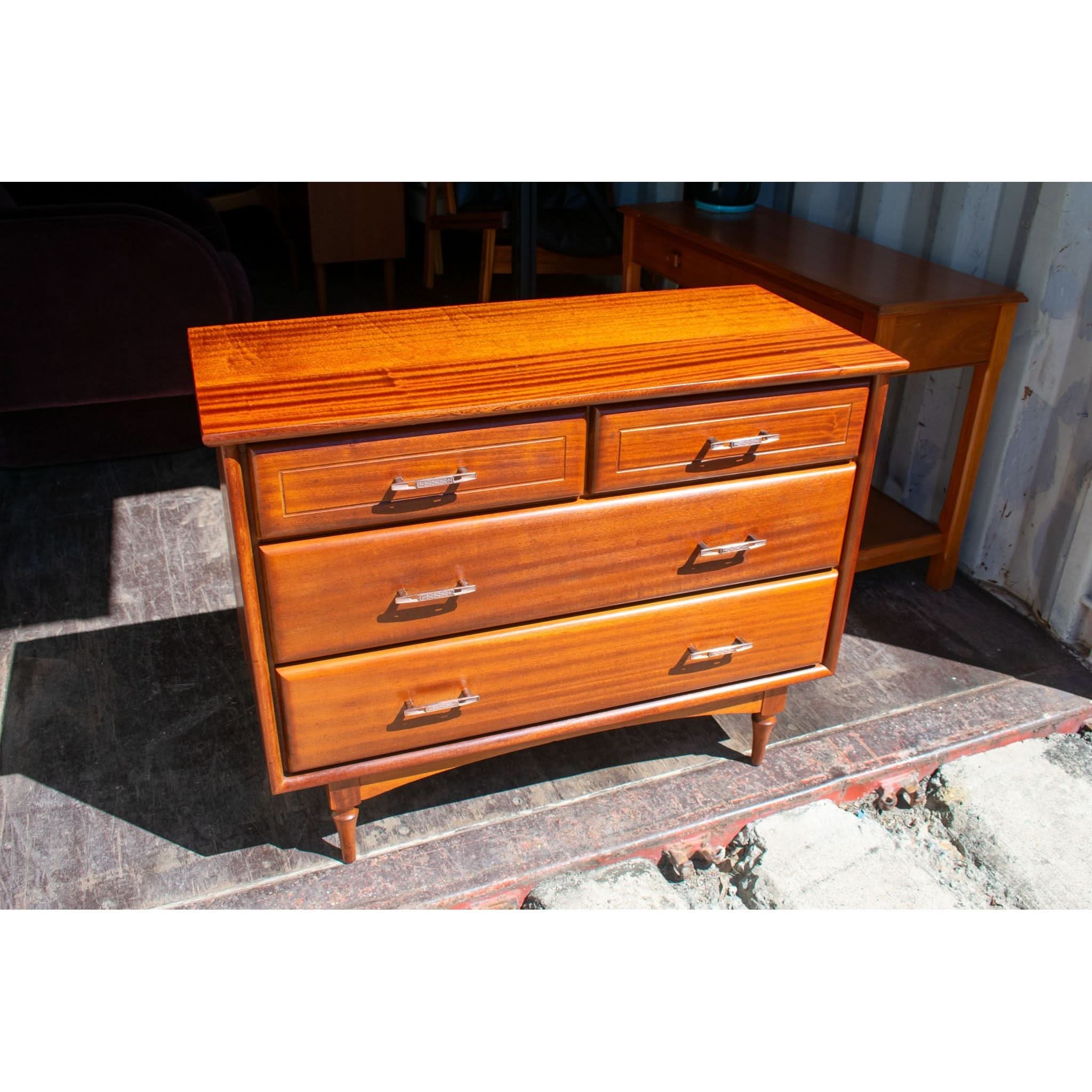 A refined mid-century chest featuring four generous drawers and classic tapered legs, ideal for use as a bedroom piece or compact storage unit. The standout feature is a full set of original bronze handles, each clearly labelled by Lincoln Turner of New Zealand—a rare and collectible detail that confirms the hardware’s provenance.