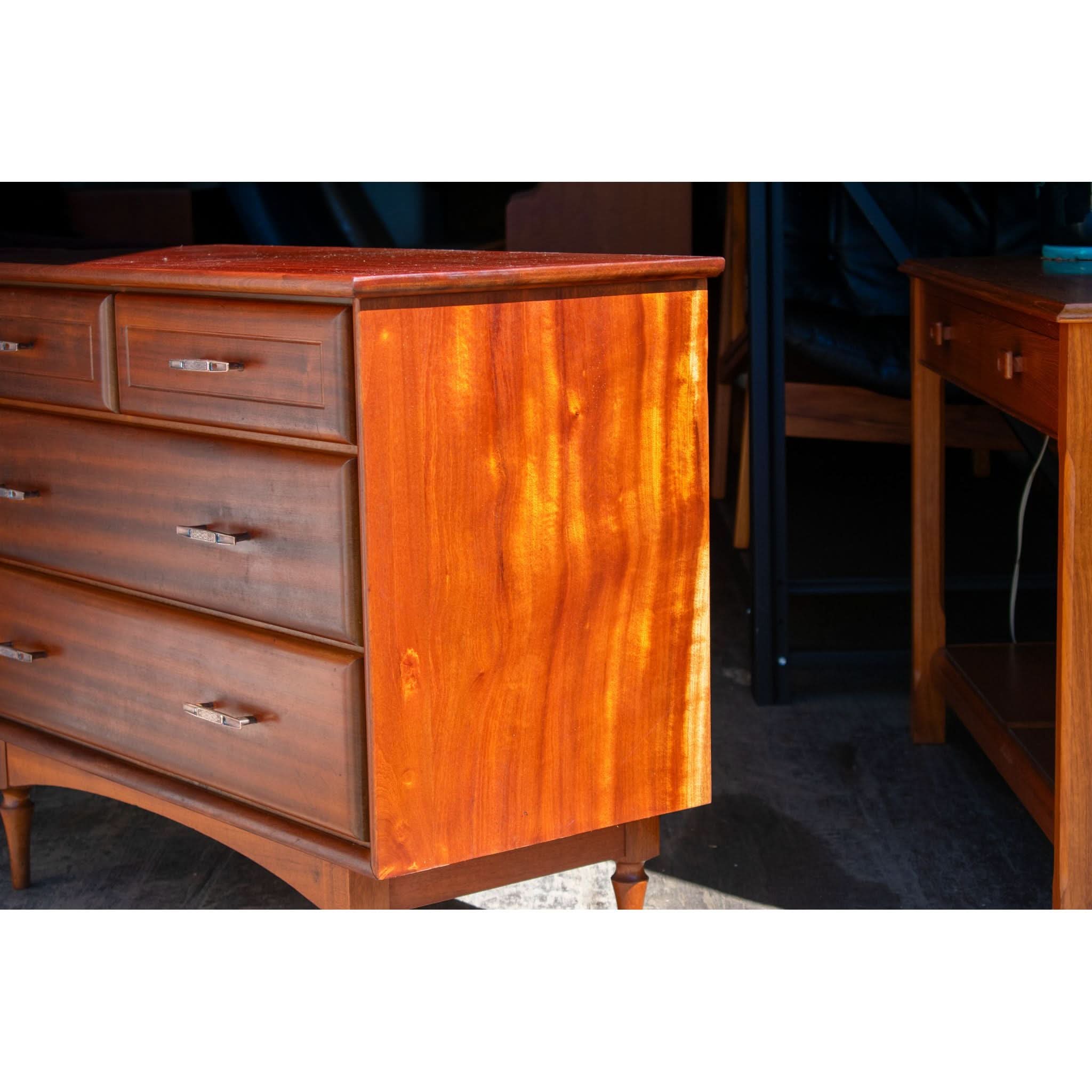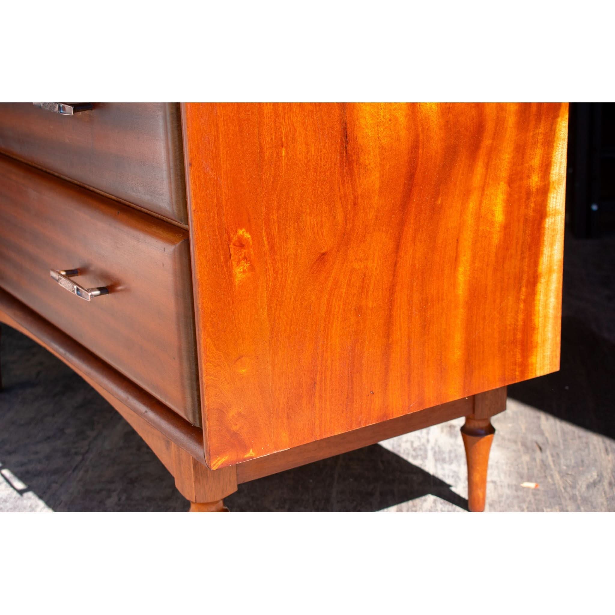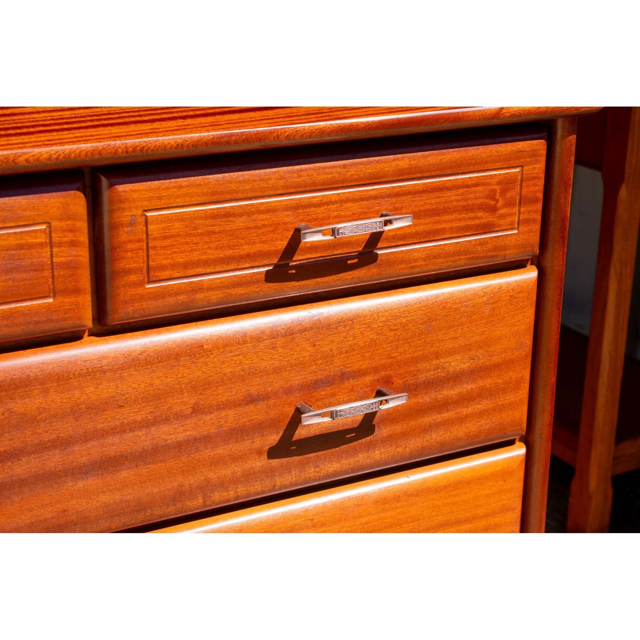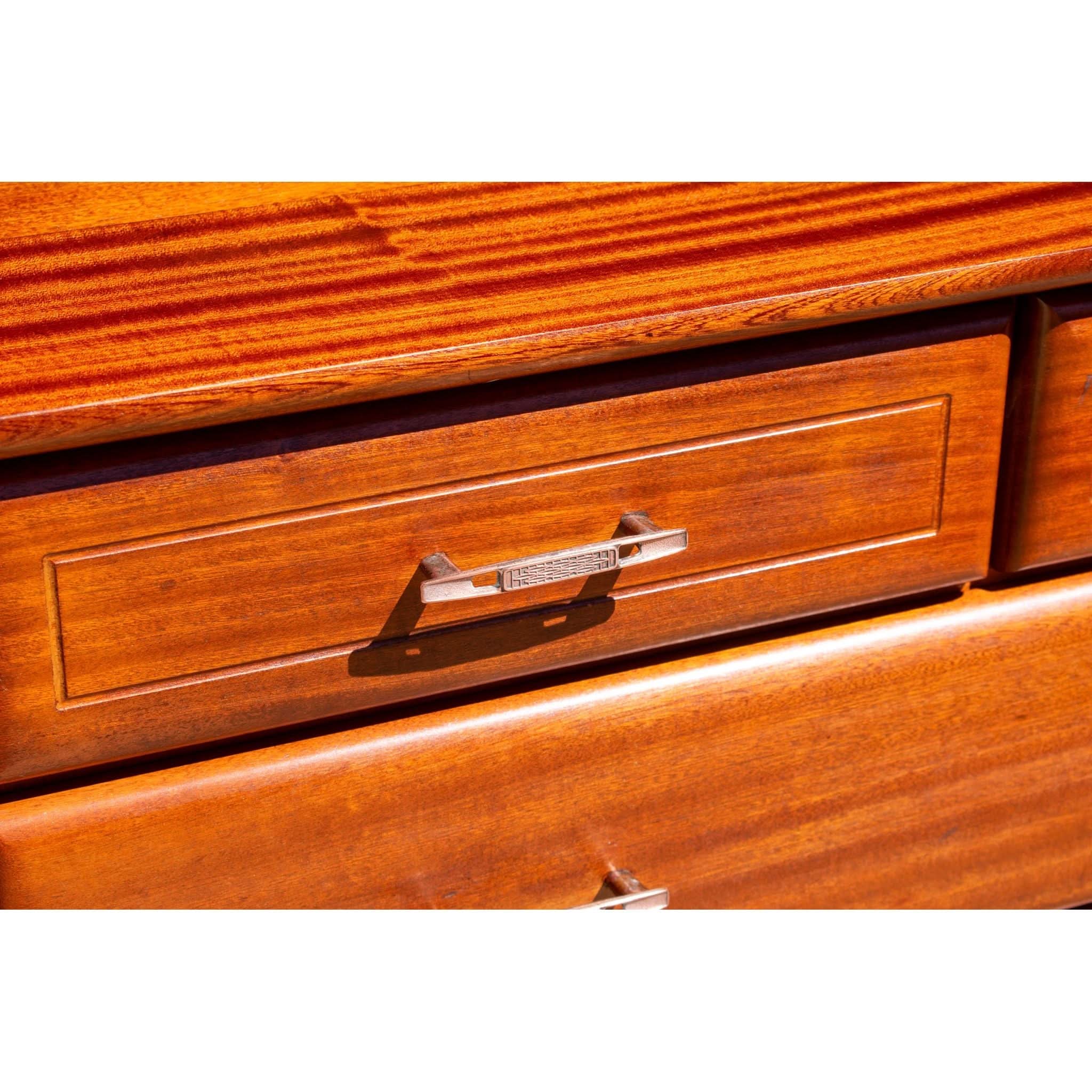 Condition:The top and side panels have been carefully stripped, sanded, and refinished using our in-house durable finish, designed to enhance the timber’s natural grain while offering long-lasting protection. All drawers have been thoroughly cleaned and oiled. The original bronze handles, labelled by Lincoln Turner of New Zealand, have been gently cleaned to preserve their vintage patina. Overall, the piece presents in great condition, with minor surface marks consistent with age and use.