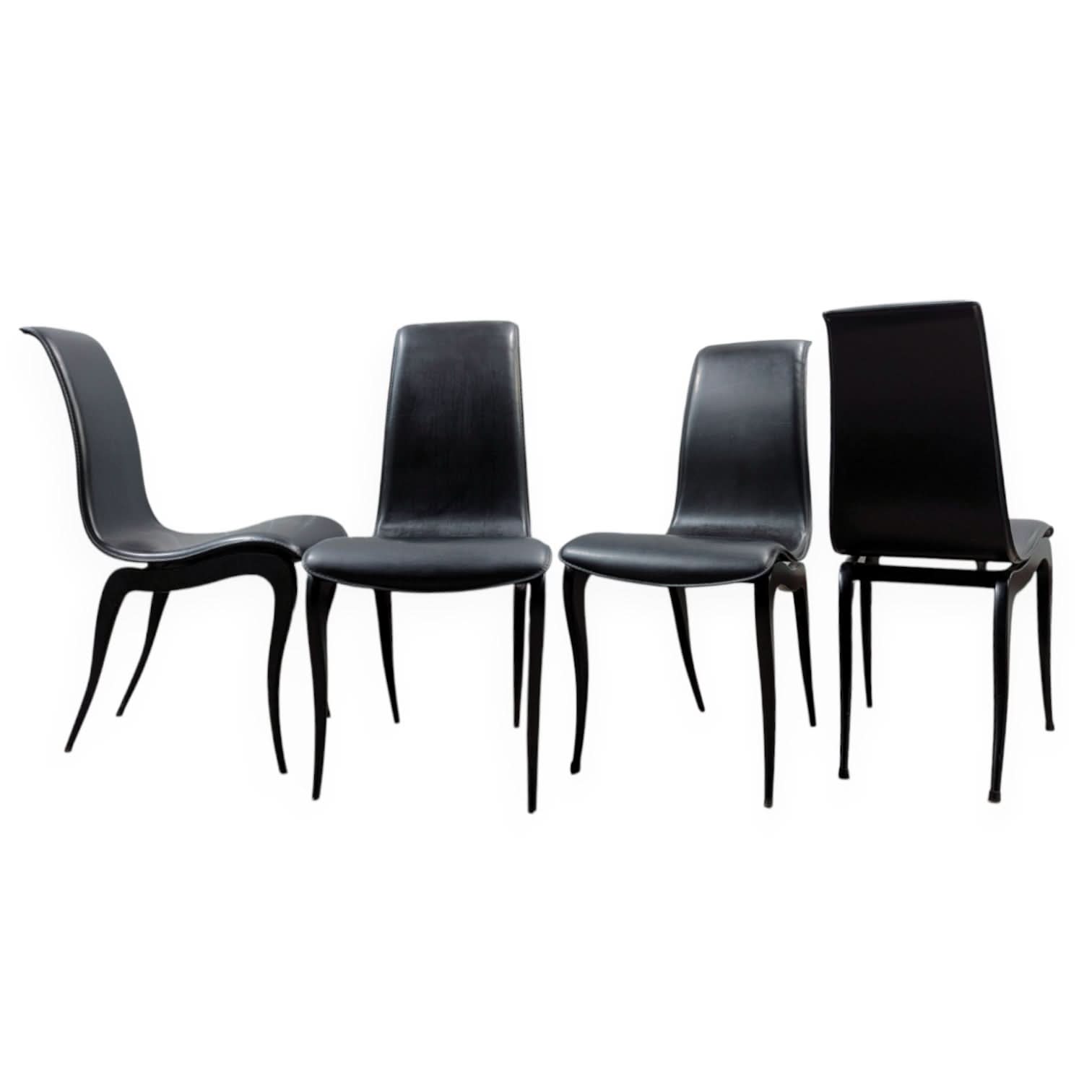 Built to stand alone, these vintage Italian chairs offer the kind of presence that reshapes a room’s intent. With curved high backs, high-gloss lacquered timber, and thick full-grain leather, they feel more tailored than upholstered — all clarity and conviction.