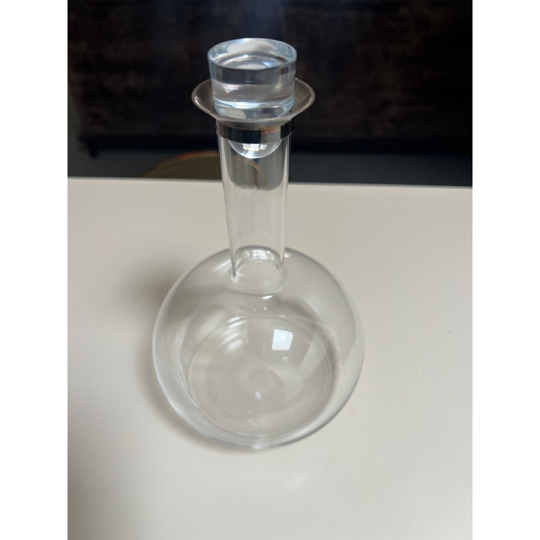 • Features: Features a sleek bottle-vase profile with a polished silver collar and a matching glass stopper.