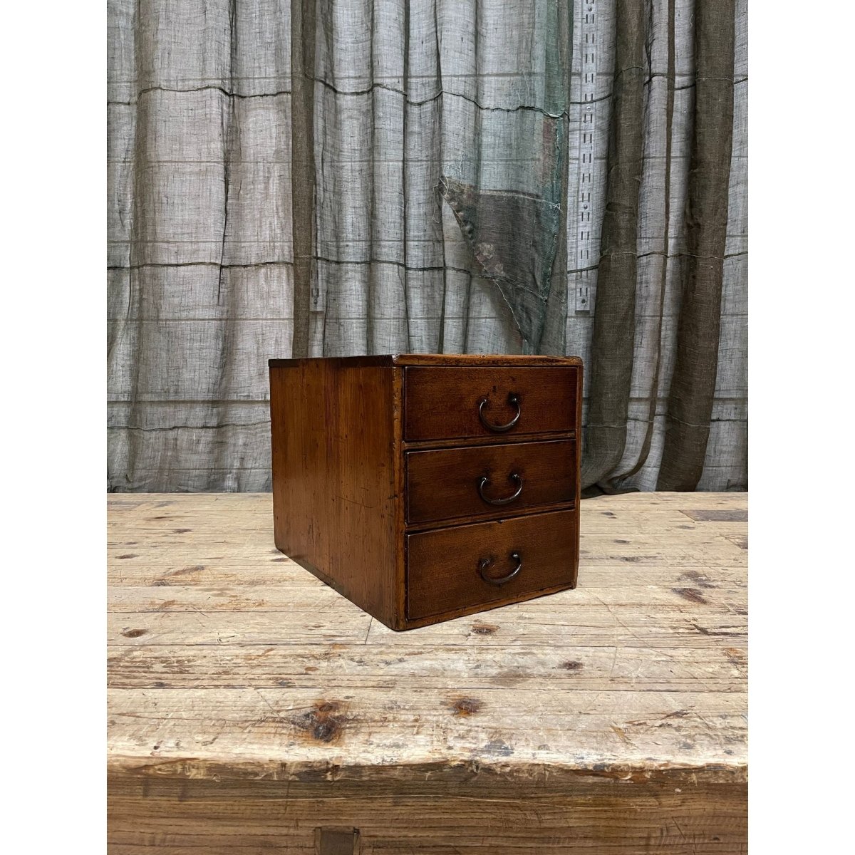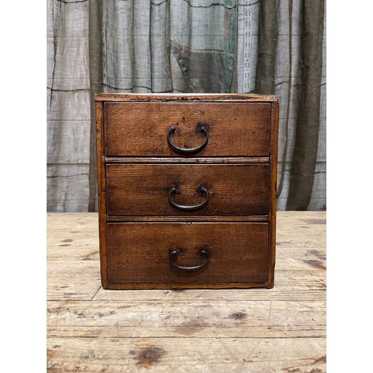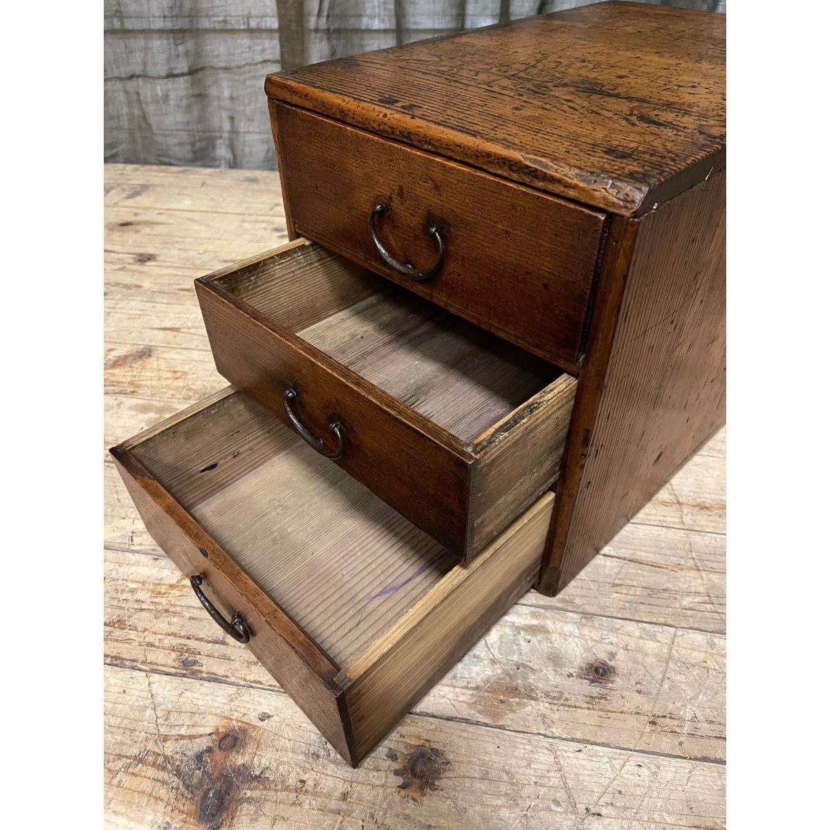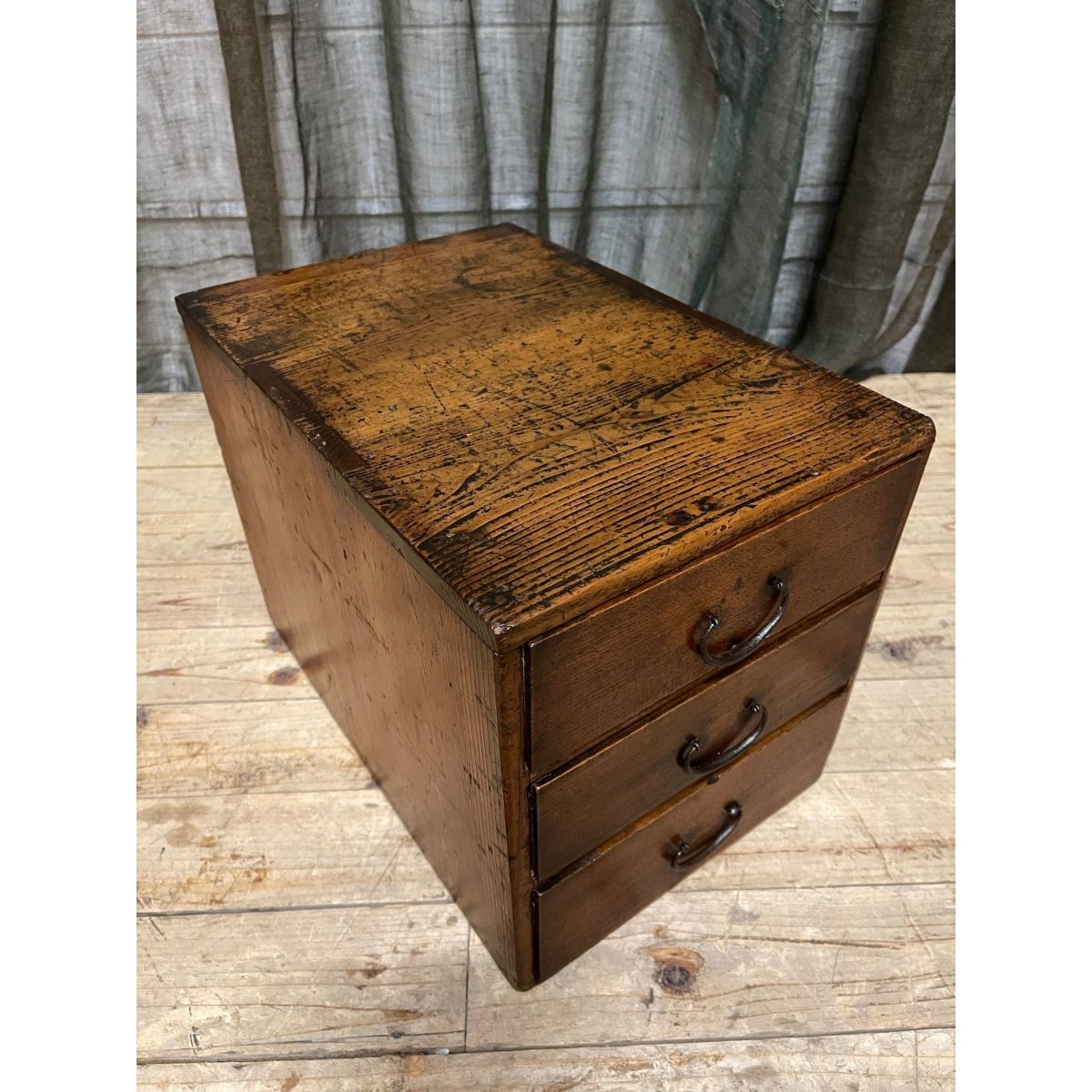 A Japanese three -drawer document box , made from hinoki (cypress) and keyaki (elm) woods.