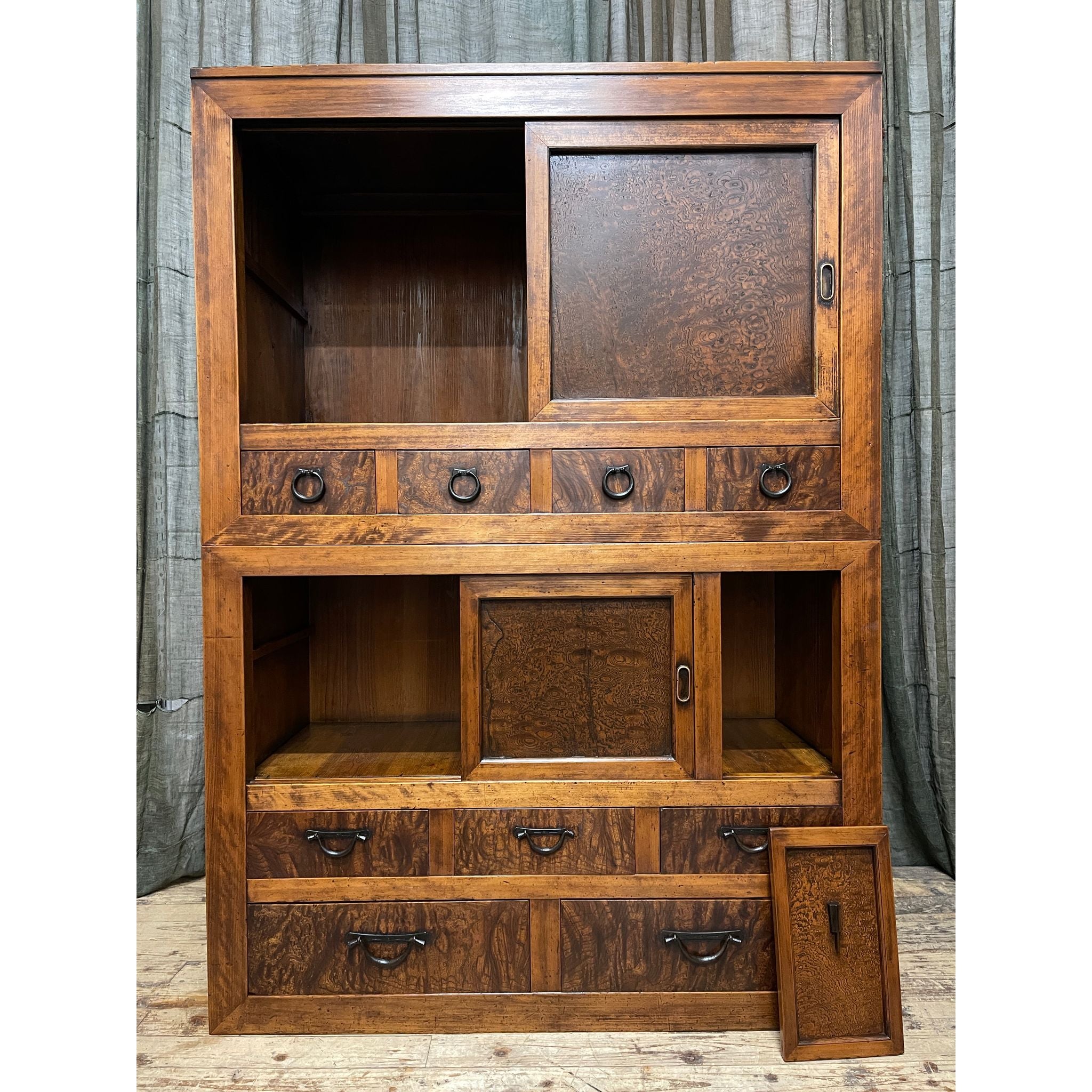 An antique Japanese Mizuya, kitchen cabinet in two sections.